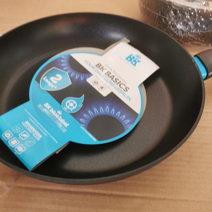 Productbeschrijving: De pannen uit de BK Blue Label Basics serie zijn een perfecte basis voor de startende kok. De pannen zijn voorzien van een goede anti-aanbaklaag (vrij van PFOA) waar niets in blijft kleven. Door deze anti-aanbaklaag kunt je vetarm bakken. De stevige koudgreep wordt minder snel warm en ligt prettig in de hand. Hierdoor heb je een goede en veilige grip tijdens het bakken. De pannen zijn gemaakt van aluminium. Aluminium zorgt ervoor dat de warmte snel wordt verdeeld door de pan, hierdoor bespaar je energie tijdens het bakken. De pannen zijn geschikt voor alle warmtebronnen exclusief inductie, in de oven tot 160 graden. Na gebruik kunnen de pannen eenvoudig worden gereinigd in de vaatwasmachine.