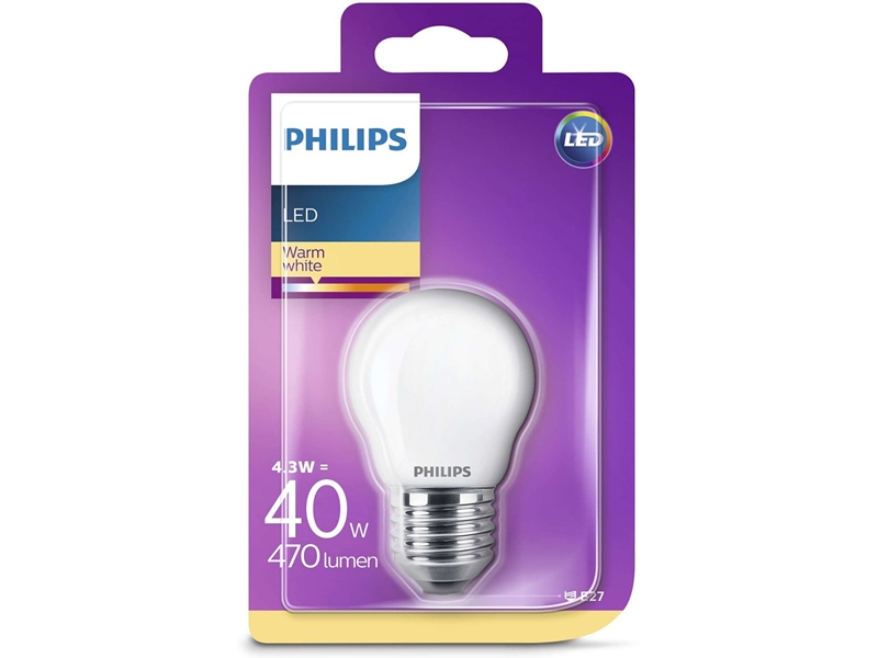 Over de 12 Philips ledlampen 4.3W (40W) E27 Warm White non-dimmable Luster Energy-saving lamp