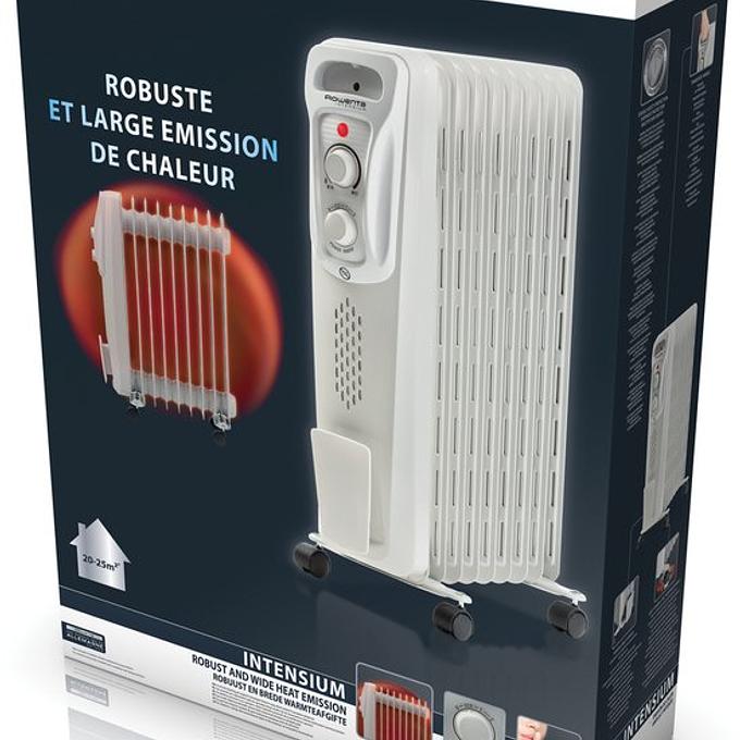 Productbeschrijving: 2000w grijze oliegevulde radiator - rowenta - bu2620f0 - Robuust en brede warmteafgifte. Met de Rowenta BU2620F0 INTENSIUM oliebadradiator geniet je van een brede en comfortabele warmteafgifte voor ruimtes met een maximale oppervlakte van 25m2. Het regelbare vermogen tot 2000 W bereikt geleidelijk in stilte de gewenste temperatuur. Het heeft ook drie standen met variabele thermostaat. De dubbele veiligheidsbescherming is synoniem voor gemoedsrust.Grote warmteafgifte. Zijn 9 lamellen garanderen een brede warmteafgifte naar ruimtes met een maximale oppervlakte van 25m2, waarbij convectie en halogeen worden gecombineerd voor een aangename en aangename warmte. Stil. Stil, het verwarmt uw kamer zonder u te storen. Vermogen tot 2000 W. Drie instelbare vermogensinstellingen, waaronder een Eco-modus om energie te besparen. Variabele thermostaat. Instelbare thermostaat volgens uw behoeften. Dubbele veiligheidsbescherming Beschermt tegen kantelen en oververhitting voor extra veiligheid en volledige vrijheid van geest Gemakkelijk te vervoeren Intensium is gemakkelijk van kamer naar kamer te verplaatsen dankzij de handige geïntegreerde handgreep en 360 ° roterende wielen. Comfortabel gebruik. Geïntegreerd opbergvak voor snoeren voor het gemak. Overdekte ruimte. Deze radiator kan ruimtes tot 25 m2 verwarmen. - Type verwarming: oliebad.