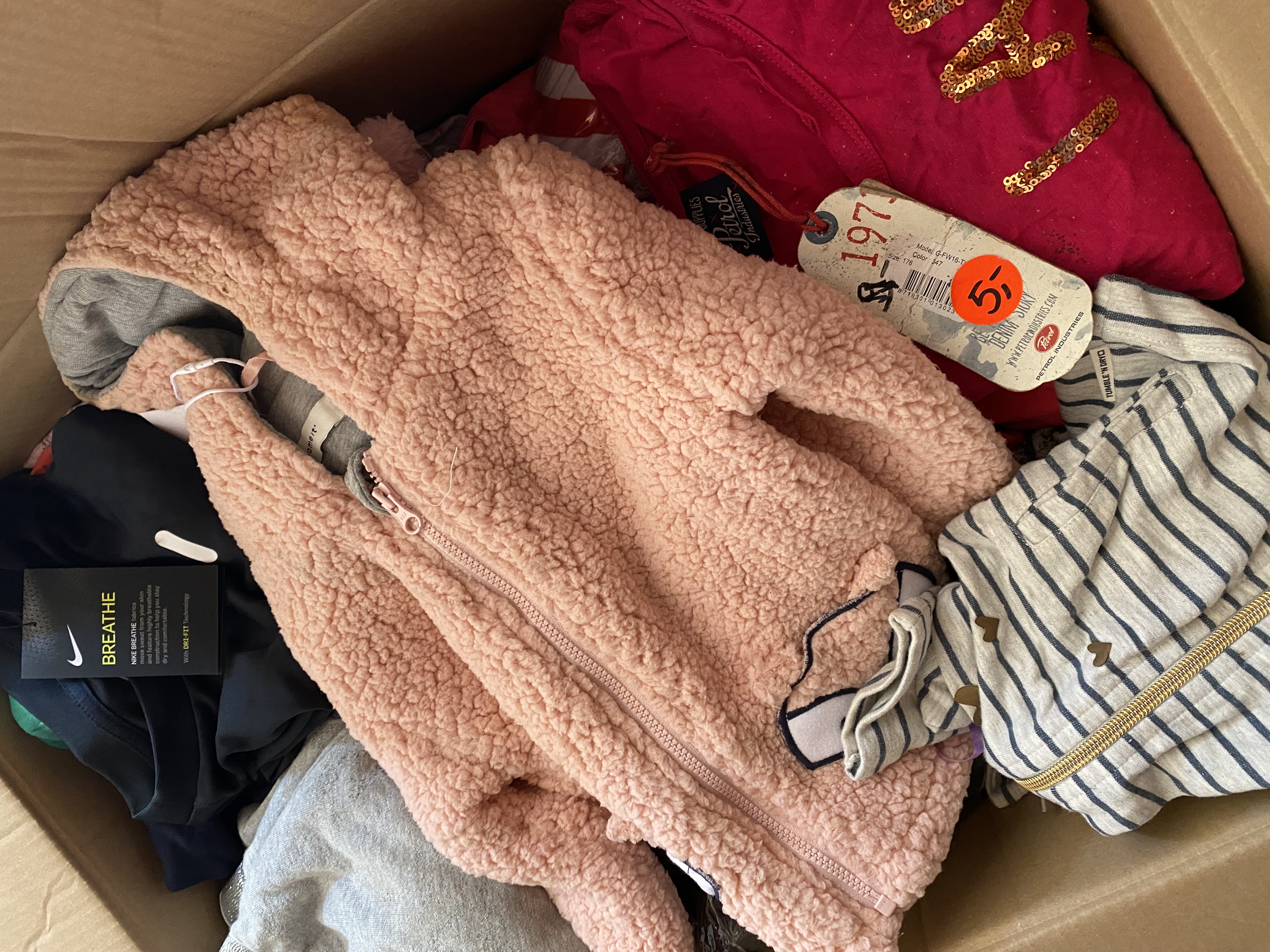 1x Container met ca. 250 stuks kinderkleding, zowel jongens- als meisjeskleding van maat 56 t/m 176, inclusief UGGS blauw maat 42, inclusief wandelschoenen rood/bruin maat 36