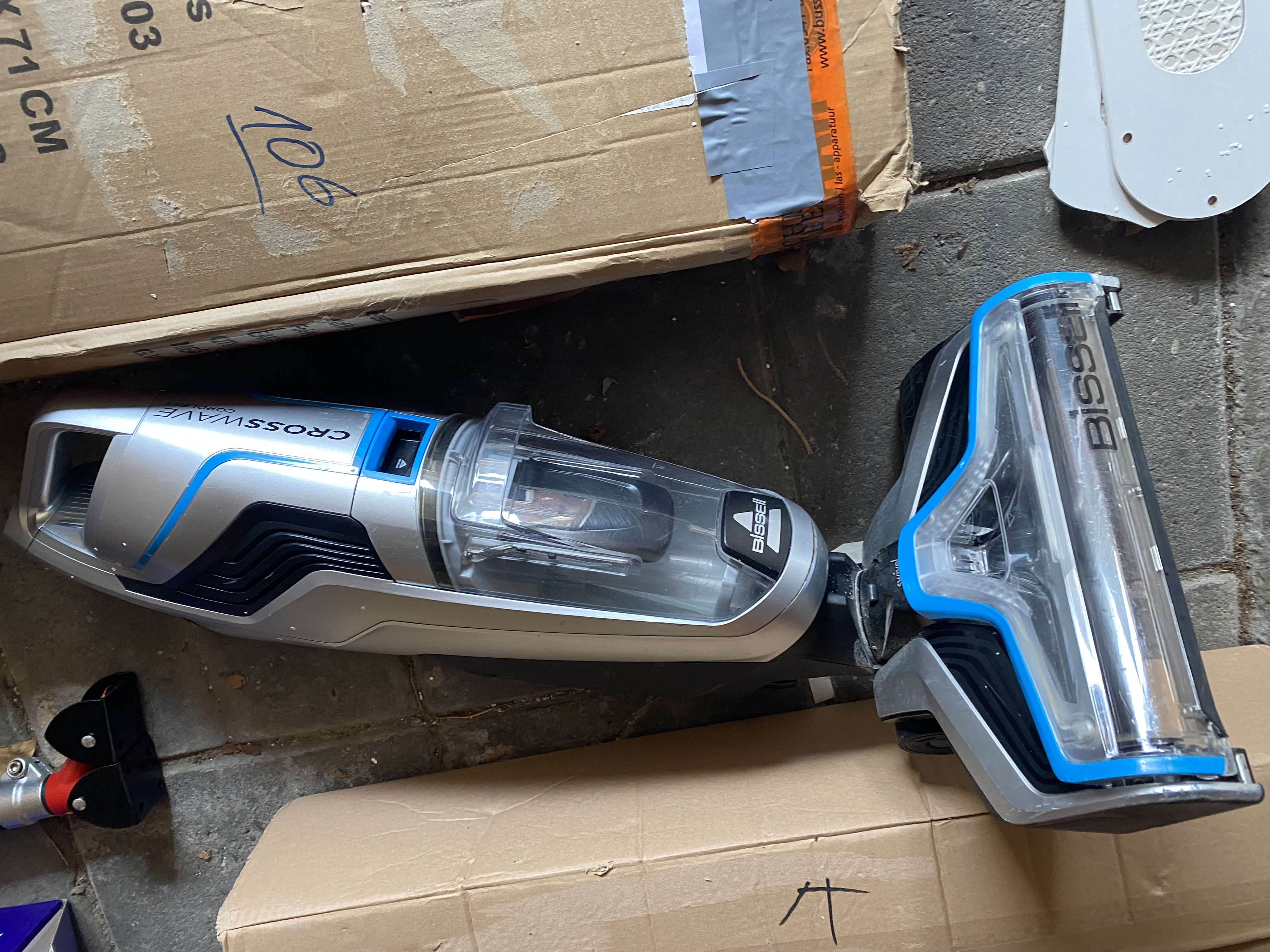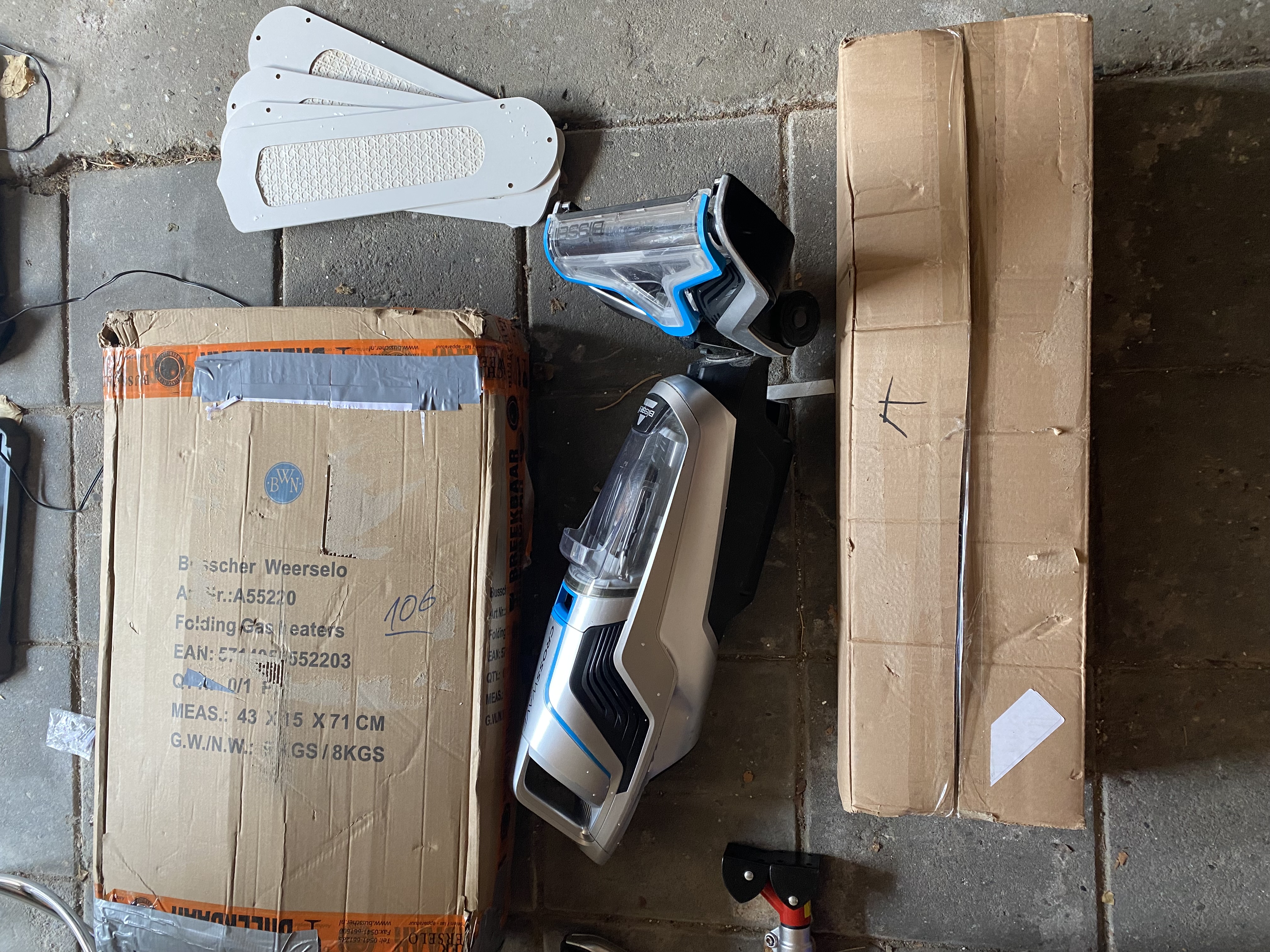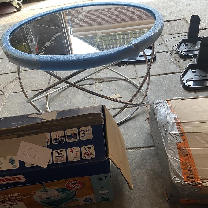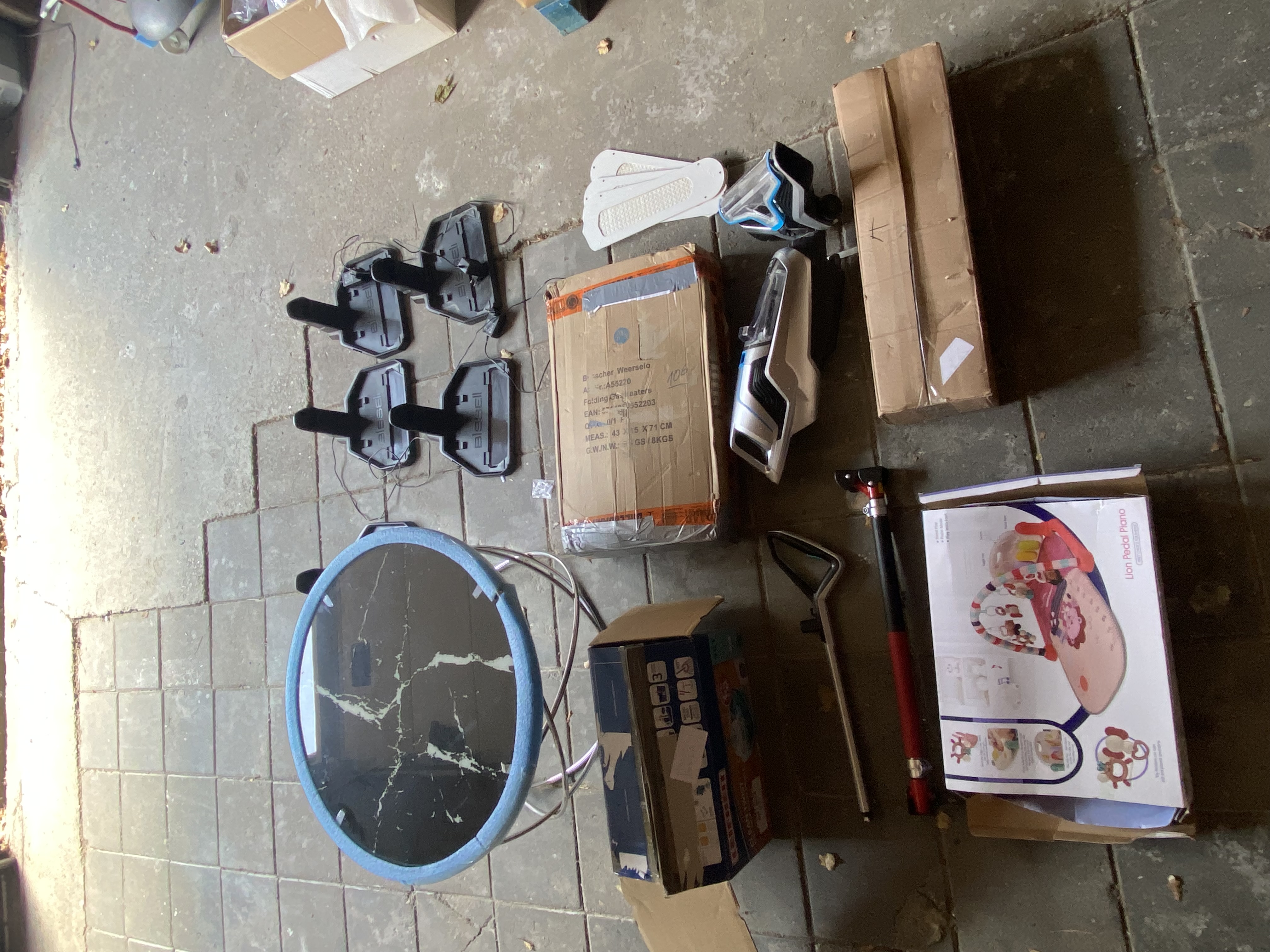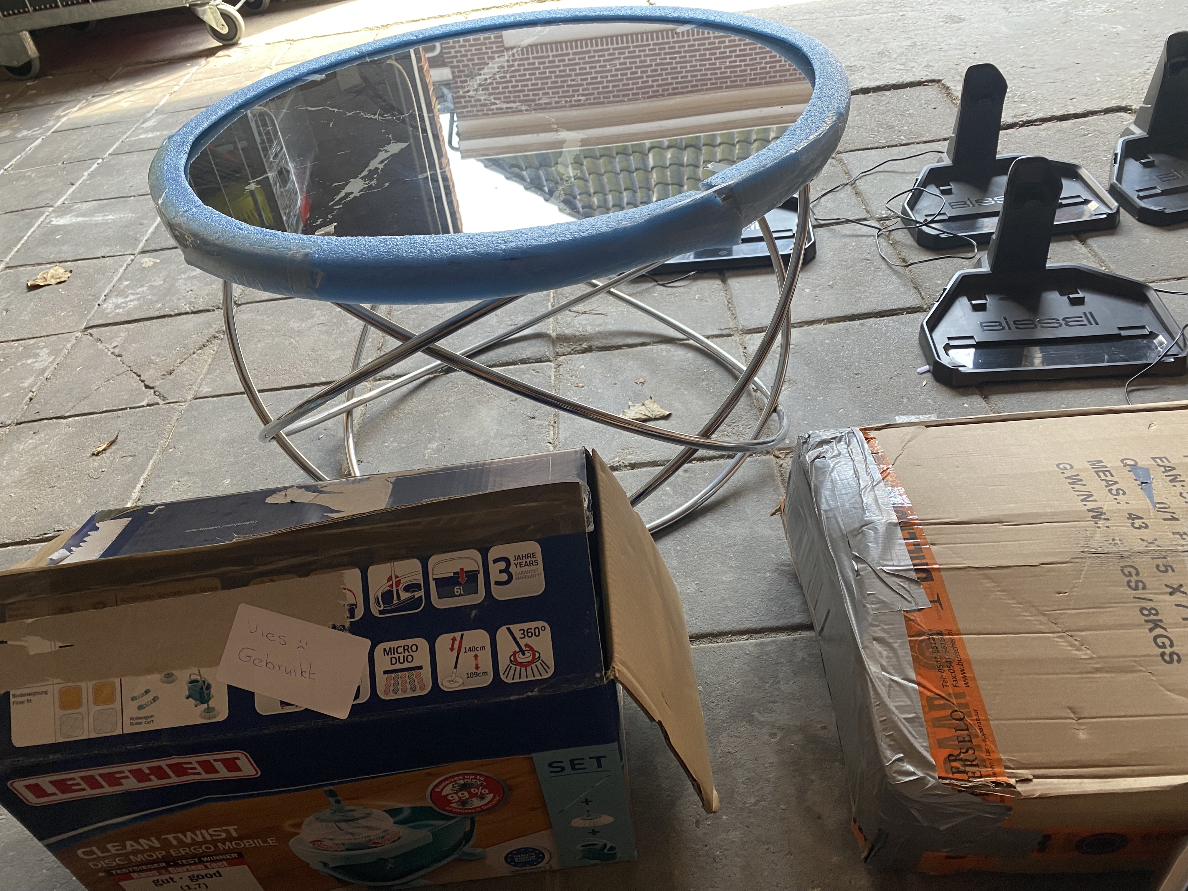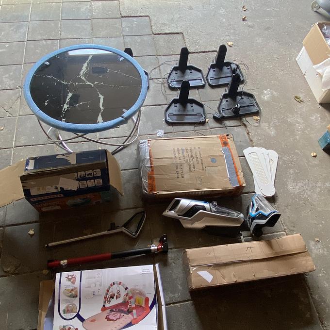 1x Pallet met ca. 30 restartikelen, o.a. bijzettafel, stofzuigers, meubilair, schoonmaakitems en matras