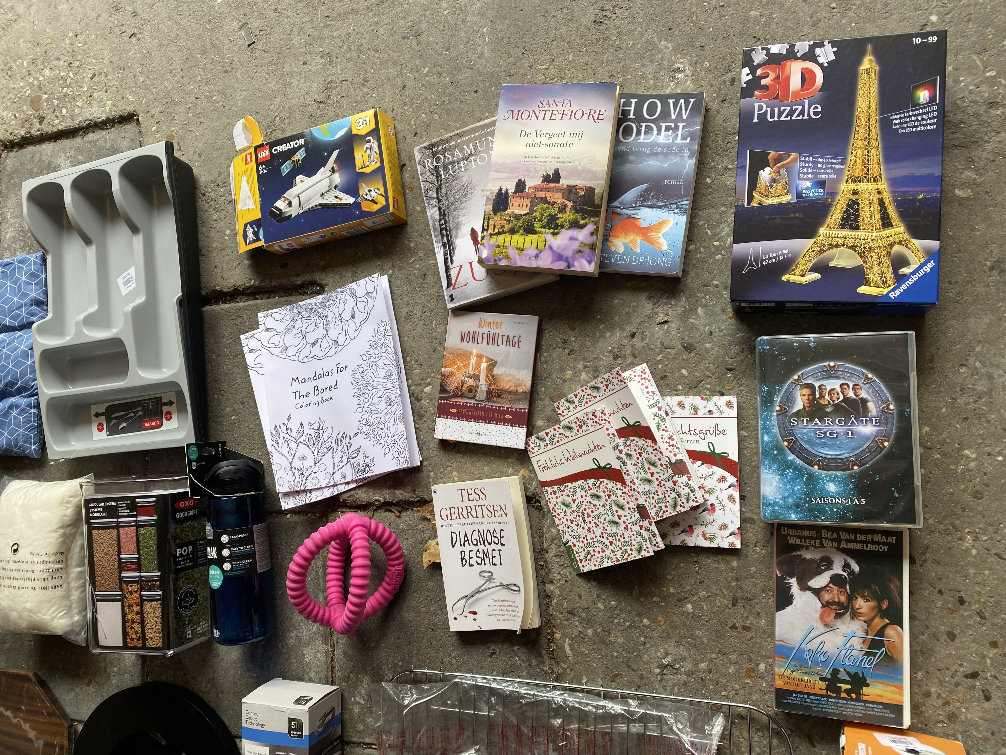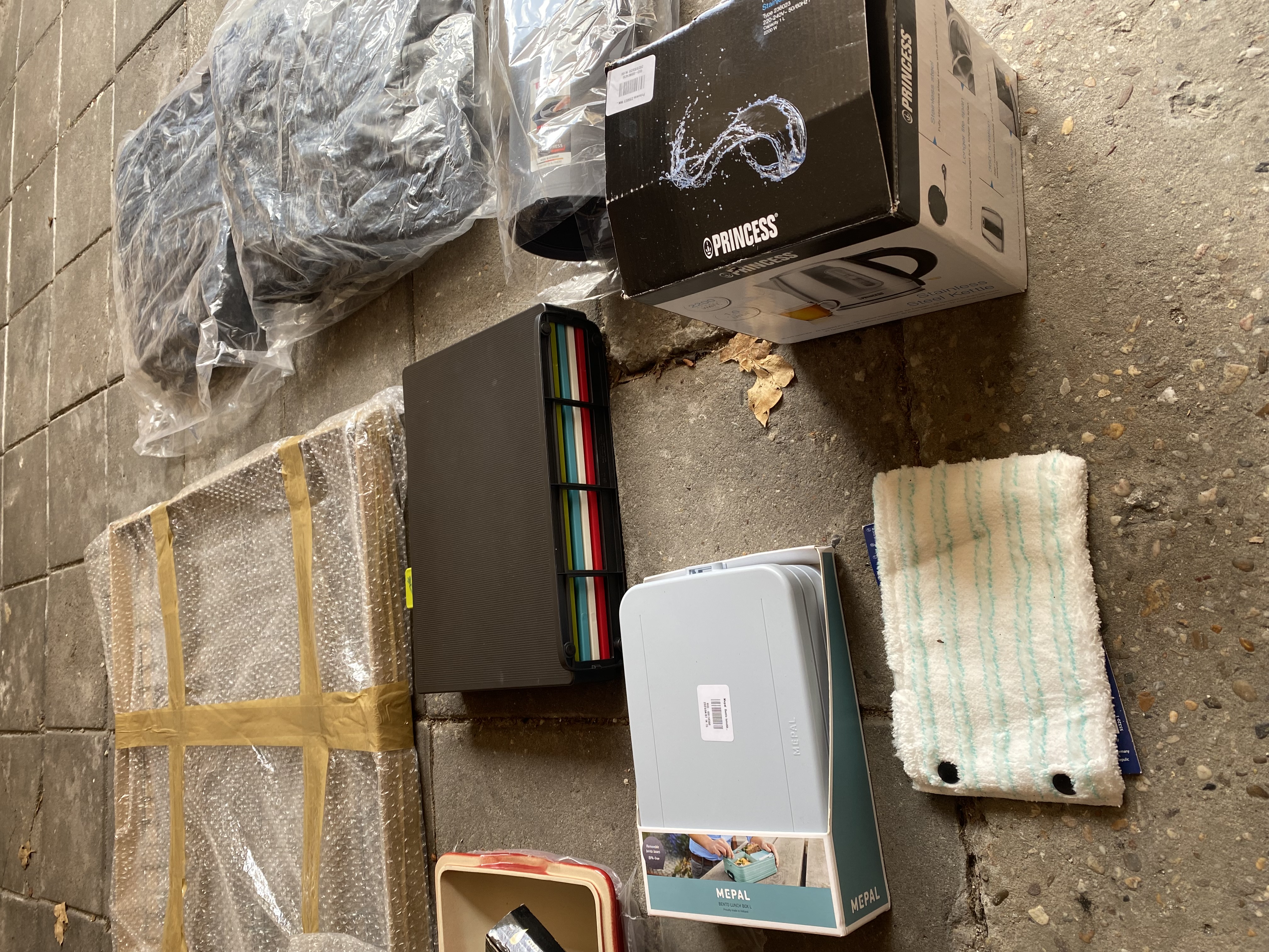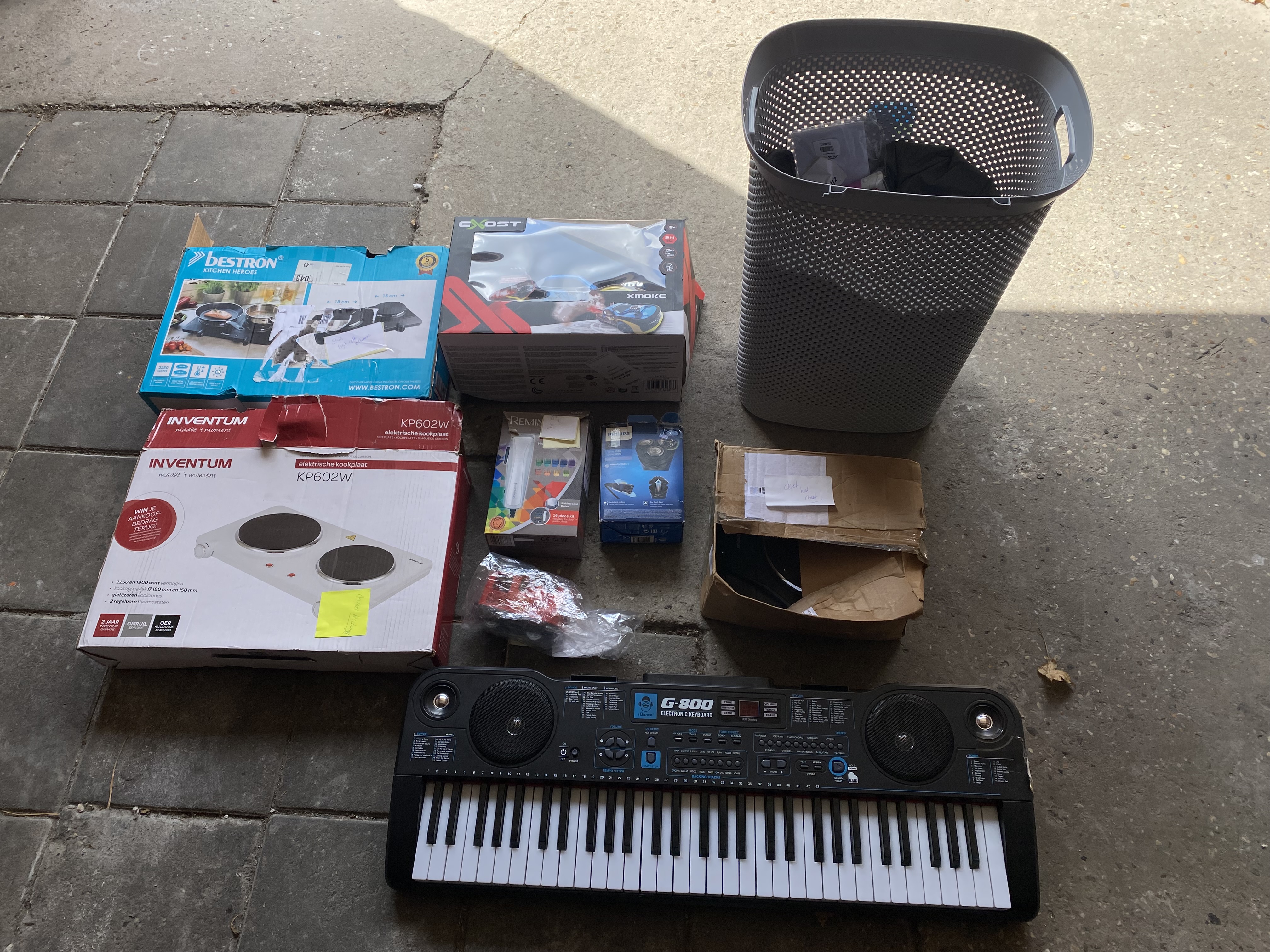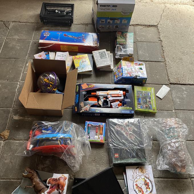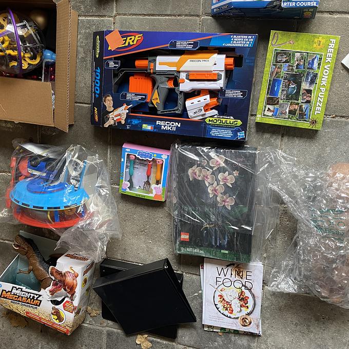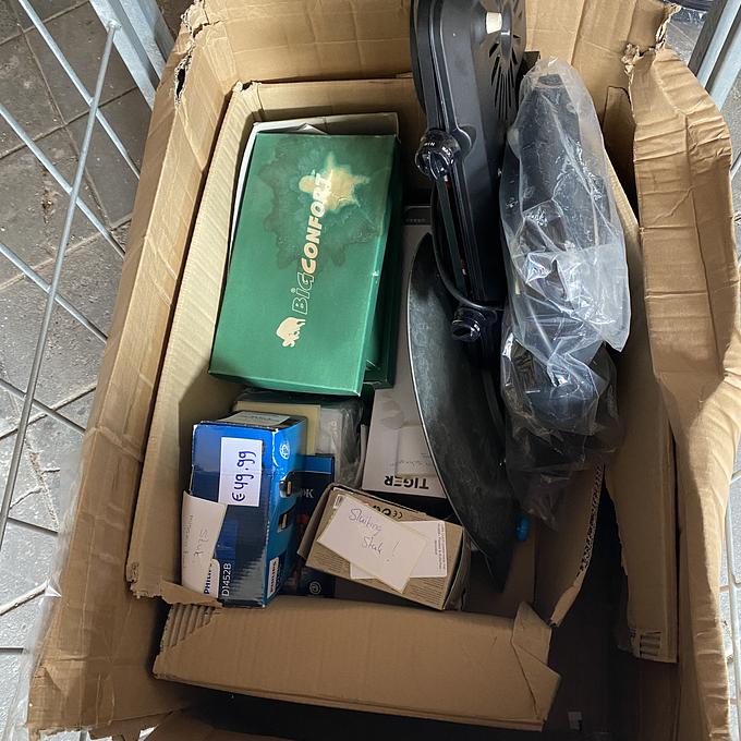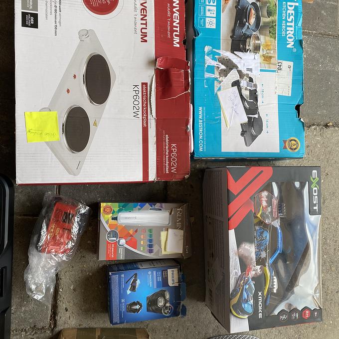 1 Pallet met ca. 1000 restartikelen, o.a. Lego en ander speelgoed, telefoonhoesjes, keukenitems- en apparatuur, Leifheit, huishoudelijke items, boeken + 1 Rolcontainer met ca. 50 huishoudelijke artikelen (rolcontainer niet inbegrepen), o.a. Leifheit, Philips, Inventum, wasmanden, koffer, elektrische kookstellen. Deze partij bevat onder andere retourgoederen en dus ook goederen die gebruikssporen kunnen bevatten, incompleet kunnen zijn of mogelijk defect zijn. De partij dient afgehaald te worden in Dokkum op de afgiftedag.