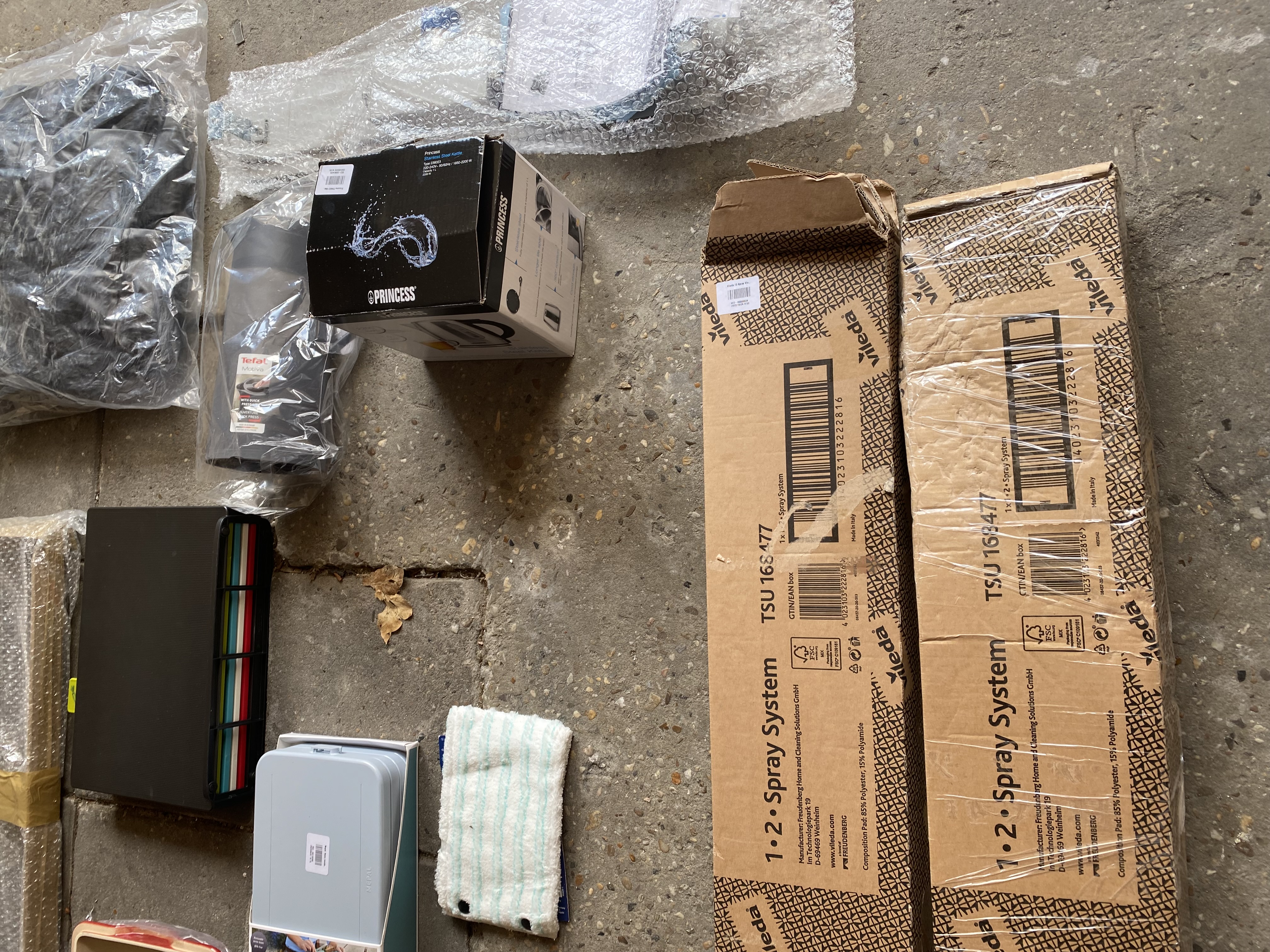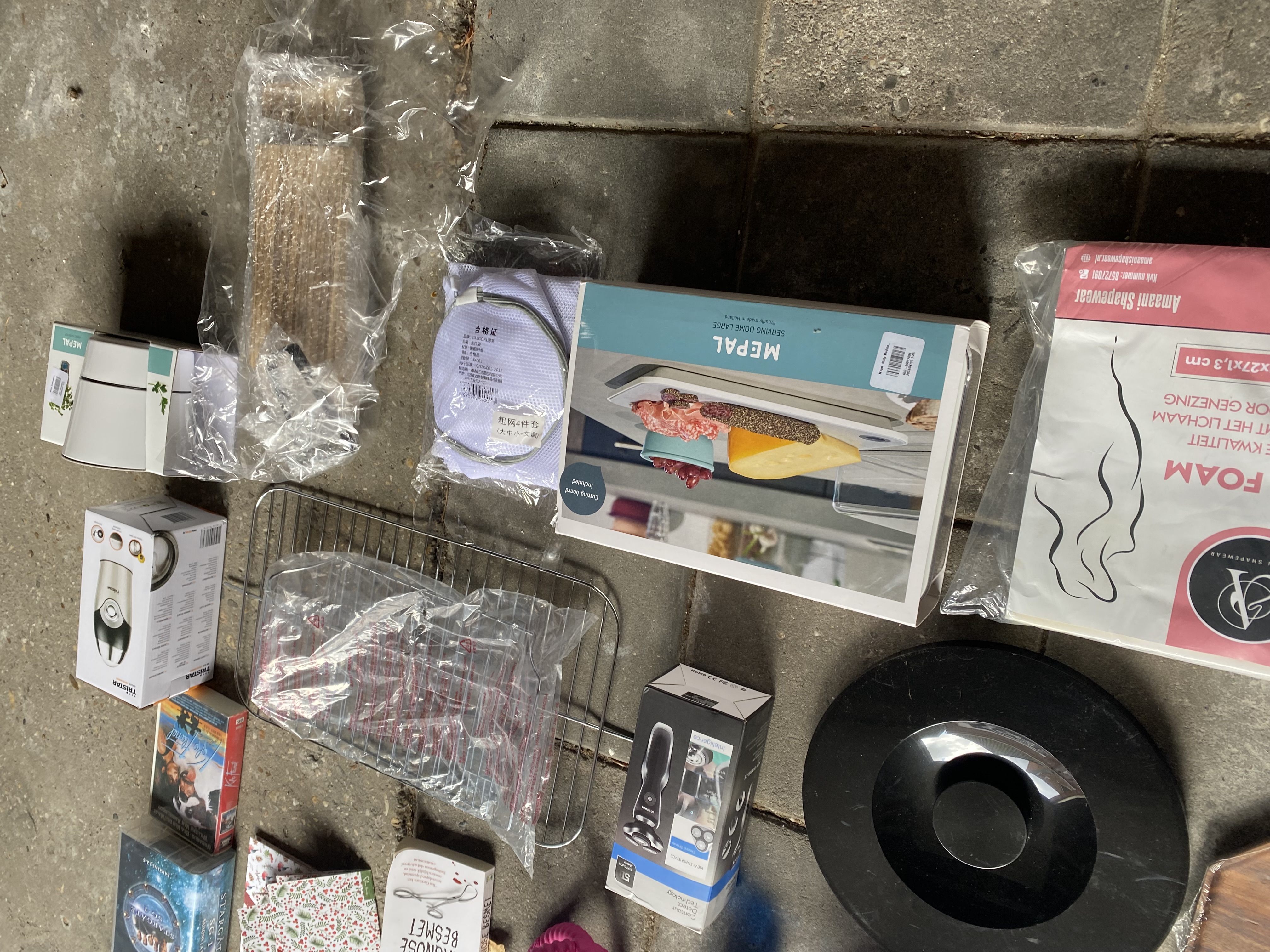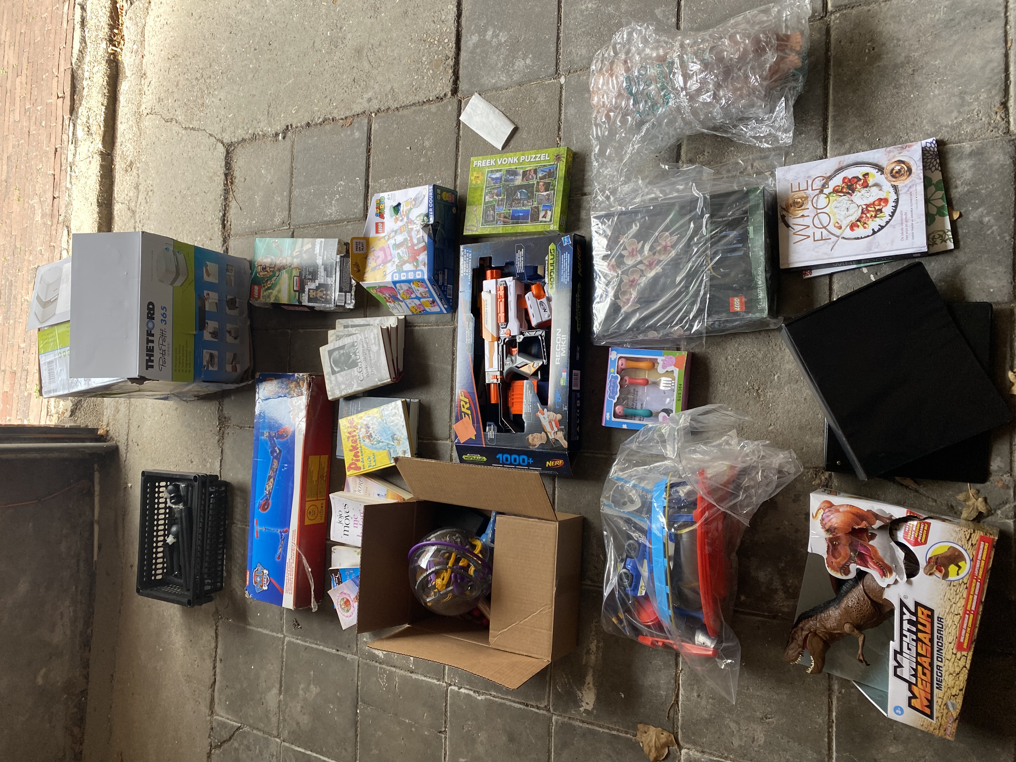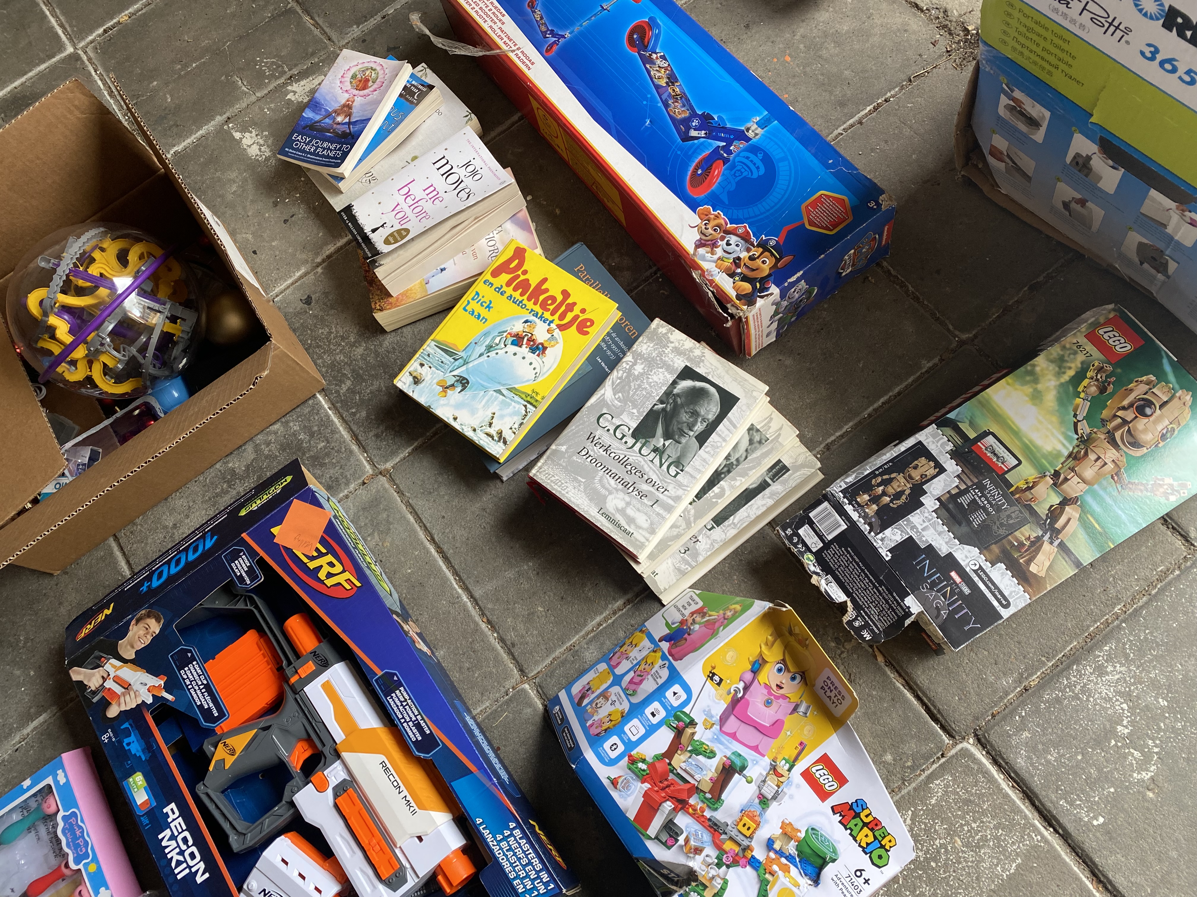 1 Pallet met ca. 1000 restartikelen, o.a. Lego en ander speelgoed, telefoonhoesjes, keukenitems- en apparatuur, Leifheit, huishoudelijke items, boeken + 1 Rolcontainer met ca. 50 huishoudelijke artikelen (rolcontainer niet inbegrepen), o.a. Leifheit, Philips, Inventum, wasmanden, koffer, elektrische kookstellen. Deze partij bevat onder andere retourgoederen en dus ook goederen die gebruikssporen kunnen bevatten, incompleet kunnen zijn of mogelijk defect zijn. De partij dient afgehaald te worden in Dokkum op de afgiftedag.
