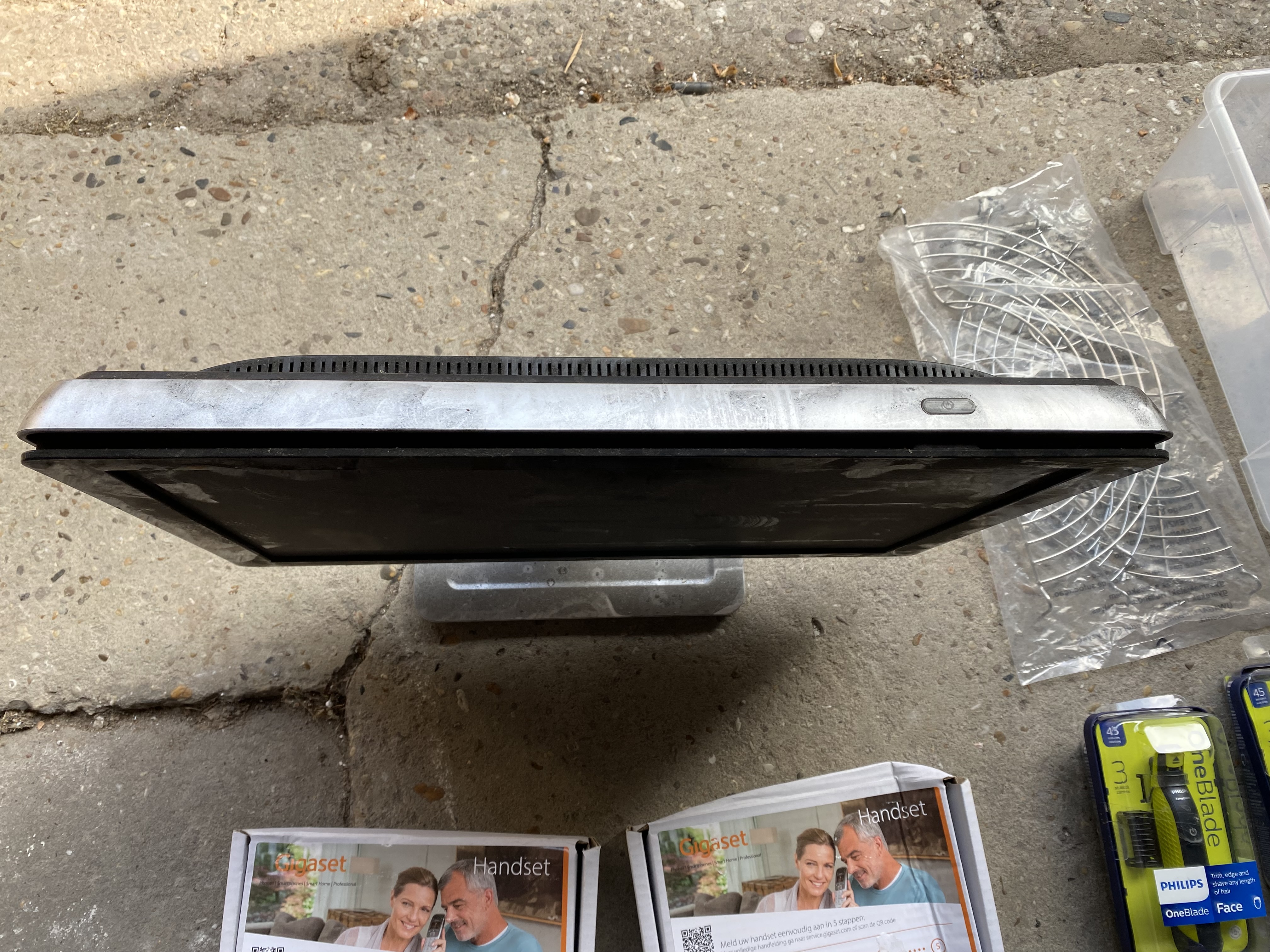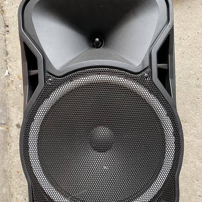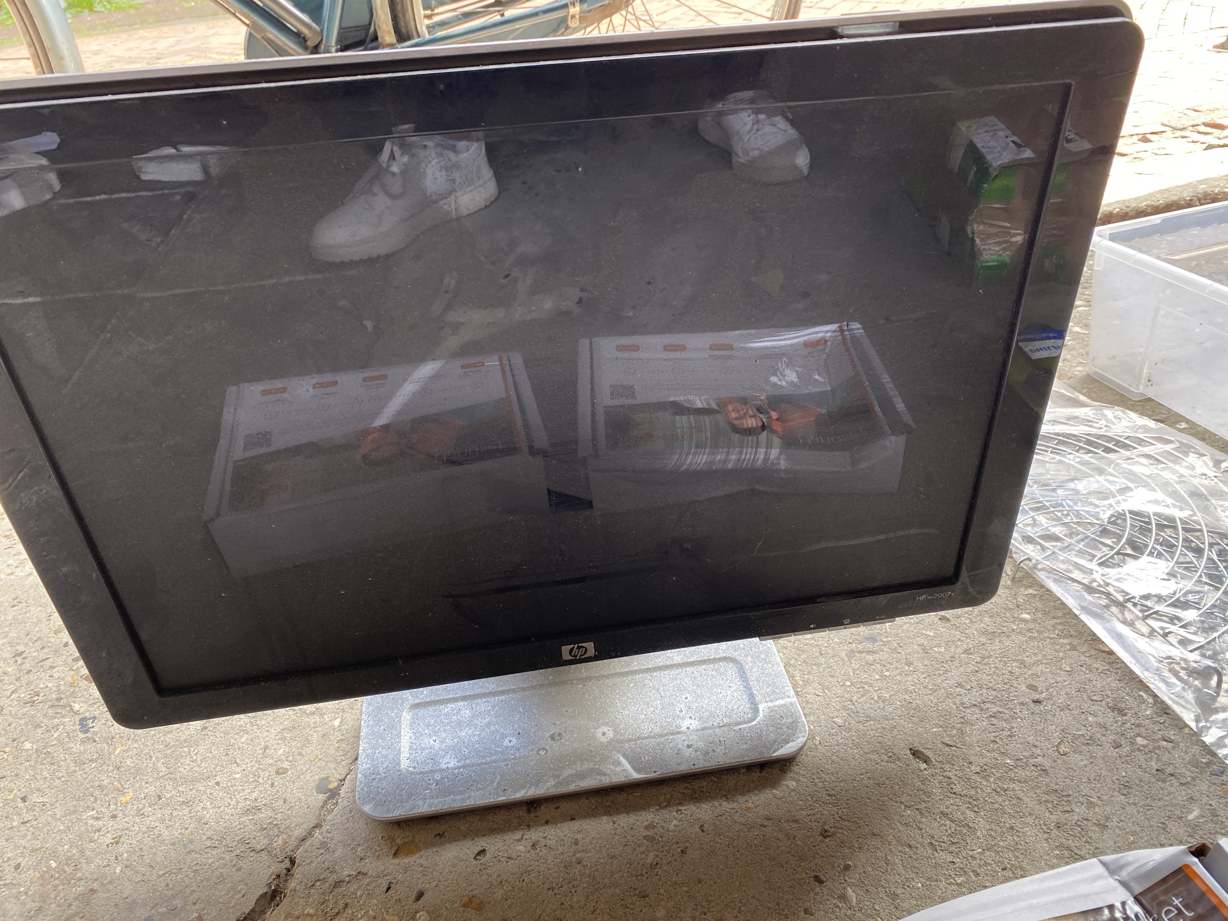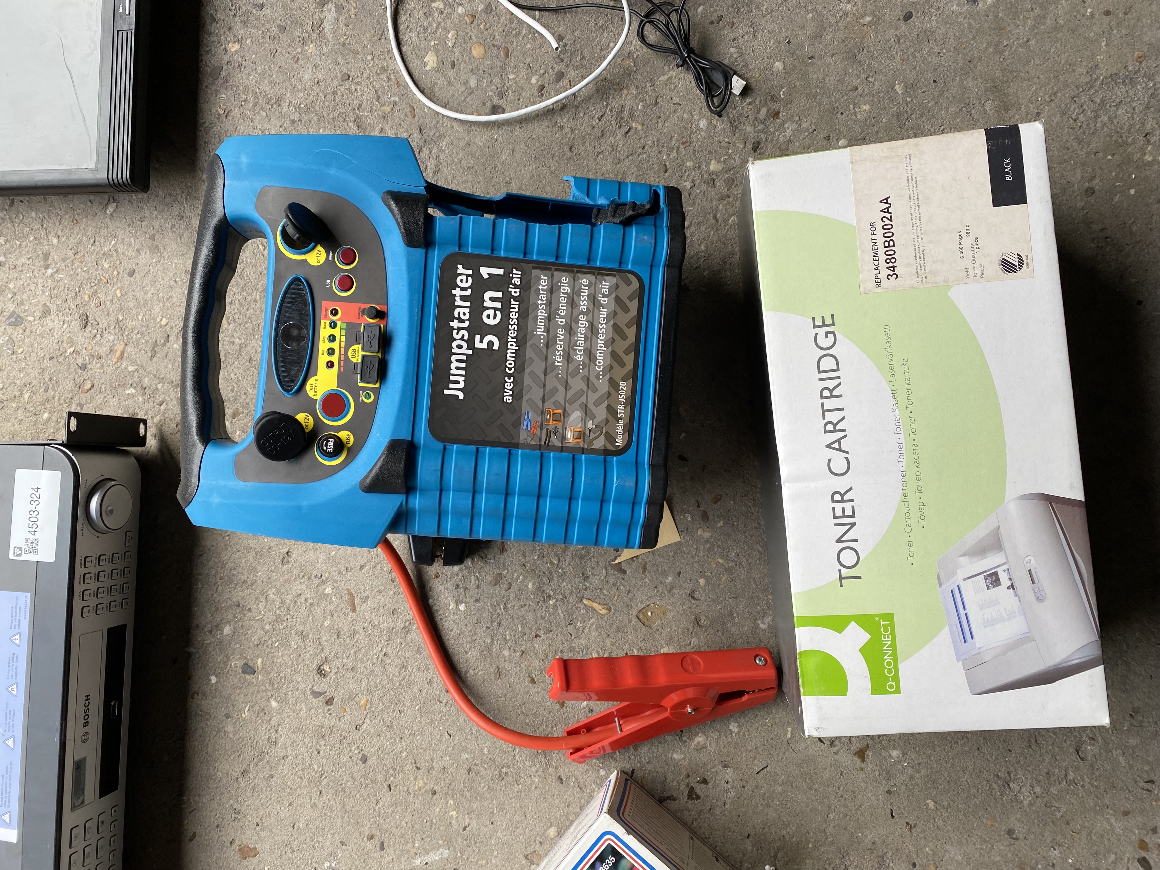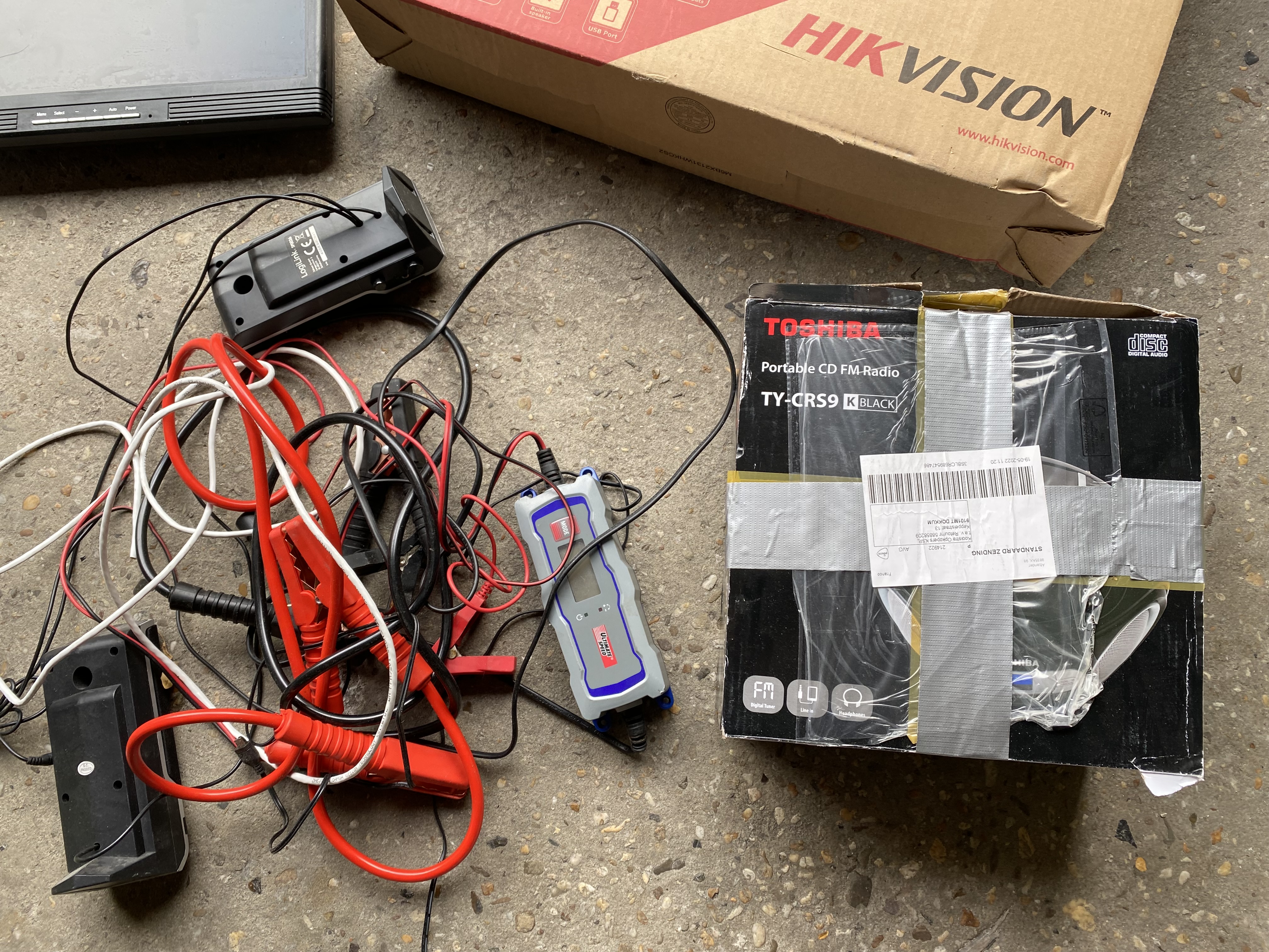 1 Rolcontainer met o.a. monitoren, stofzuiger, N-Gear speakers, zie foto's voor details