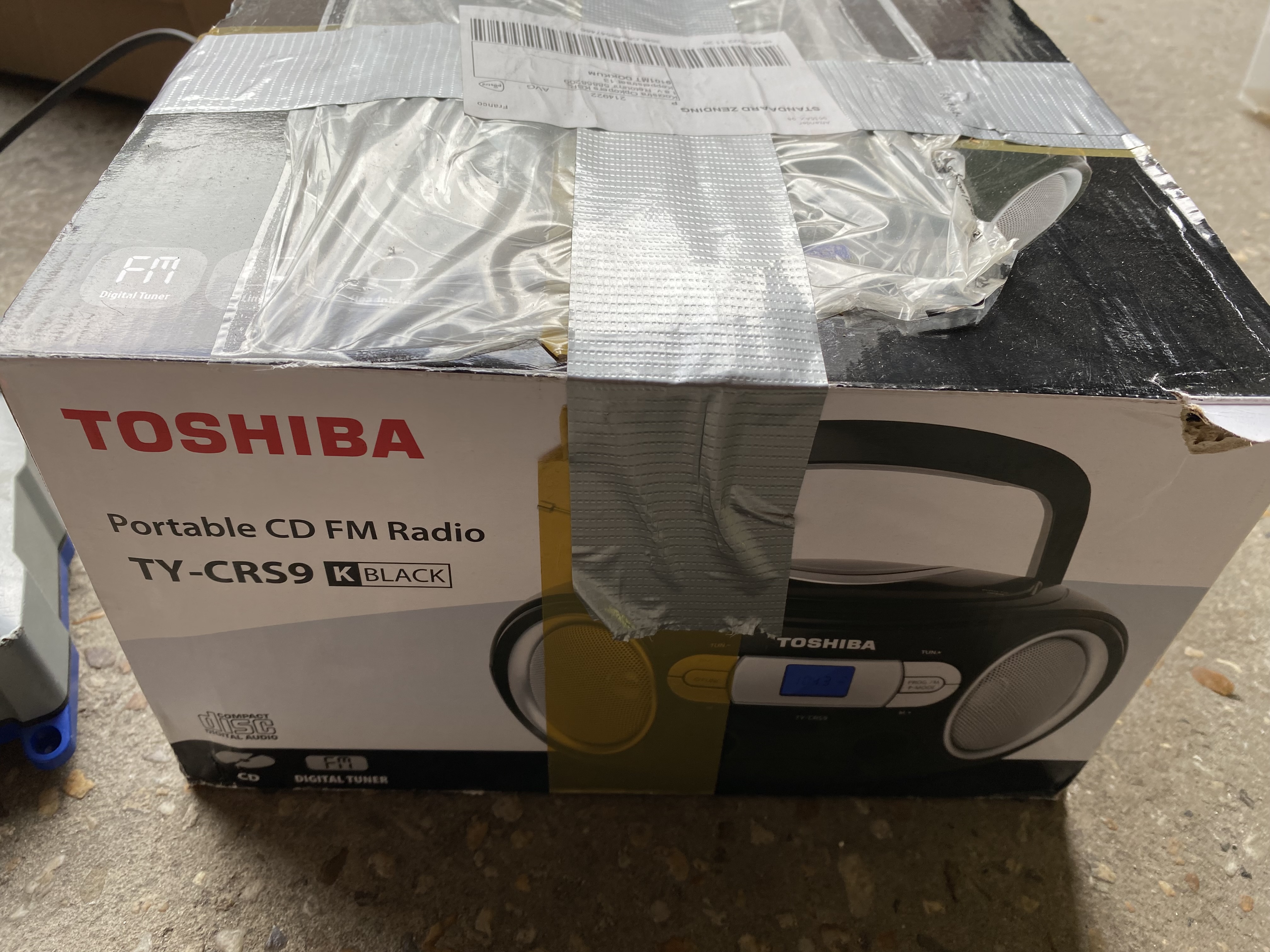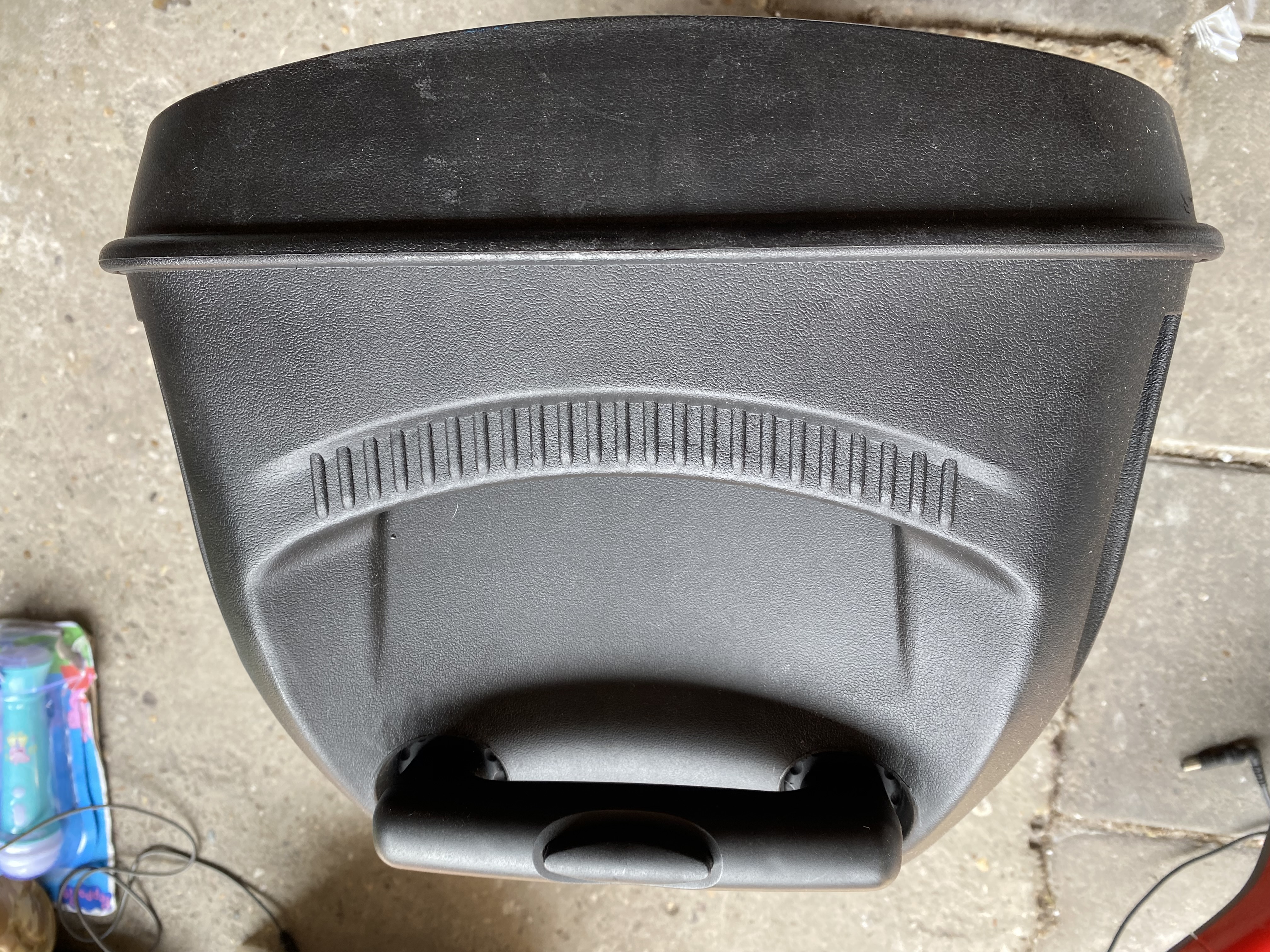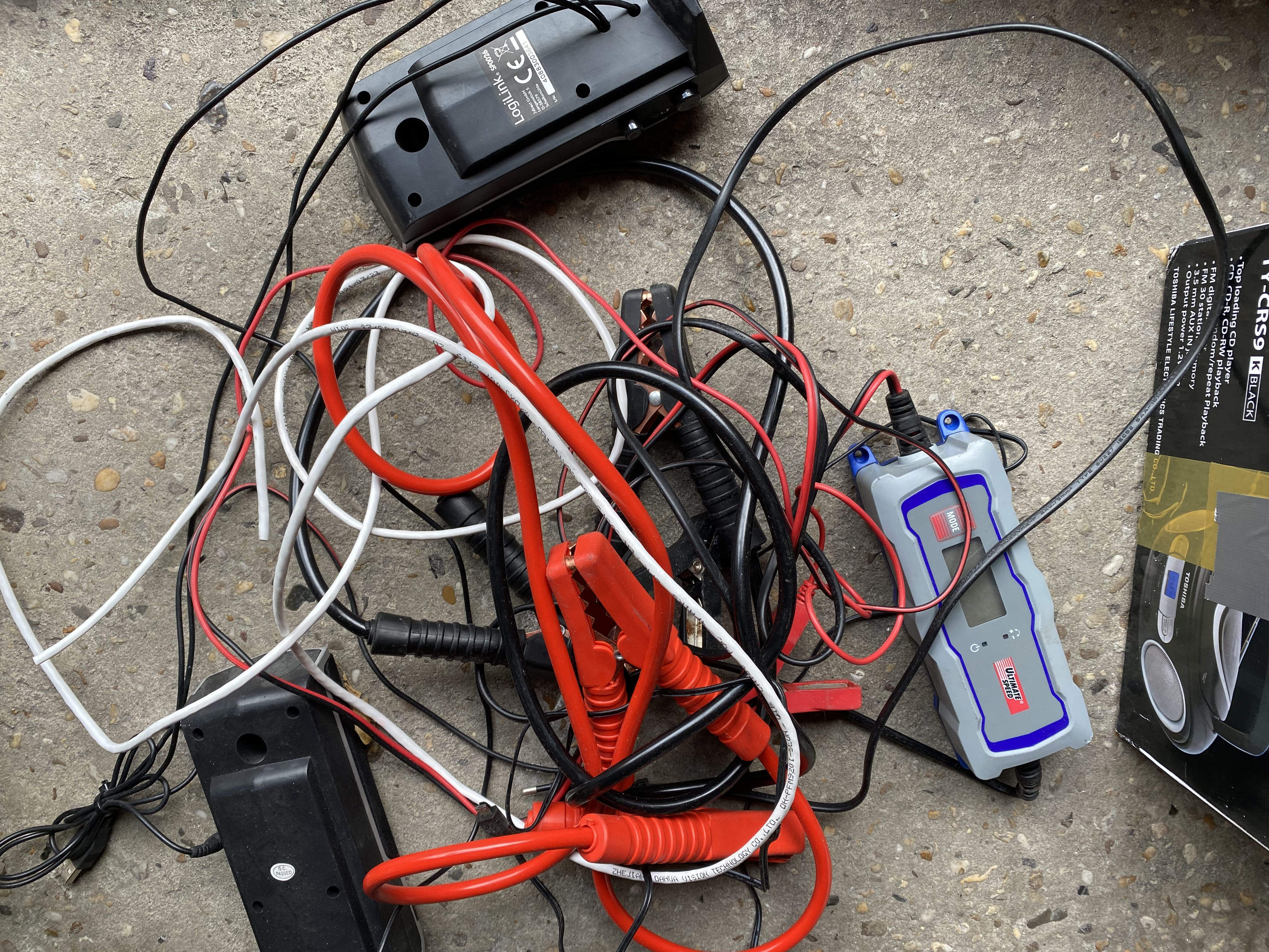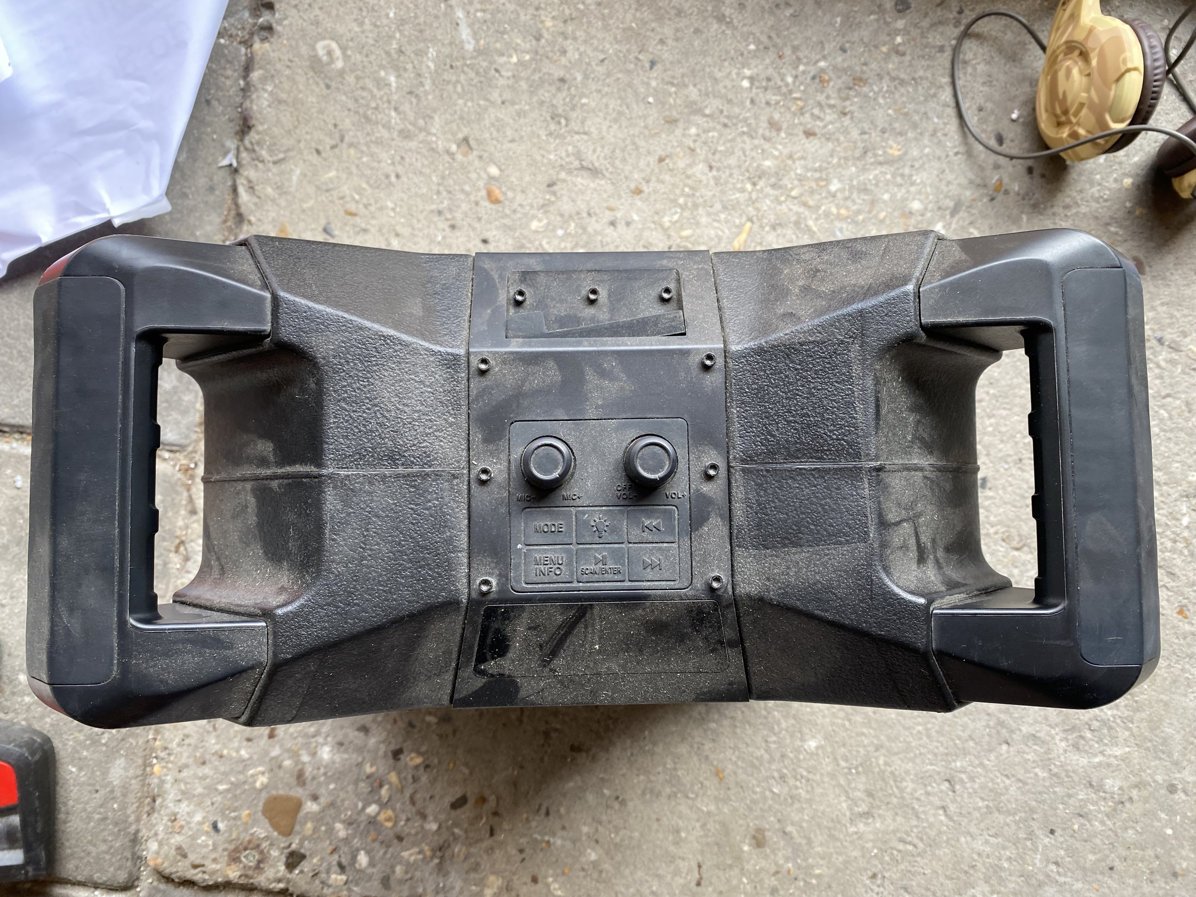 1 Rolcontainer met o.a. monitoren, stofzuiger, N-Gear speakers, zie foto's voor details