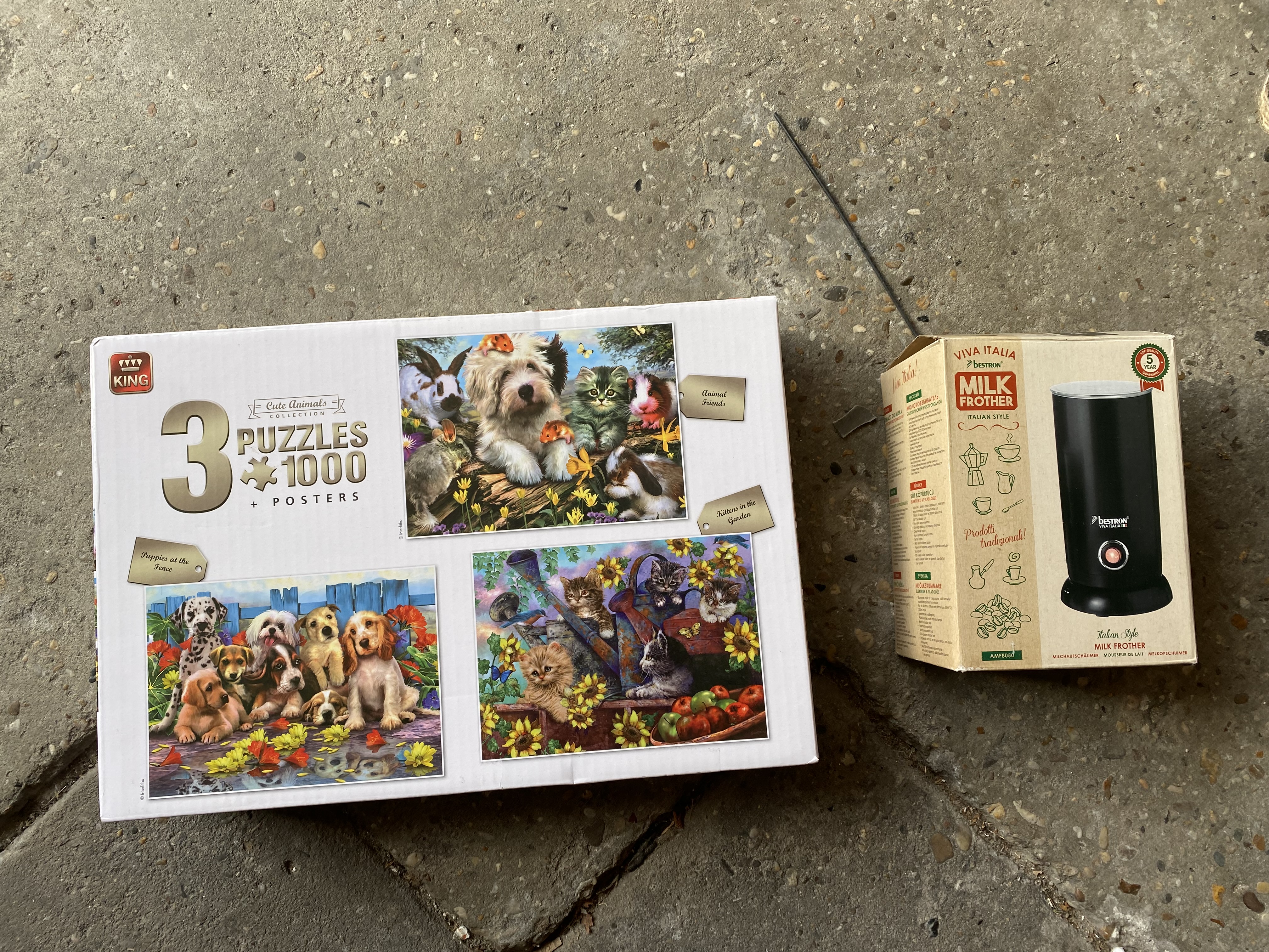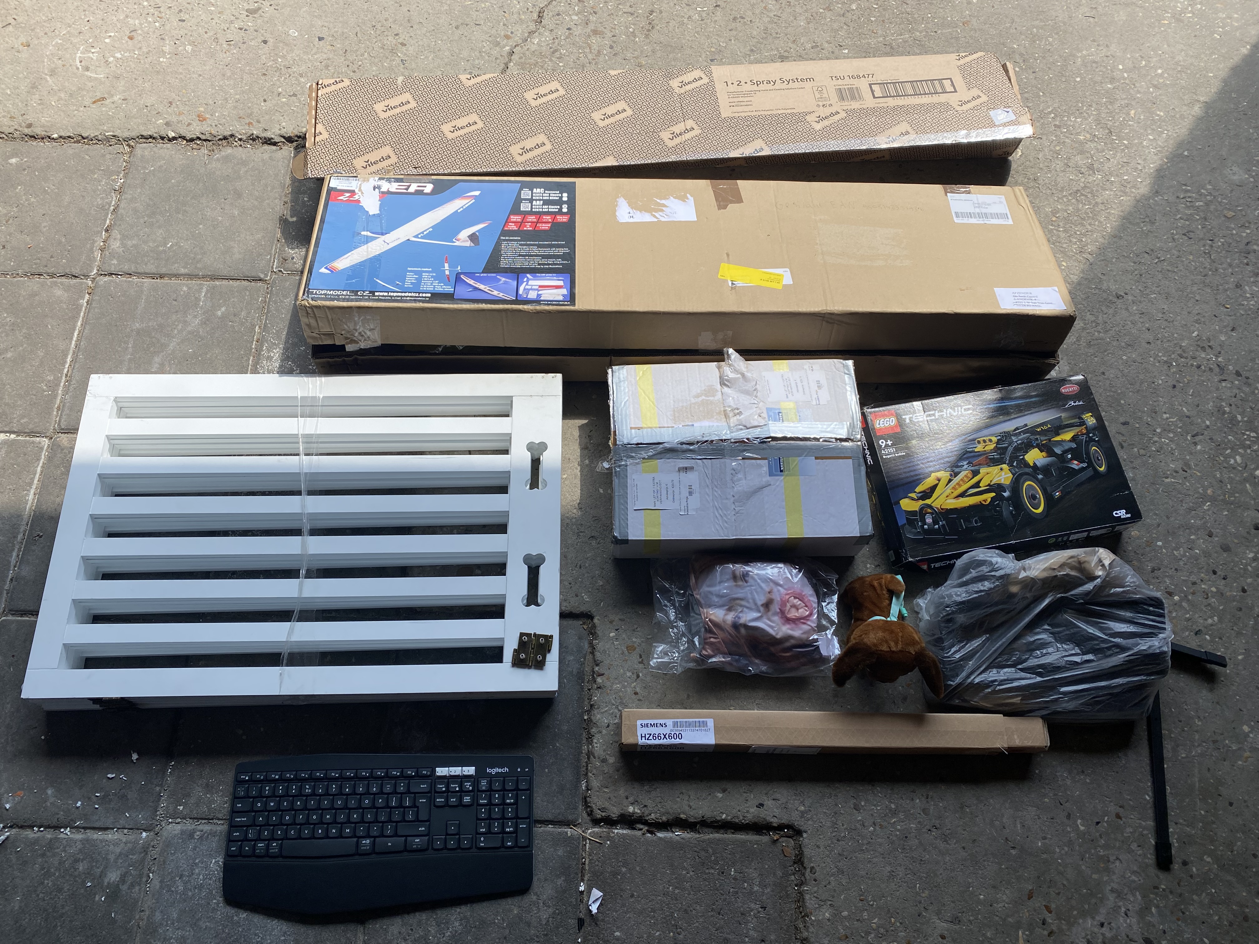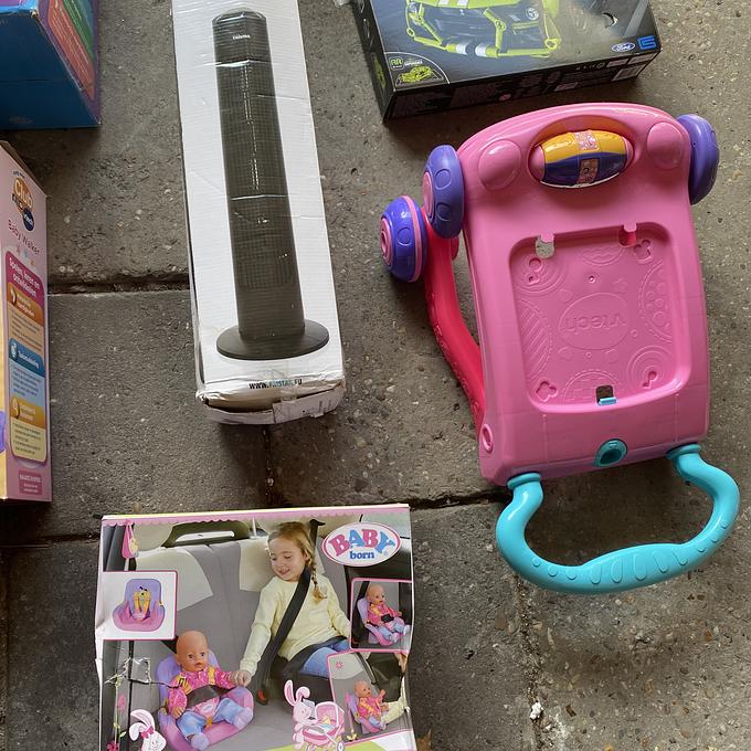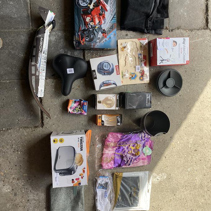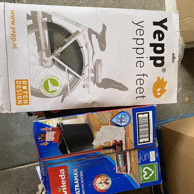 Deze partij bevat onder andere retourgoederen en dus ook goederen die gebruikssporen kunnen bevatten, incompleet kunnen zijn of mogelijk defect zijn. De partij dient afgehaald te worden in Dokkum op de afgiftedag. De rolcontainer wordt niet meegeleverd.