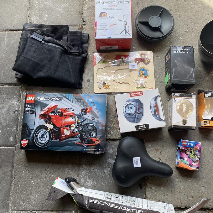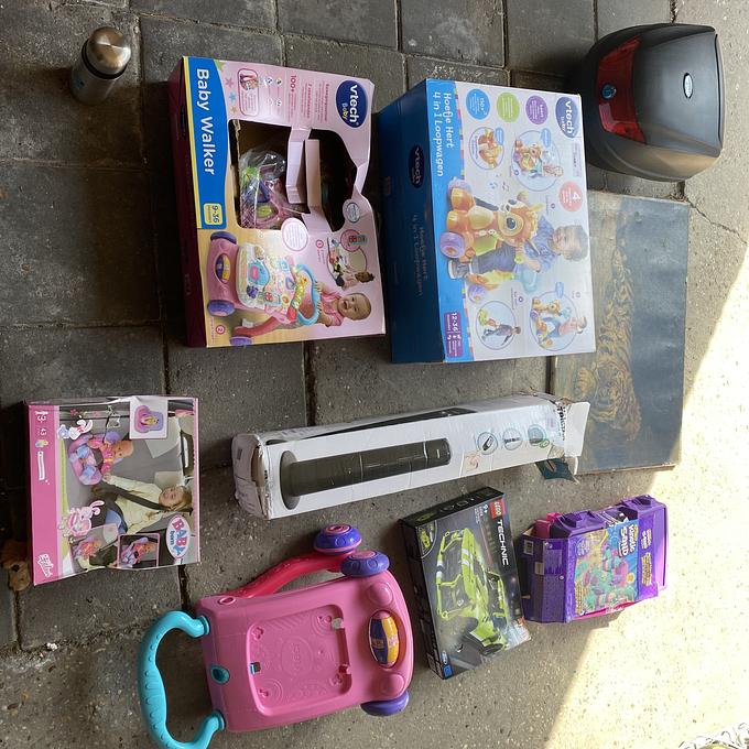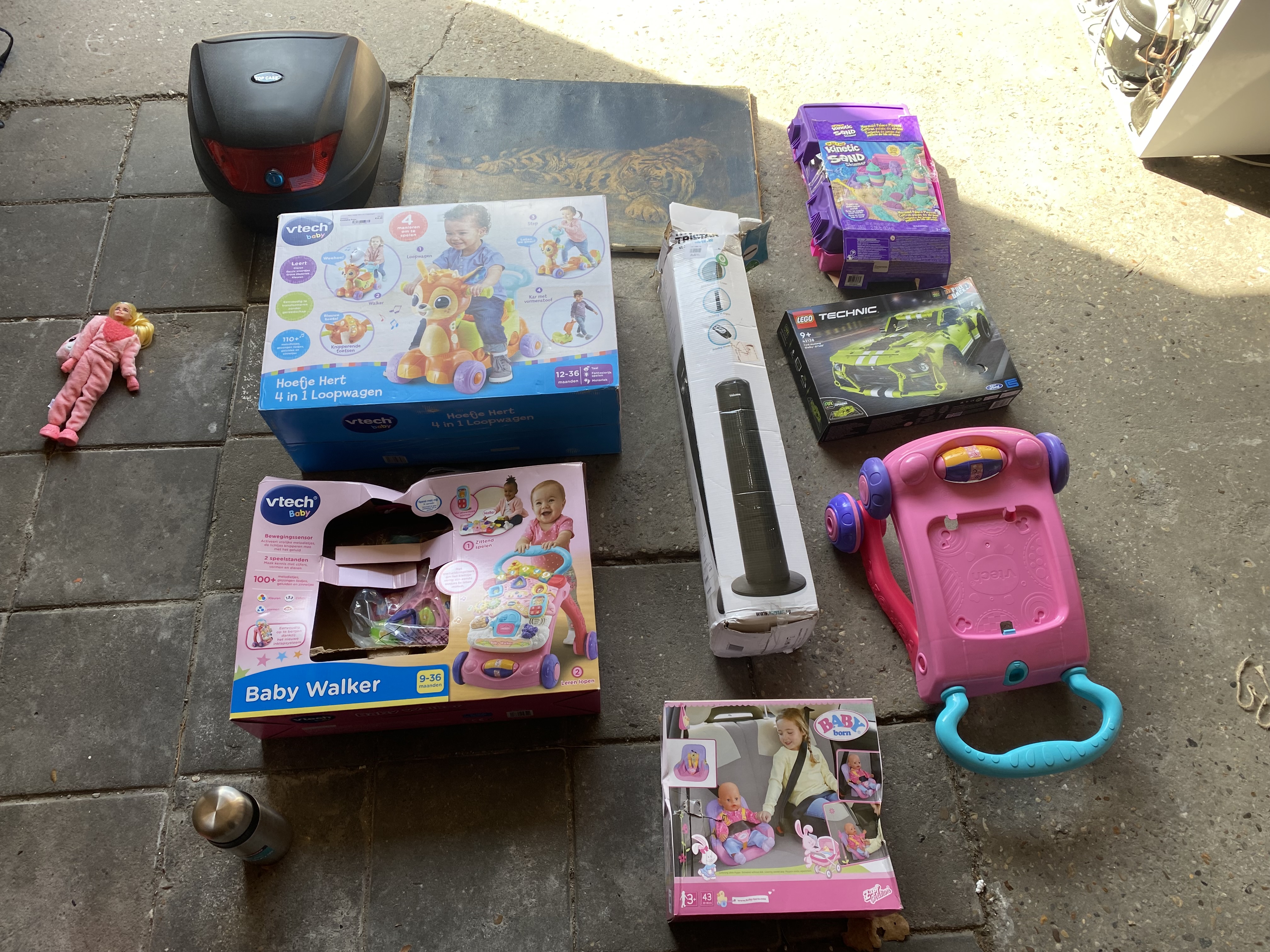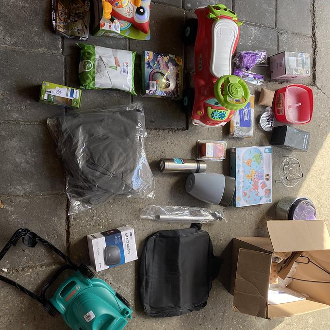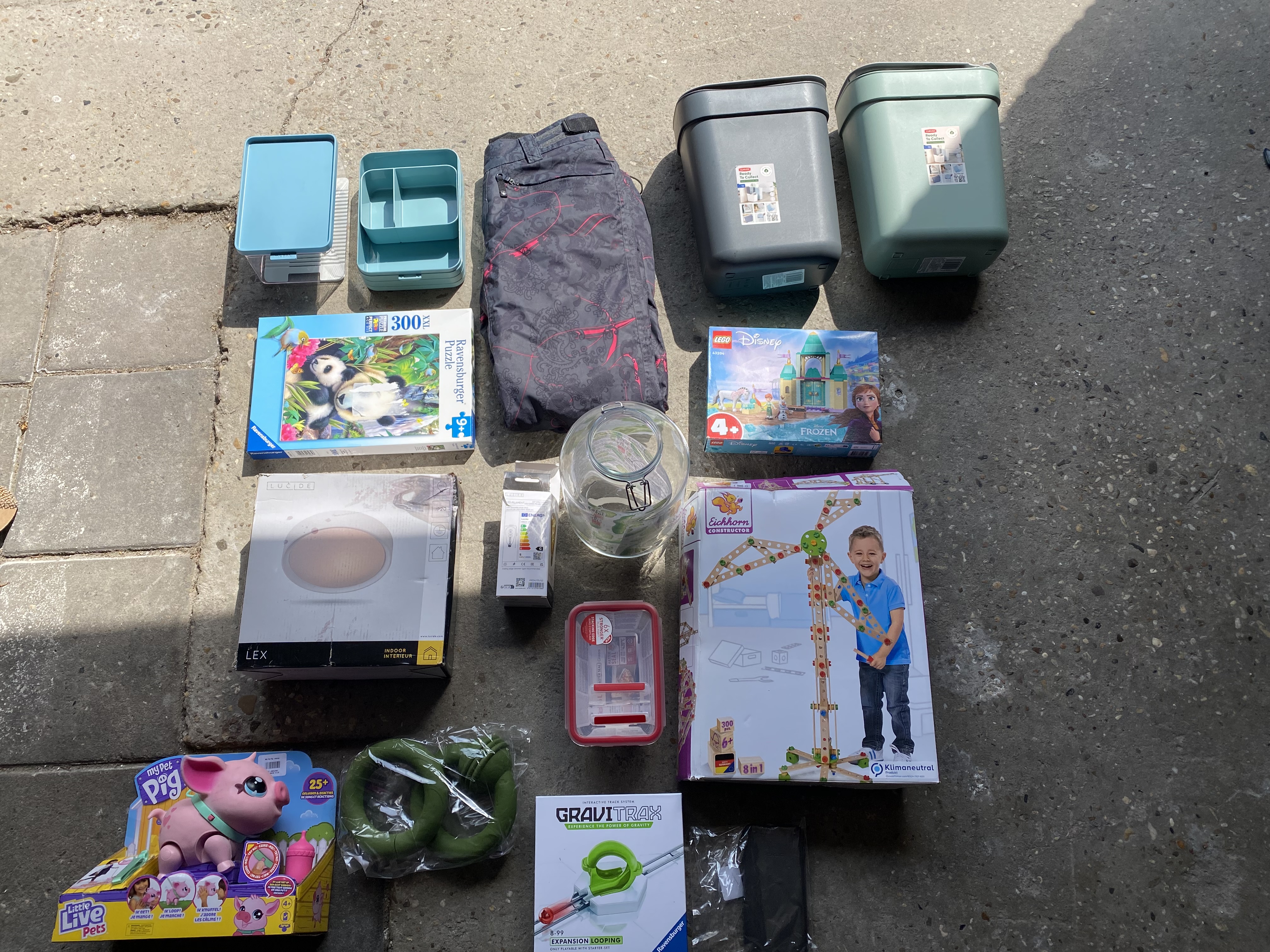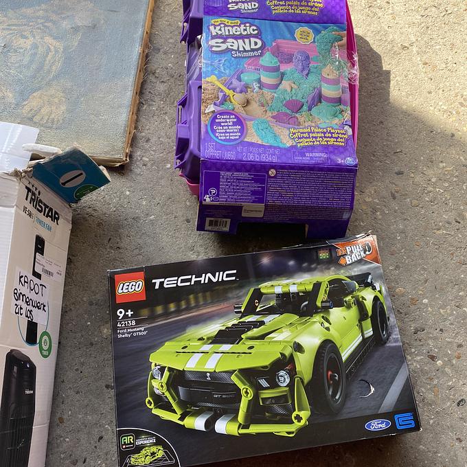 Over de 1x Rolcontainer met Lego, elektrische en huishoudelijke artikelen + 1x Pallet restartikelen