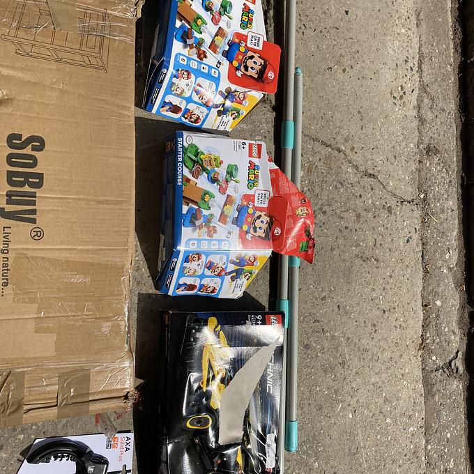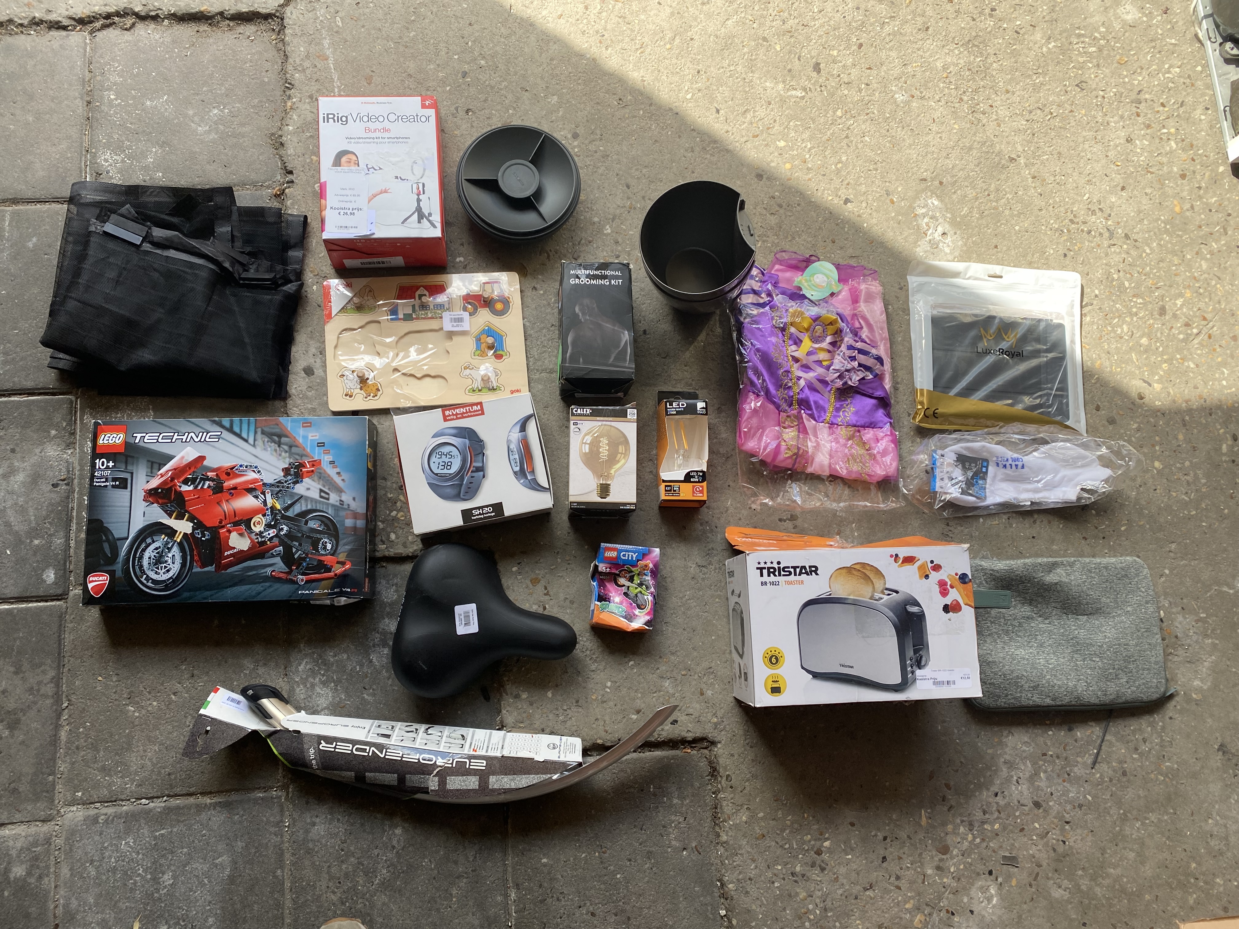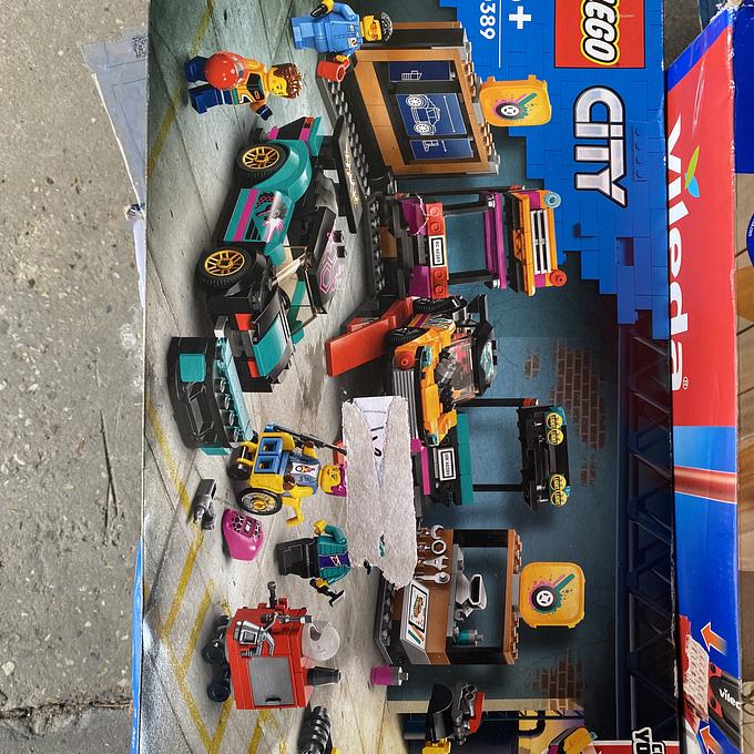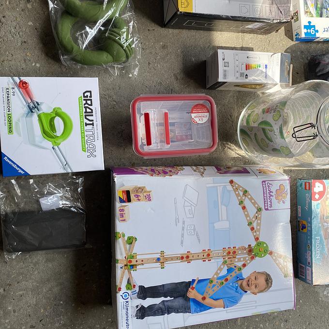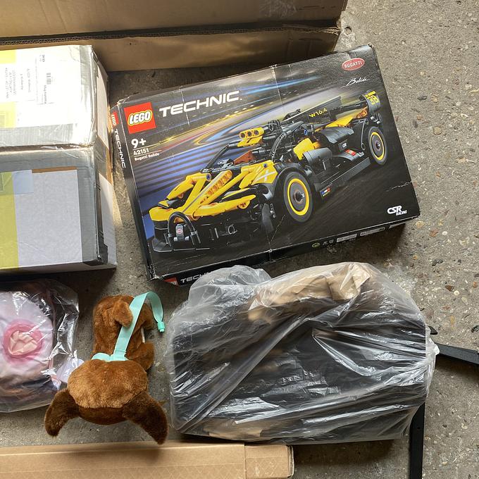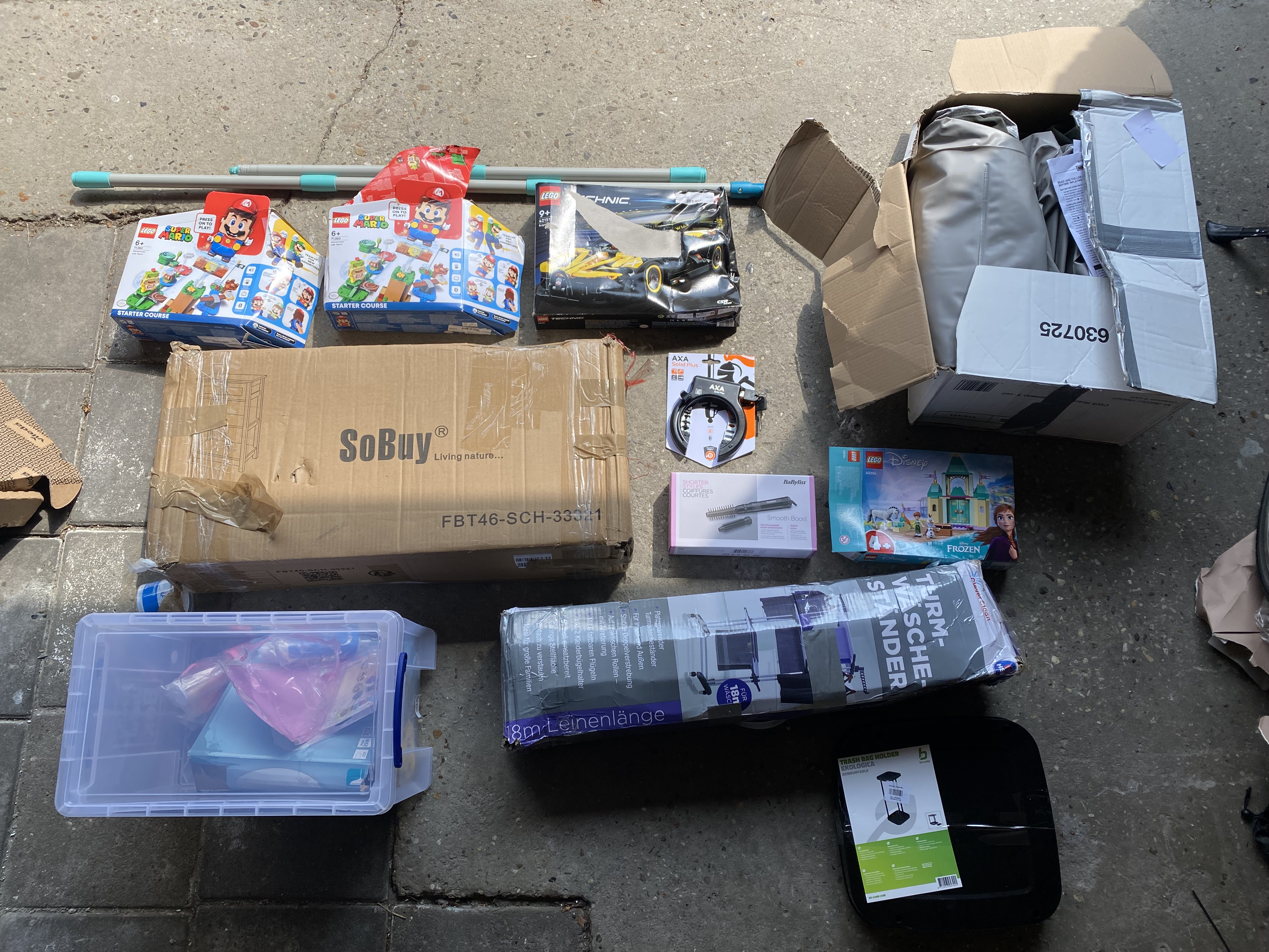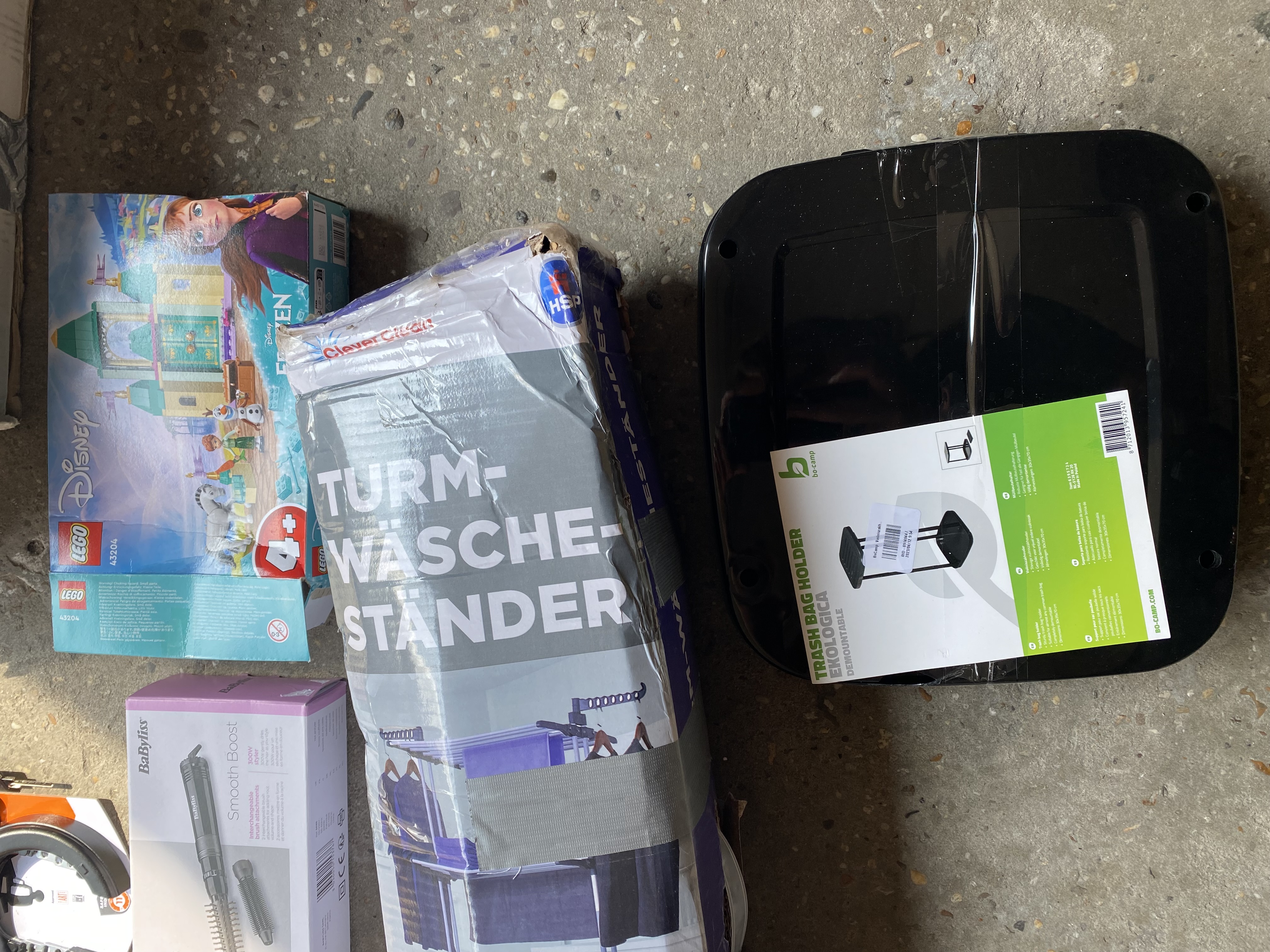 Over de 1x Rolcontainer met Lego, elektrische en huishoudelijke artikelen + 1x Pallet restartikelen