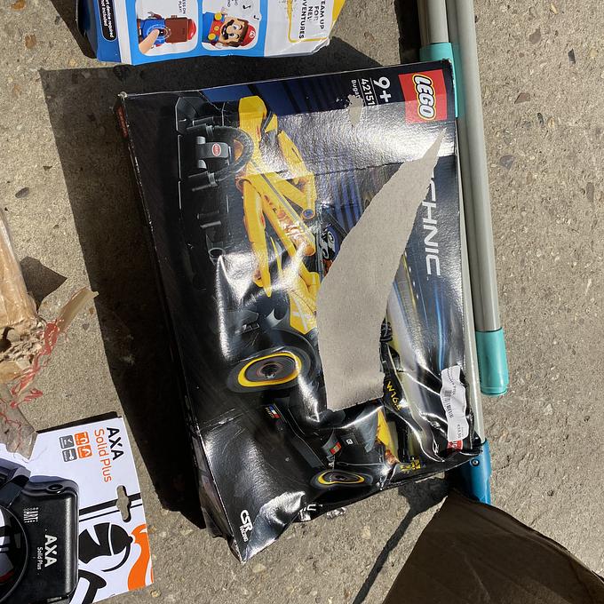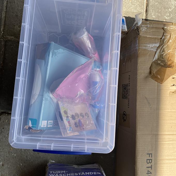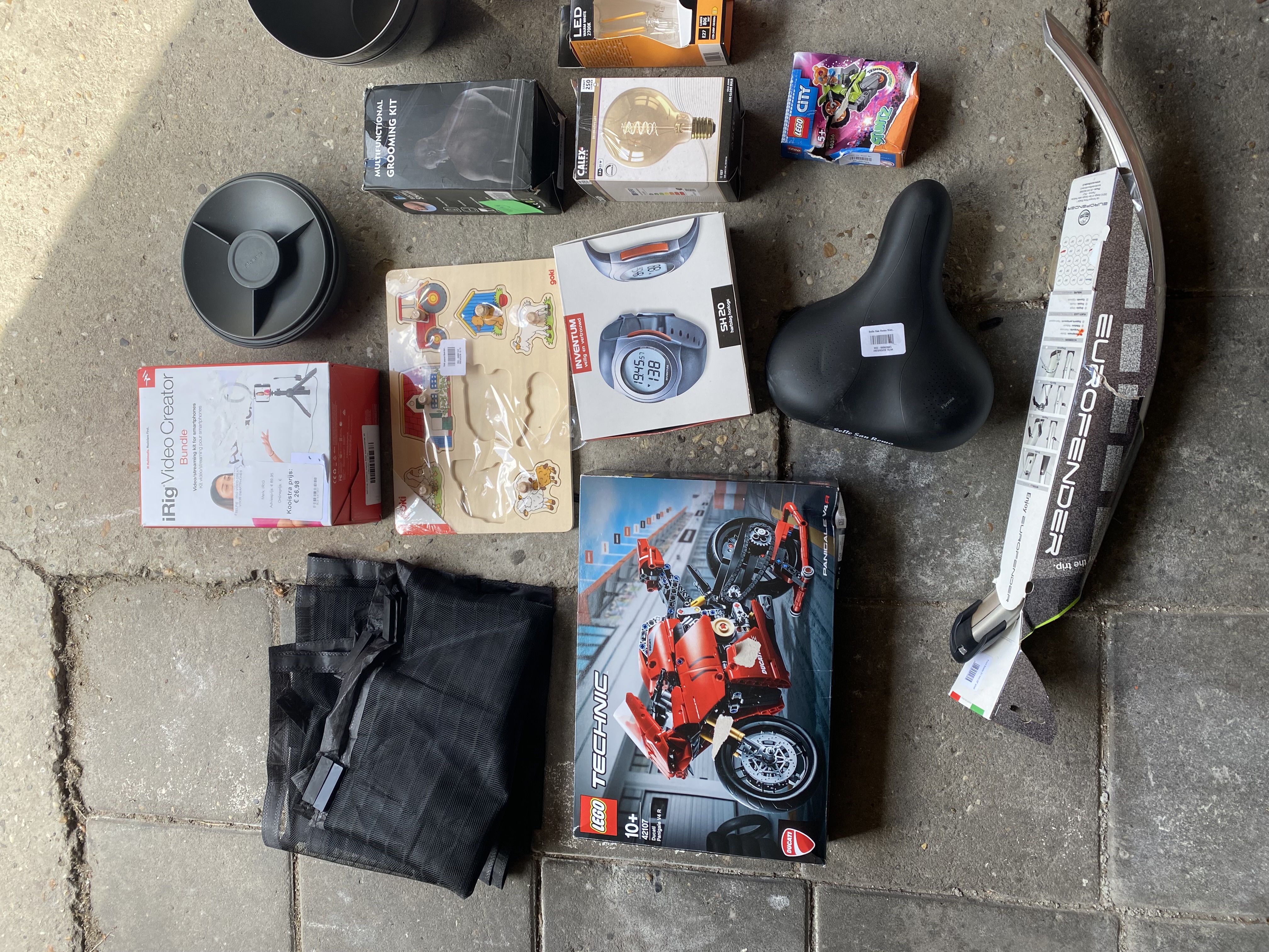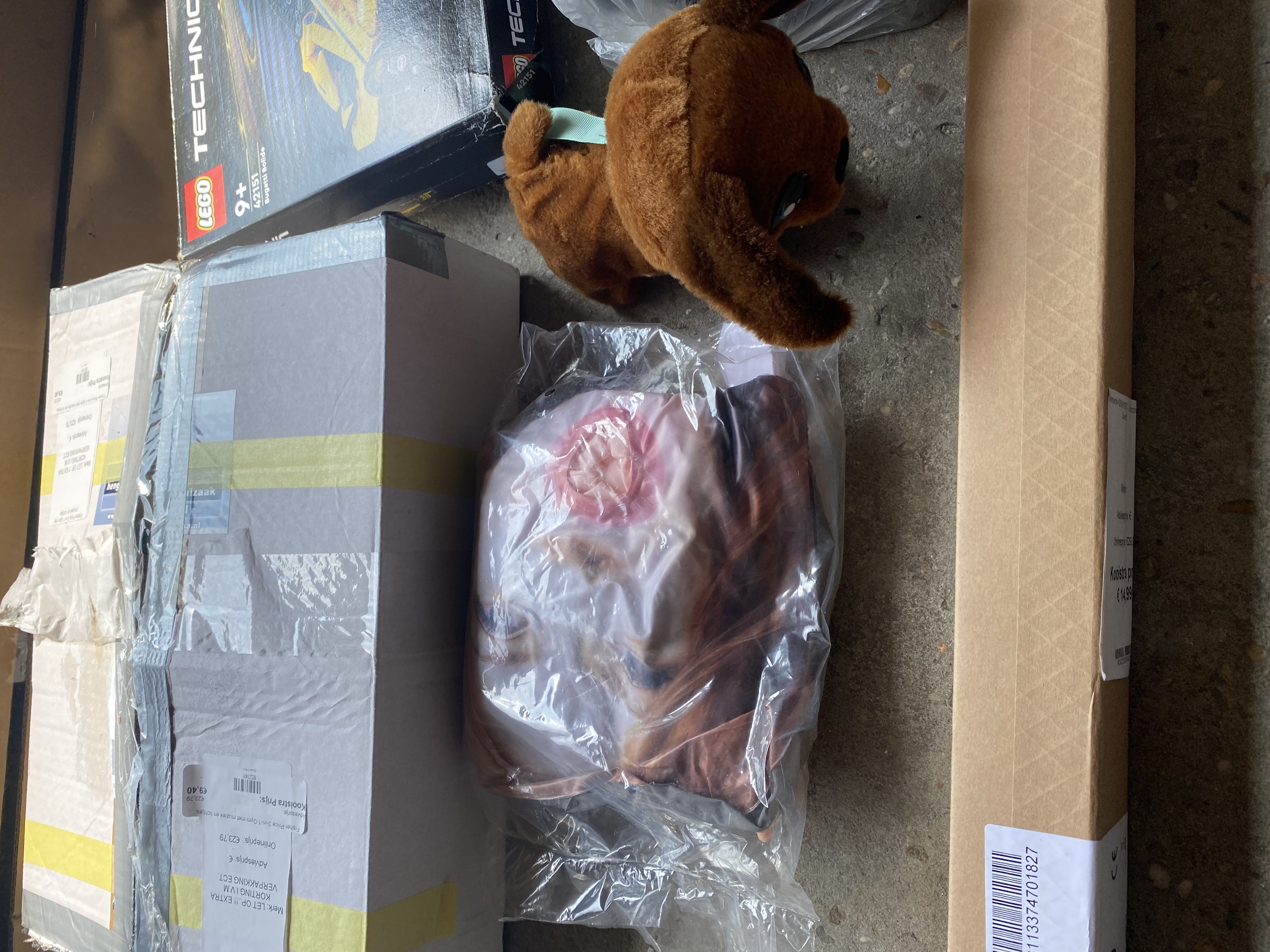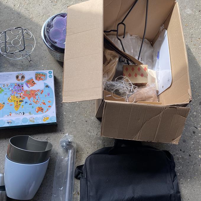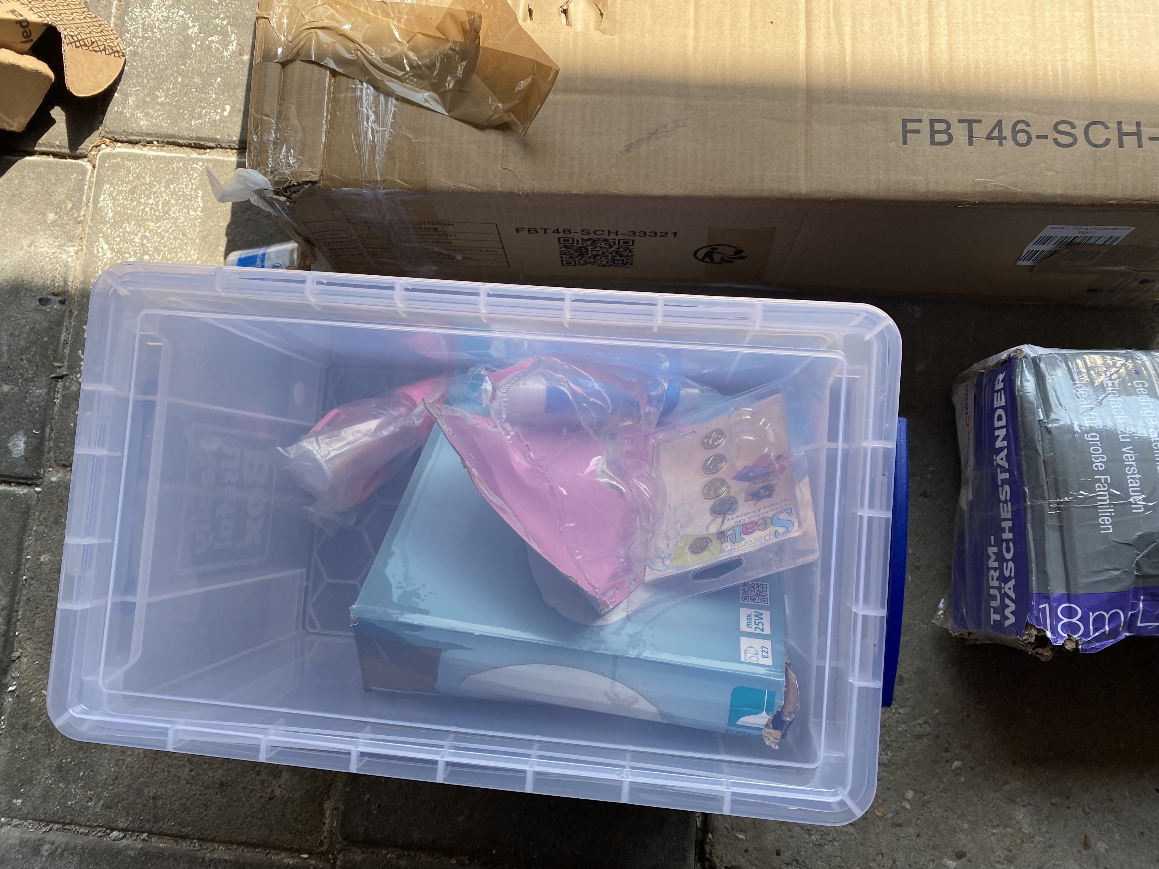Over de 1x Rolcontainer met Lego, elektrische en huishoudelijke artikelen + 1x Pallet restartikelen