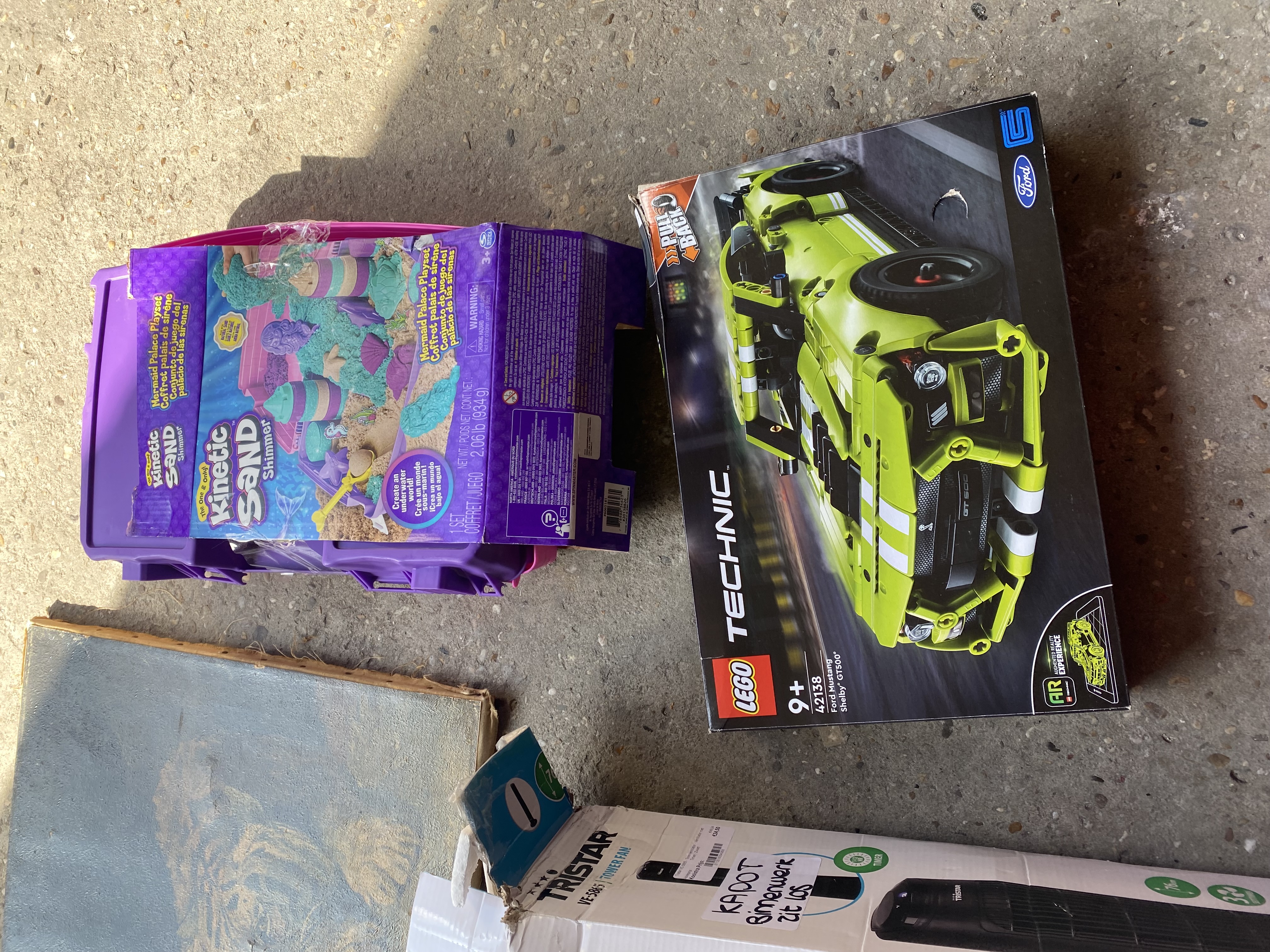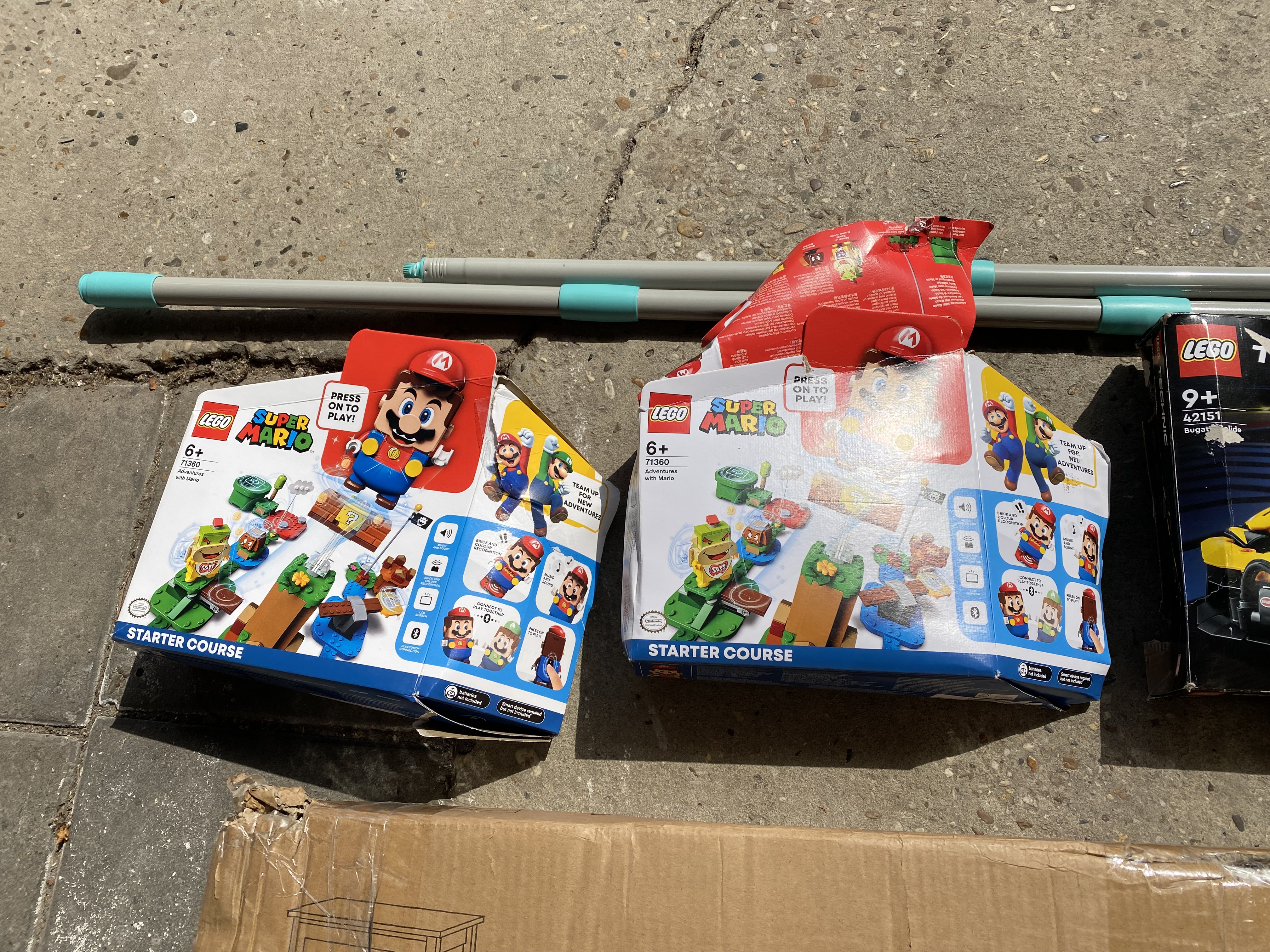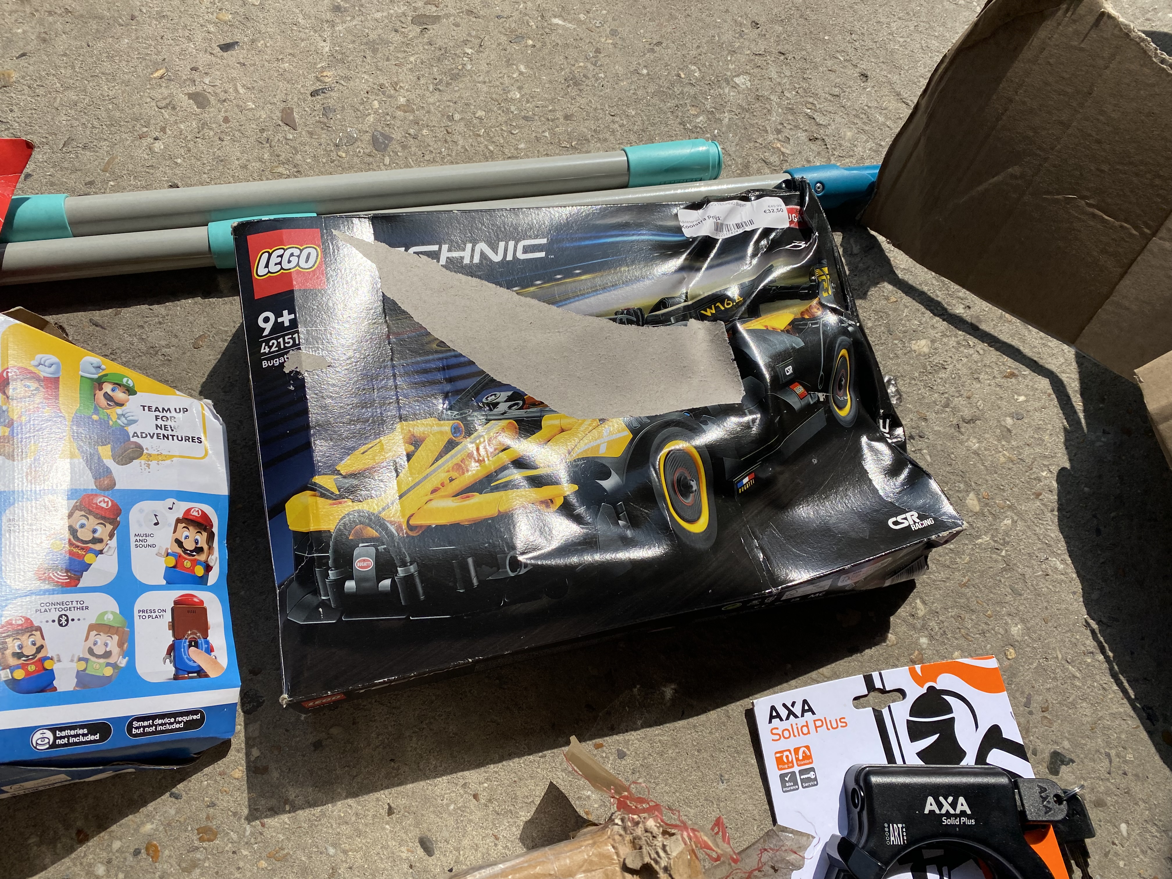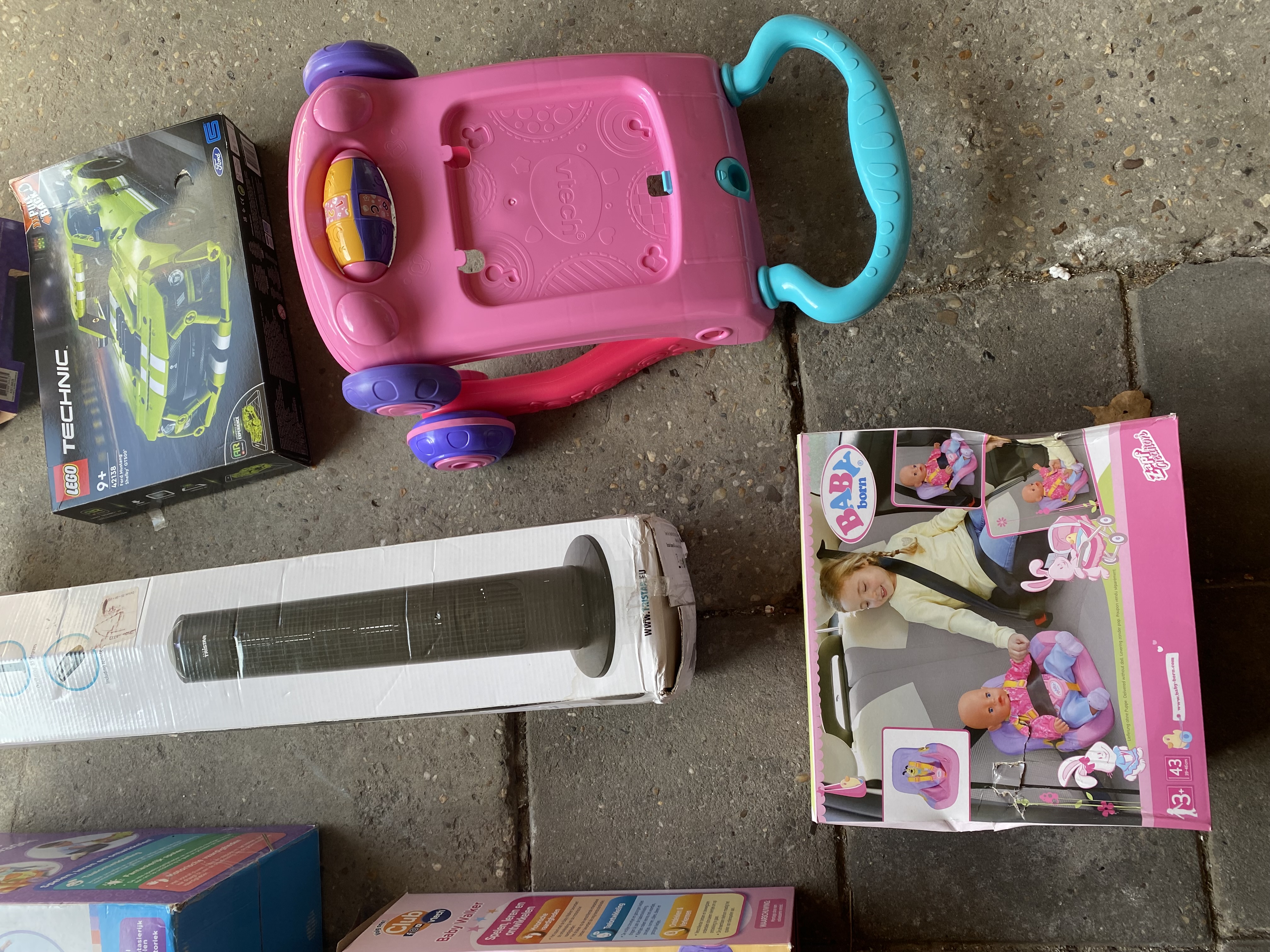 1x Rolcontainer met Lego, elektrische en huishoudelijke artikelen + 1x Pallet restartikelen