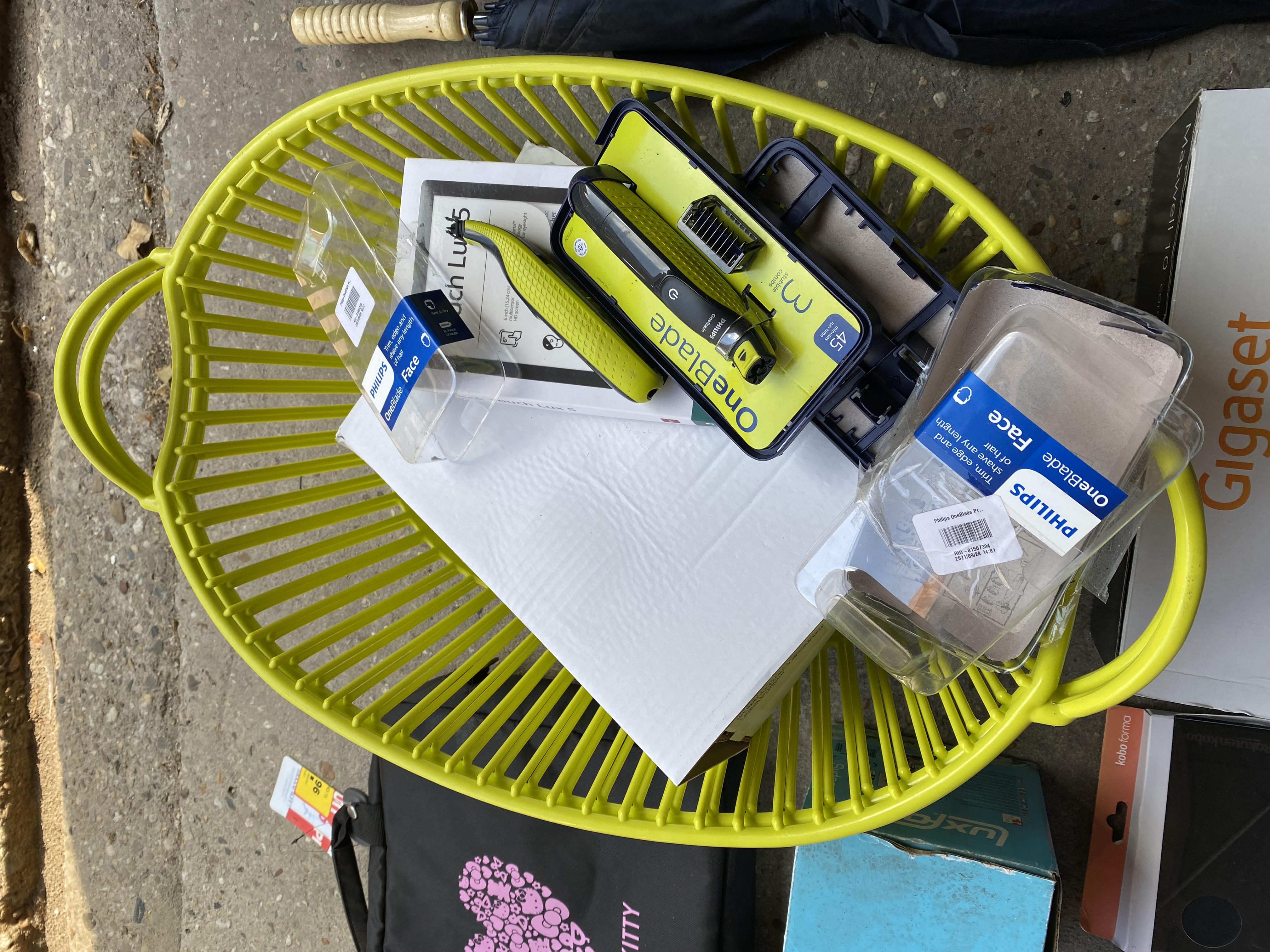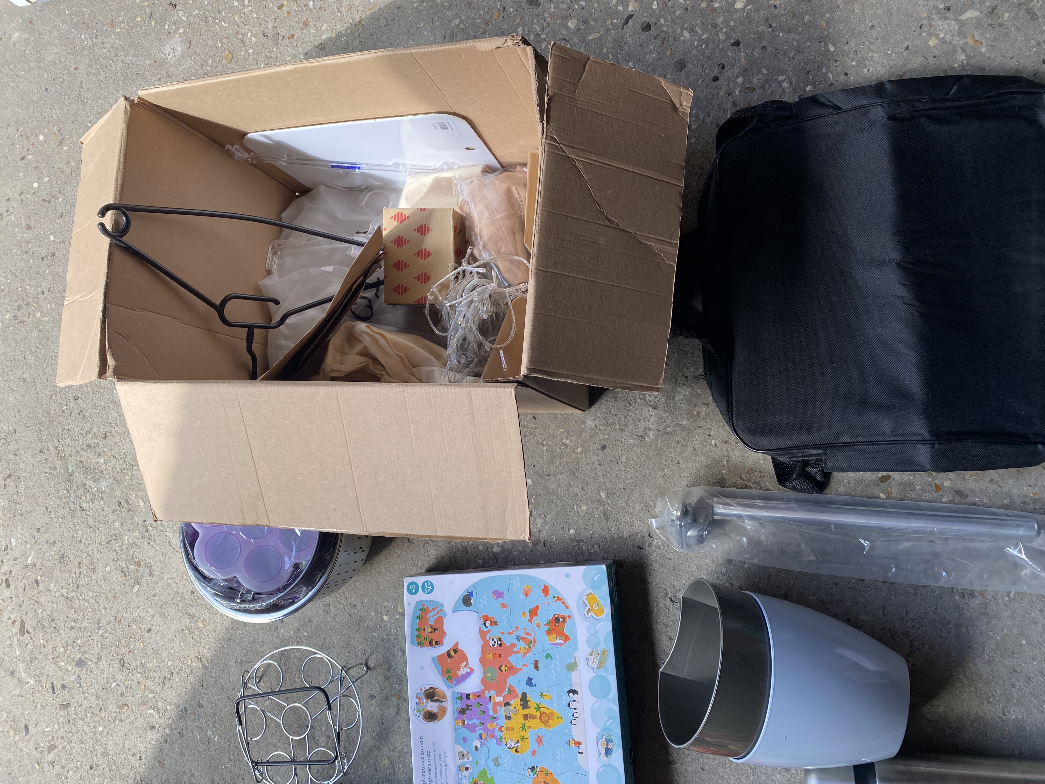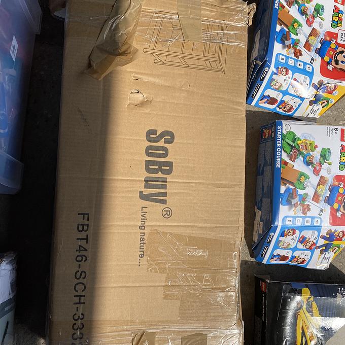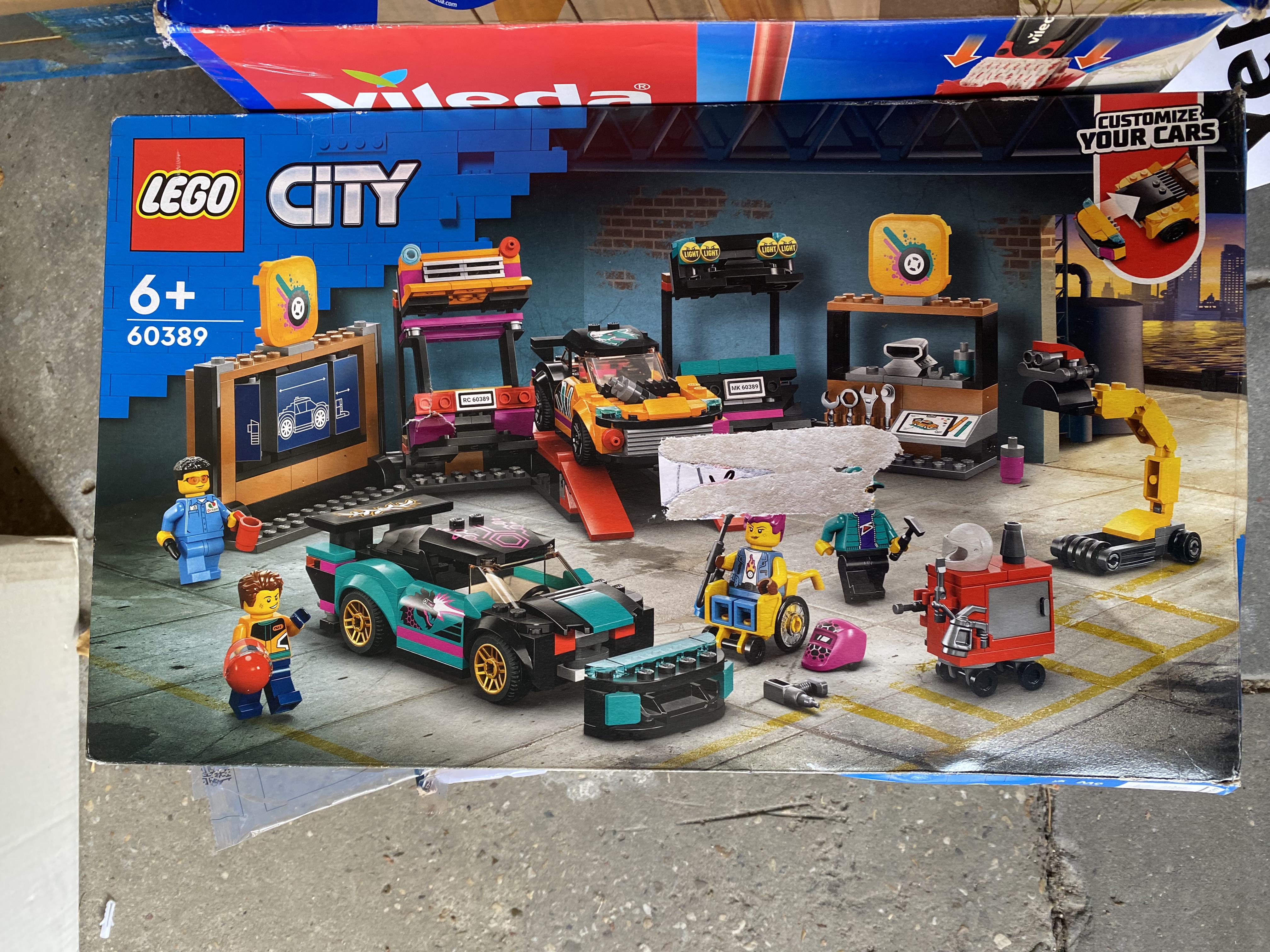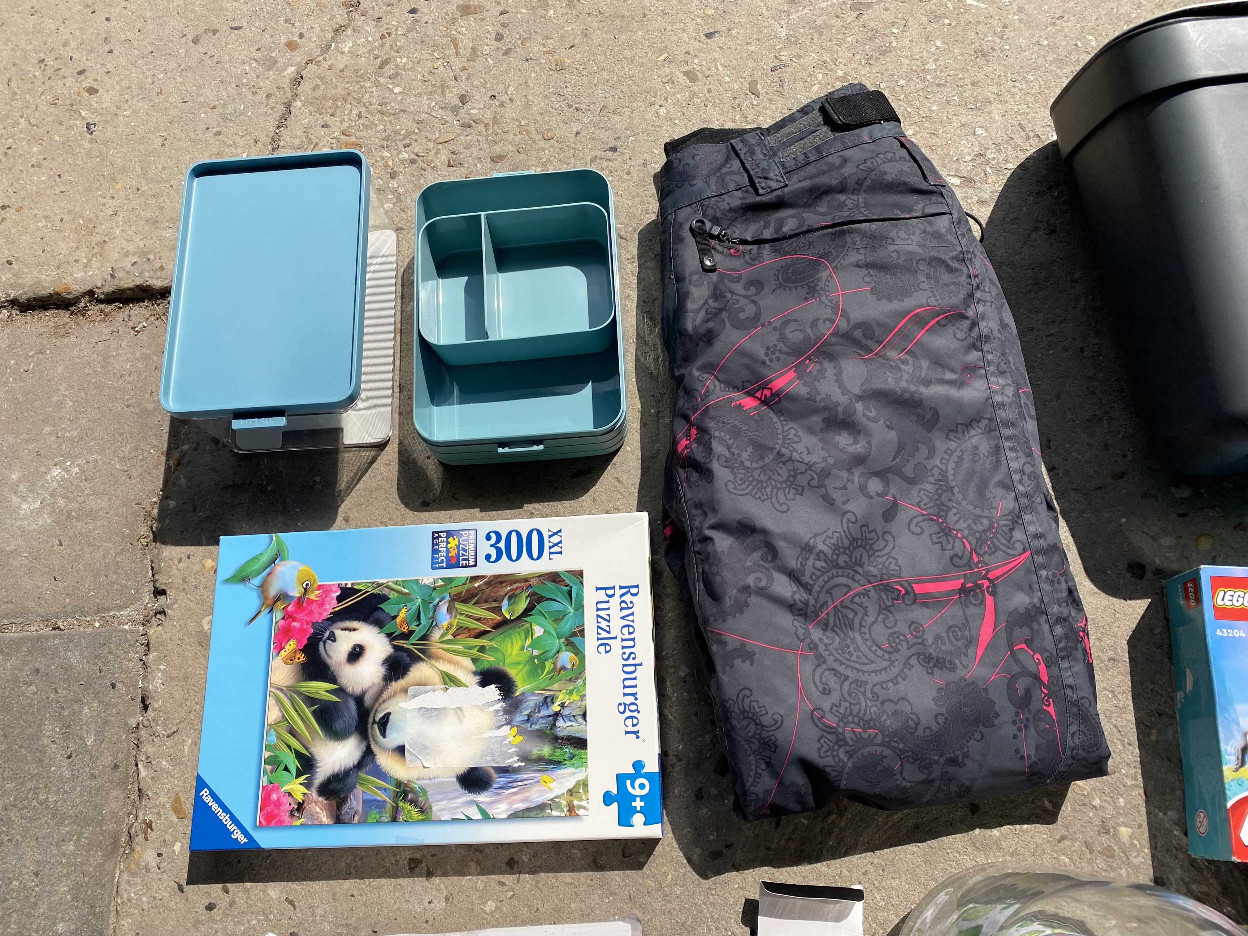 1x Rolcontainer met Lego, elektrische en huishoudelijke artikelen + 1x Pallet restartikelen