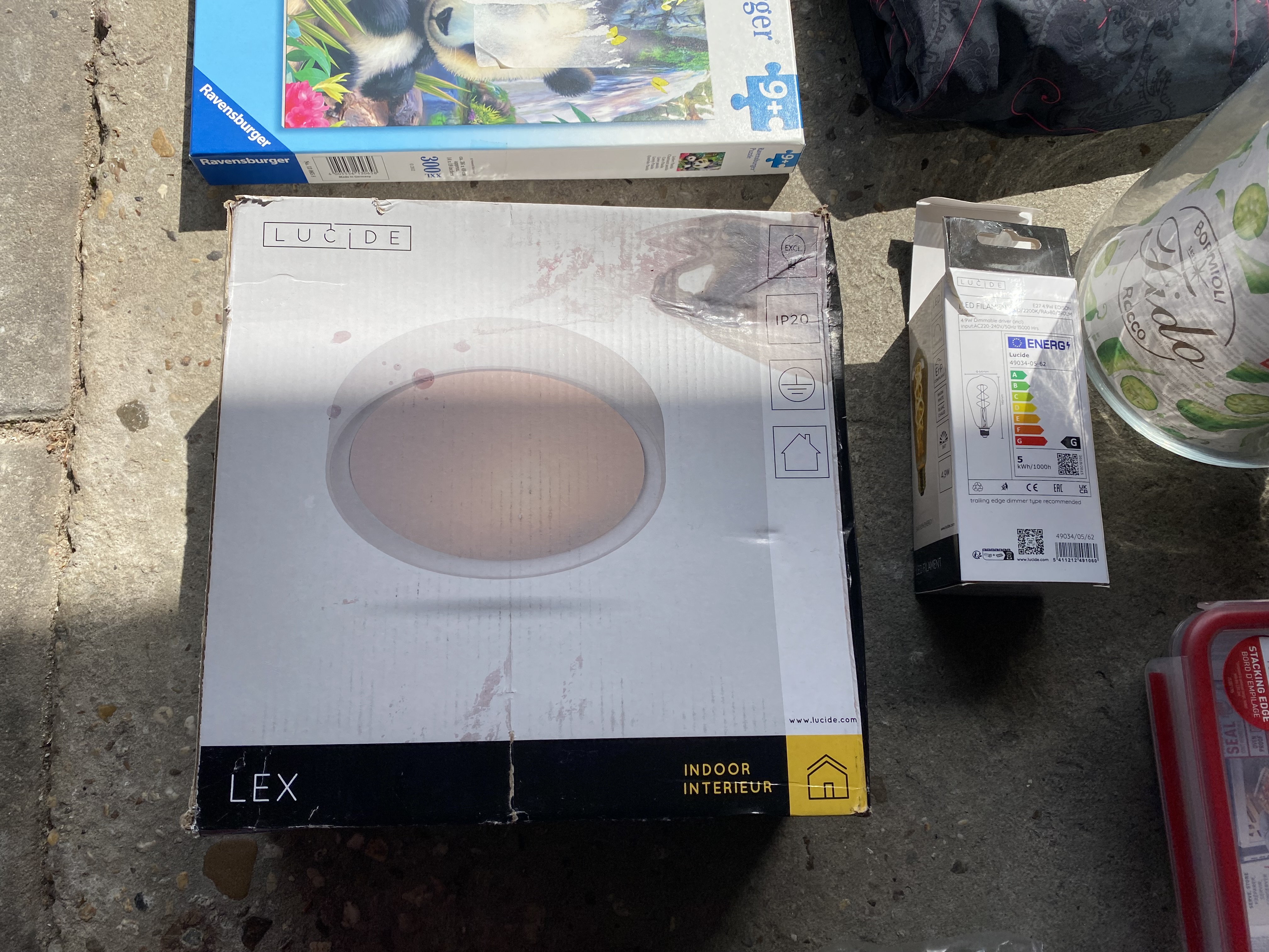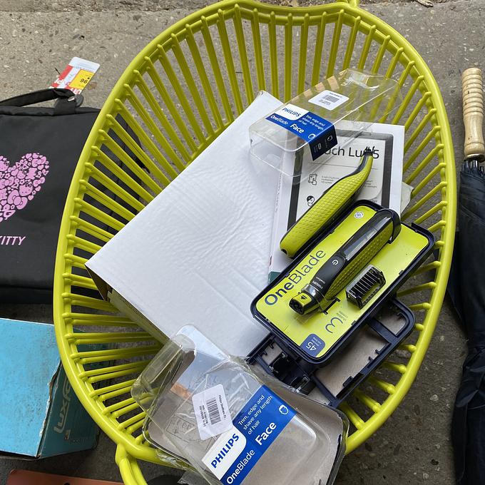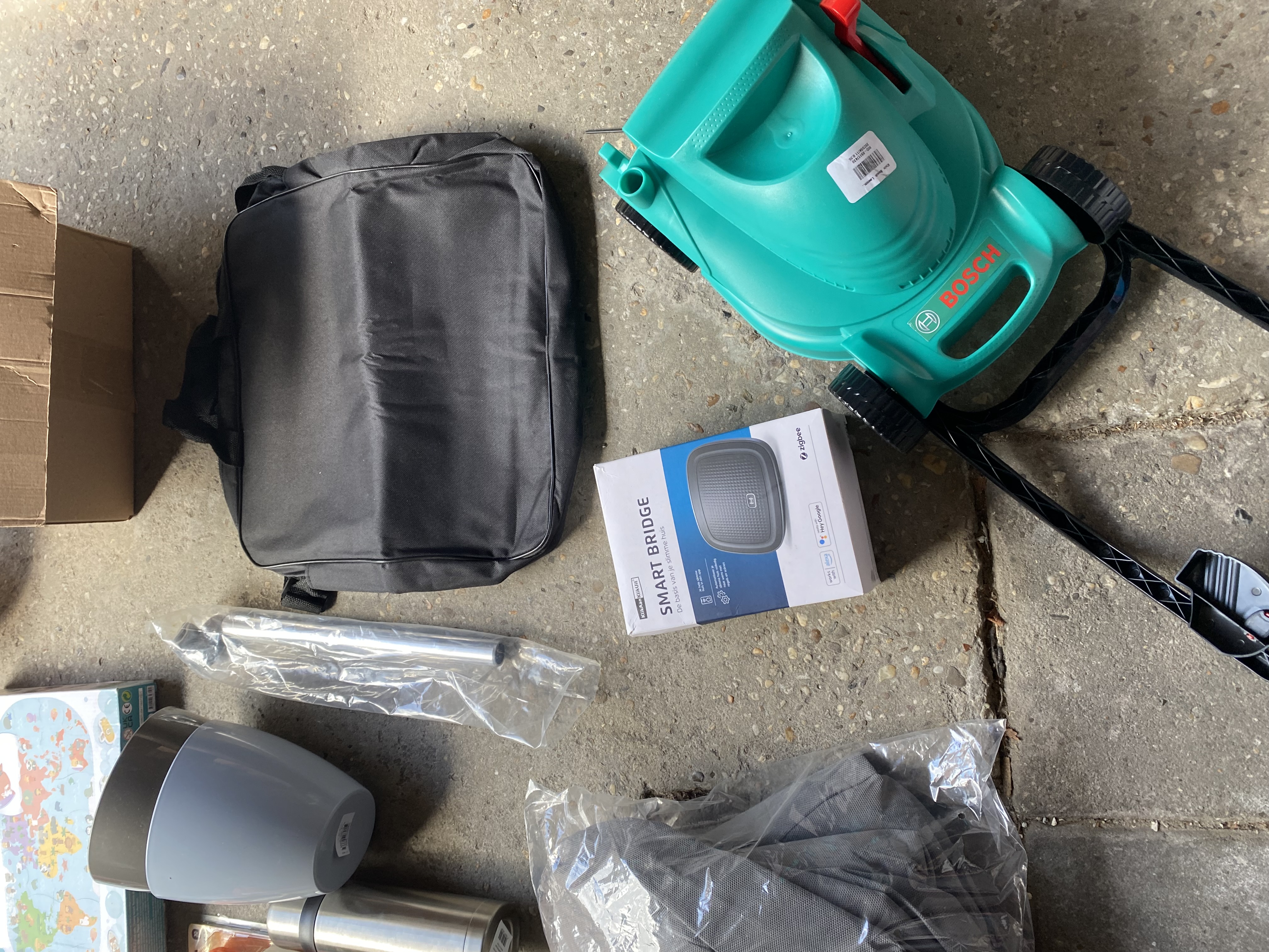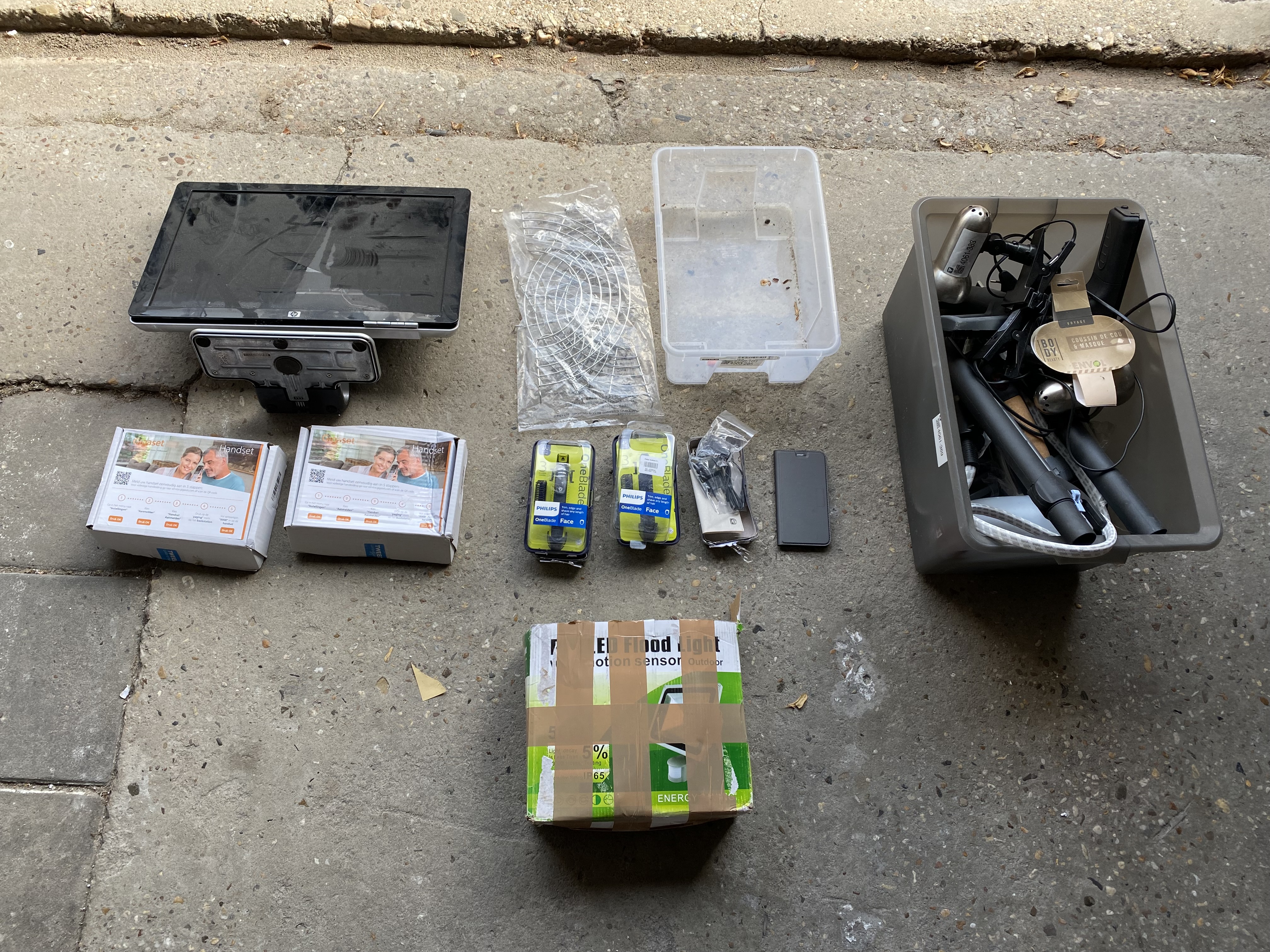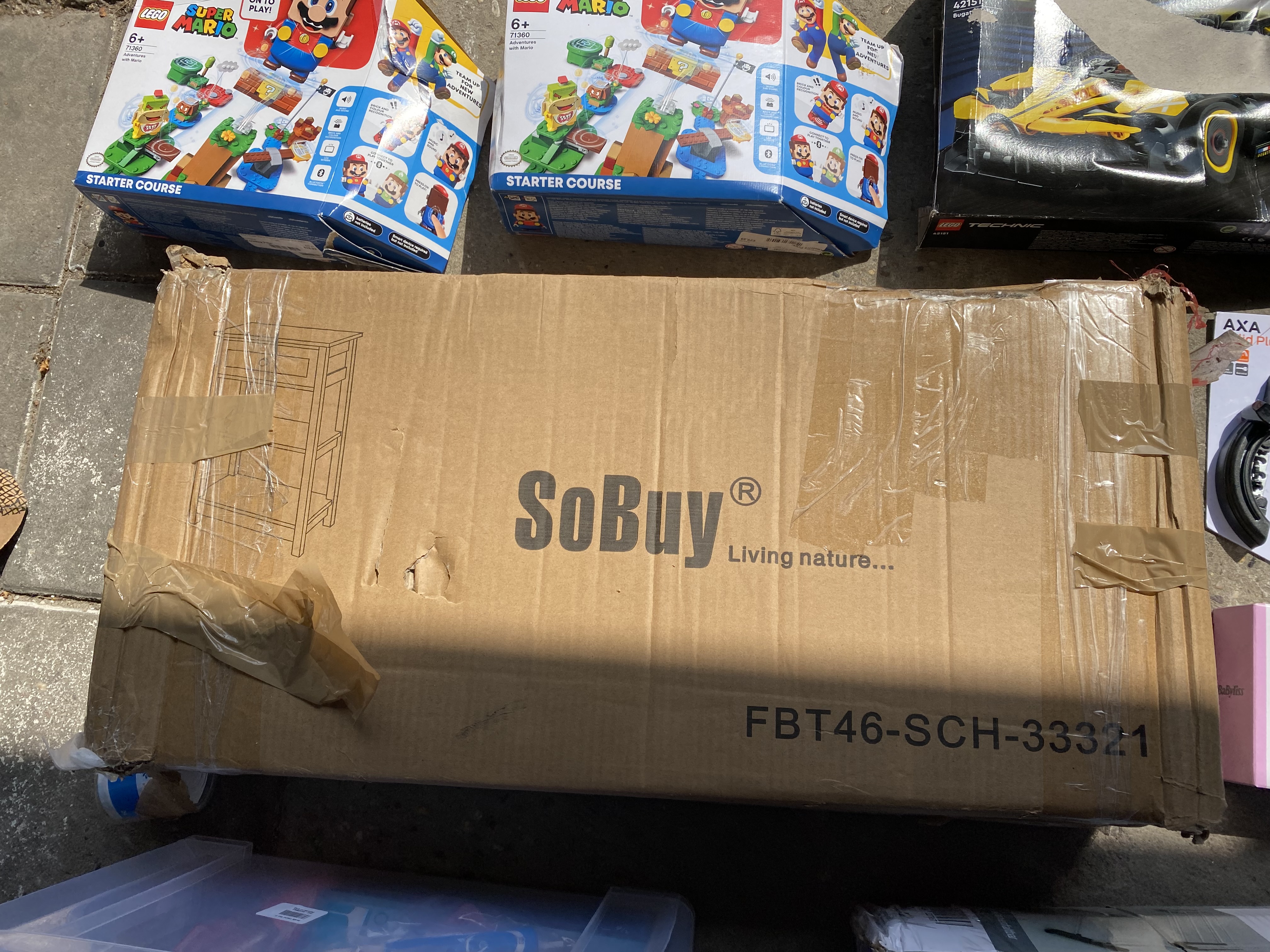 1x Rolcontainer met Lego, elektrische en huishoudelijke artikelen + 1x Pallet restartikelen