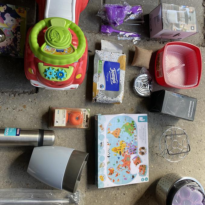 1 Pallet met o.a. speelgoed, huishoudelijke artikelen, keukenartikelen, etc, zie foto's voor details