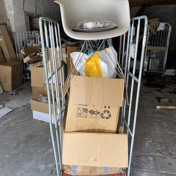 Over de 1x Rolcontainer met stoelen en badartikelen + 1x Rolcontainer met huishoudelijke artikelen