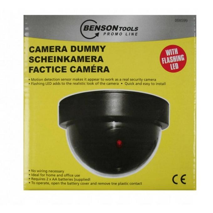 Productbeschrijving: Dummy-Camera Geen bedrading nodig Heeft een preventieve werking Te bevestigen aan zowel muur als plafond Voor zowel binnen- als buitenshuis Met sensor Voor binnen en buiten gebruik. Met 1 rode led.