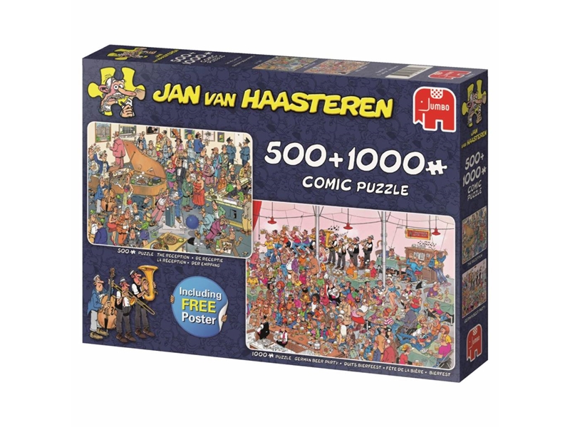 2 Jan Van Haasteren puzzel 2-in-1 legpuzzels receptie & duits bierfeest – 500 & 1000 stukjes