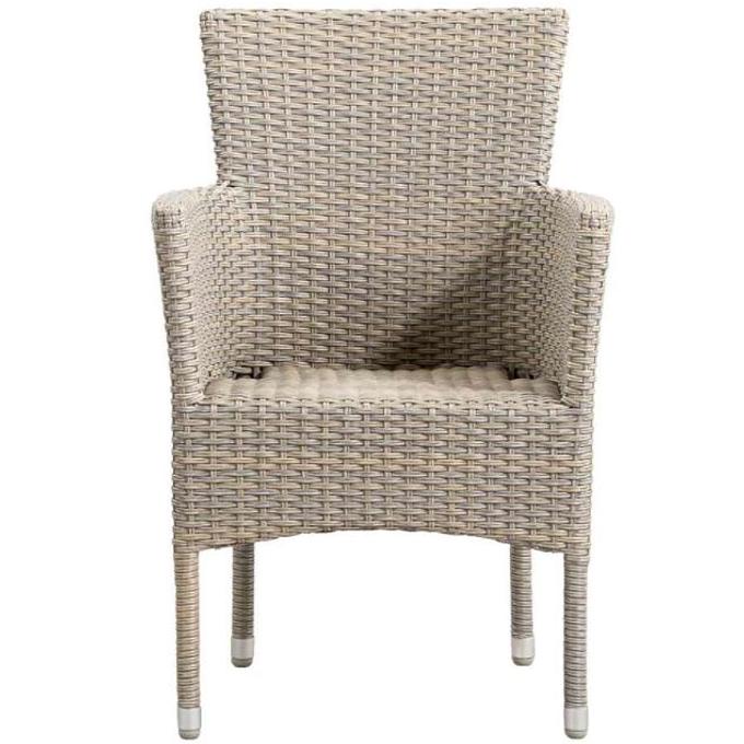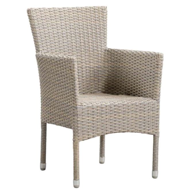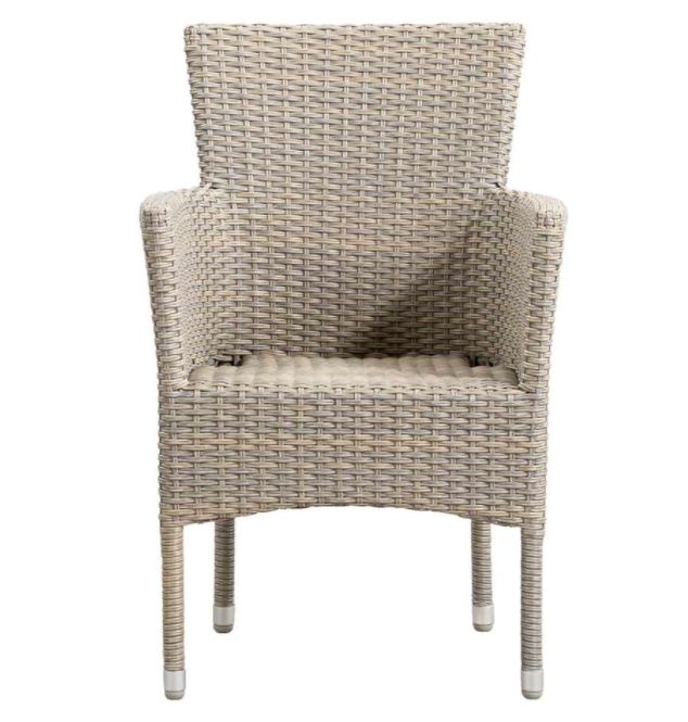 Productbeschrijving: Deze luxe fauteuil heeft een aluminium frame en is afgewerkt met gevlochten wicker. De Verona heeft een grijze kleur. Deze stoel is stapelbaar. Combineer de fauteuil met een tuintafel en creëer je eigen tuin eethoek.