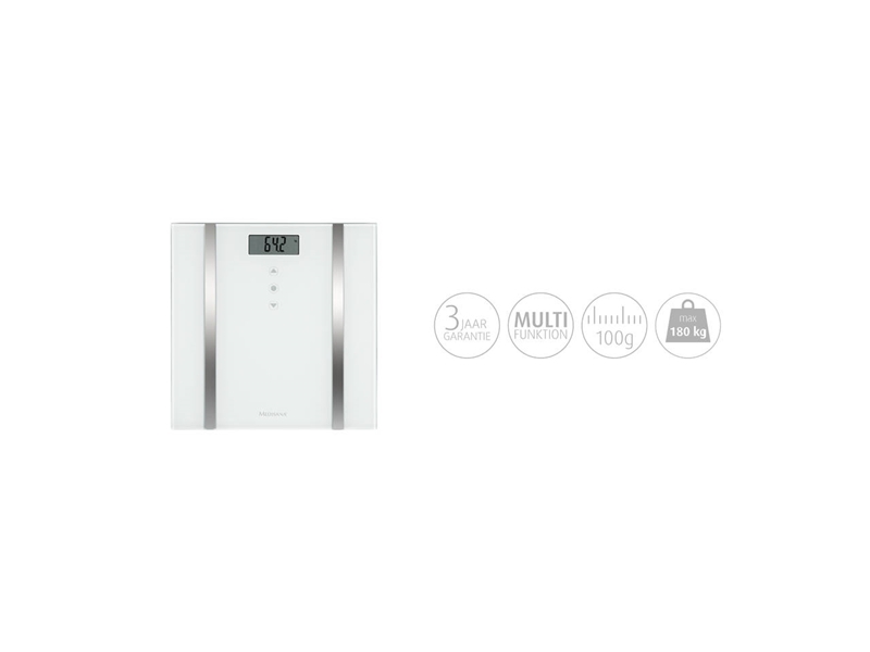 Productbeschrijving: dan ook de nieuwste technische snufjes die Medisana door jaren aan ervaring heeft ontwikkeld. De geborsteld RVS-elektroden meten met uiterste precisie de elektrische weerstand door de beide voeten en stellen zo zeer nauwkeurig het vet- en vochtpercentage vast en berekenen de spier- en botmassa. Deze functies helpen niet alleen bij het afvallen of op gewicht blijven, maar zijn de perfecte stimulans om de progressie van een work-out-schema te monitoren. Of je met dat gewicht op het juiste niveau zit in verhouding tot de lengte, laat de BMI-berekening dan weer zien. De berekening van de caloriebehoefte (BMR) geeft je nóg meer informatie en zo zorgt de BS 483 voor een zéér compleet overzicht van de lichamelijke gesteldheid.