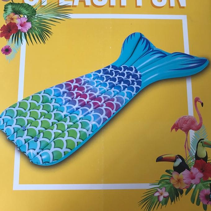 Productbeschrijving: Opblaasbaar luchtbed zeemeermin staart. Dit opblaasbare luchtbed/loungebed in de vorm van een zeemeerminstaart heeft een formaat van ongeveer 173 x 83 x 15 cm. Materiaal: Kunststof/vinyl. Zwembad/strand luchtbedden.
