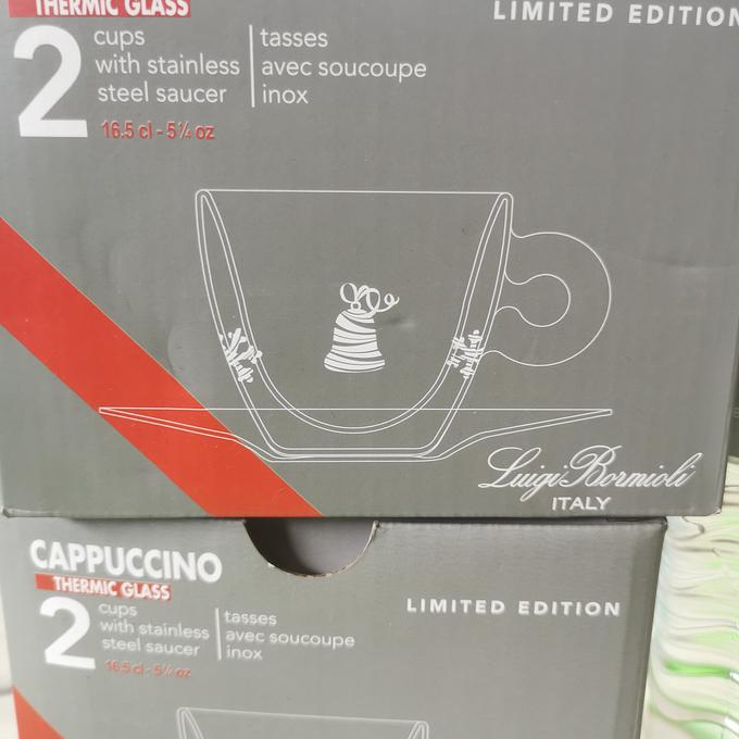 Over de 2x setjes Luigi Bormioli 2 cappuccino termische glazen limited edition 16,5cl met oor