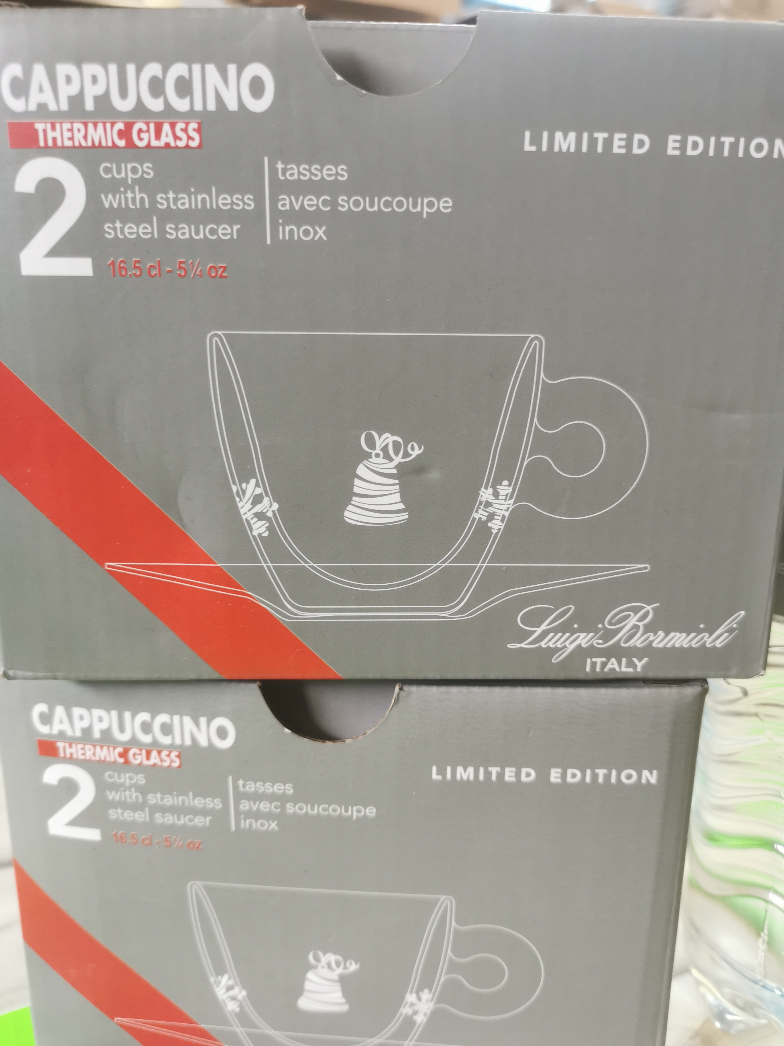 2x setjes Luigi Bormioli 2 cappuccino termische glazen limited edition 16,5cl met oor