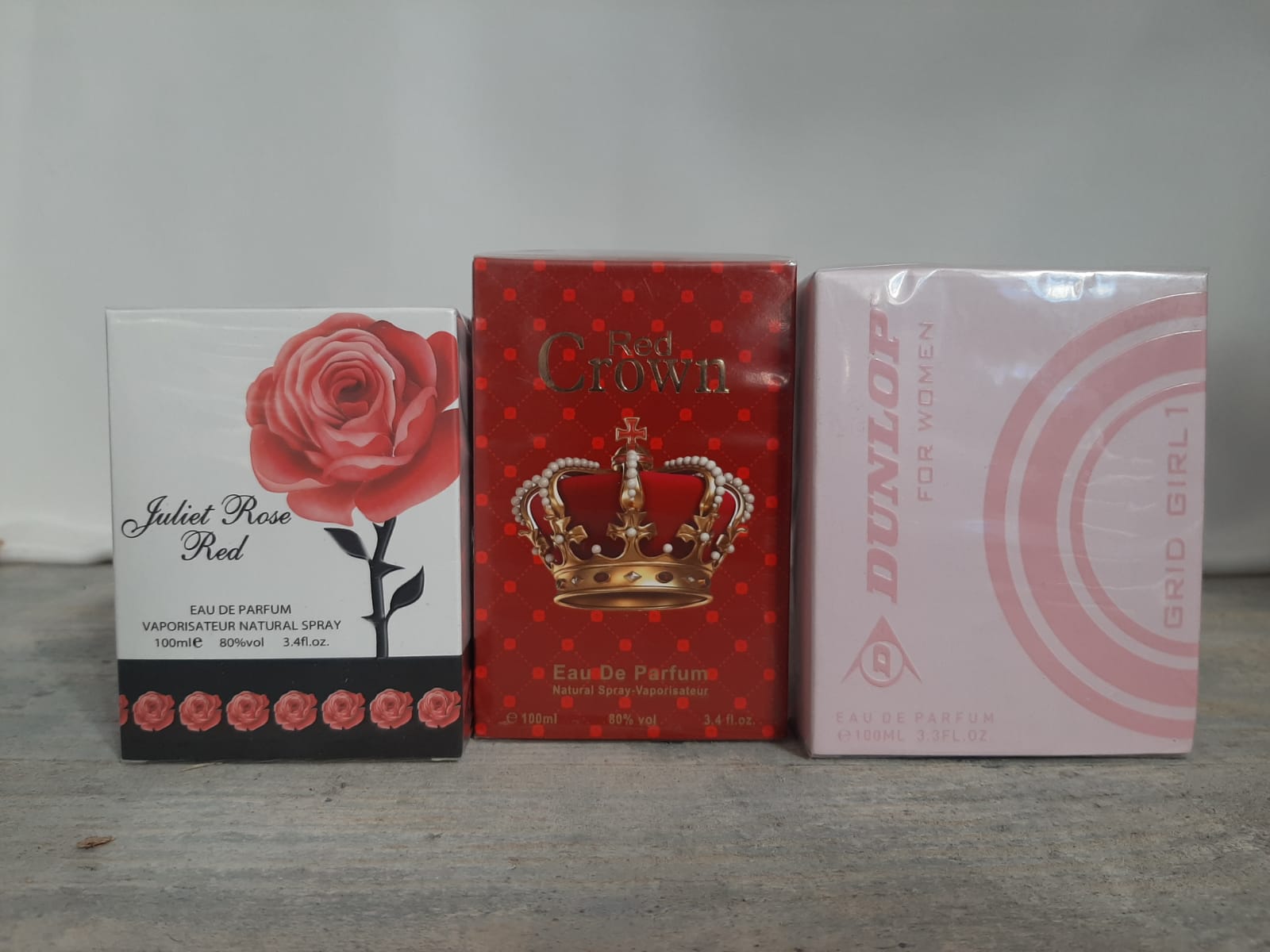 Productbeschrijving: 3 Eau De Parfum parfum set Red Crown 100 ml, Grid Girl 100ml, Juliet Rose Red 100ml.