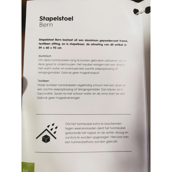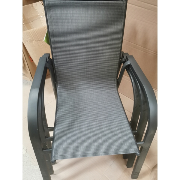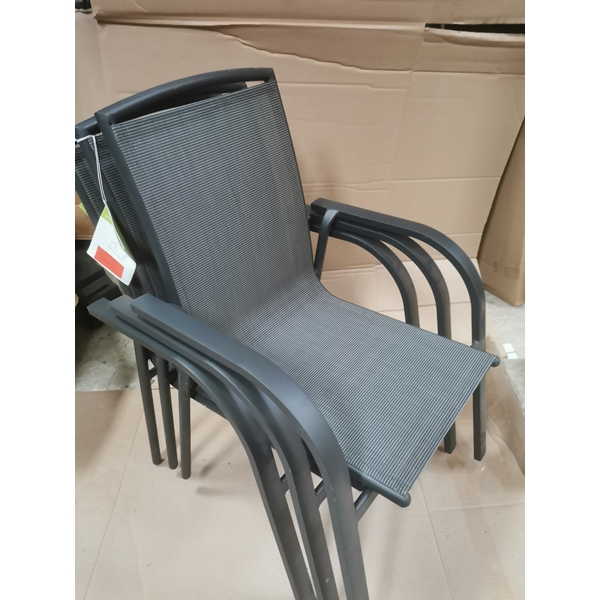 Productbeschrijving: Deze stapelstoel van het merk Royal Patio is gemaakt van een gepoedercoat aluminium frame en zitting van textileen.