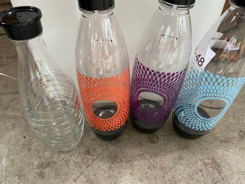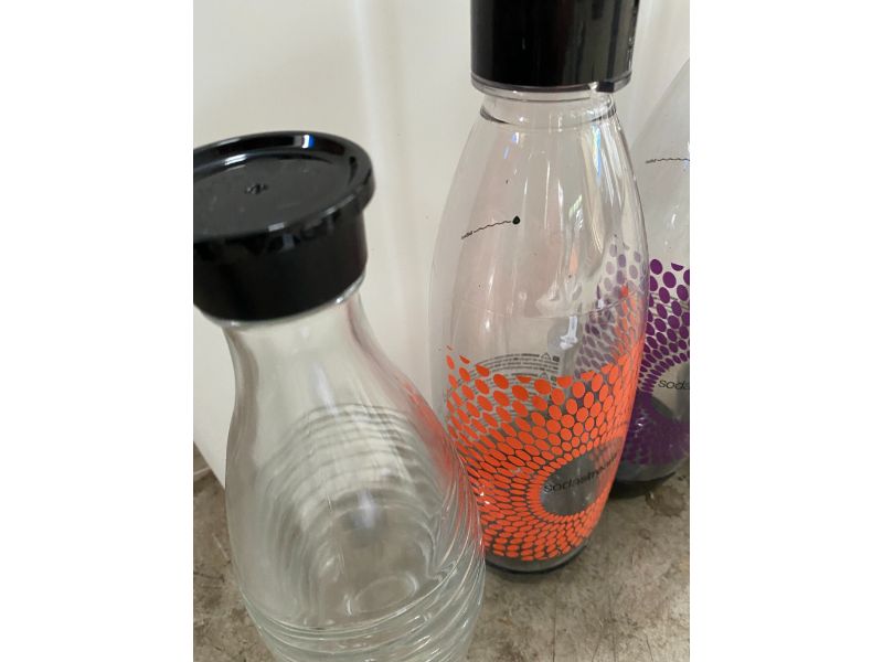 4 Sodastream vulflessen Fireworks en glazen karaf