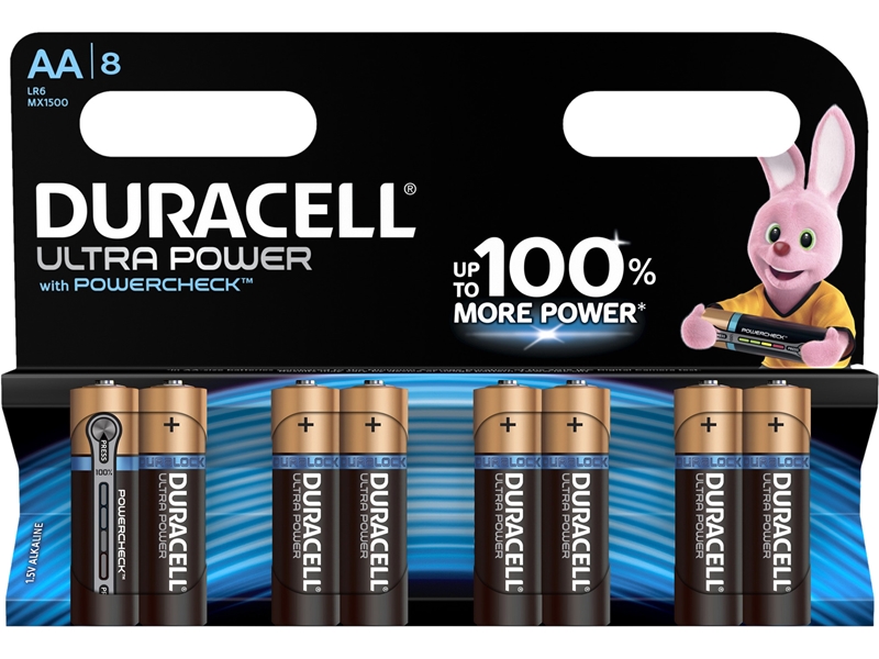 Productbeschrijving: Deze verpakking bestaat uit 8 Duracell Ultra Power alkaline AA-batterijen (kavel bestaat uit 6 verpakkingen). Dit type batterij gebruik je bijvoorbeeld voor in een zaklamp. De batterij gaat lang mee en de power controleer je gemakkelijk door op de stippen op de batterij te drukken.