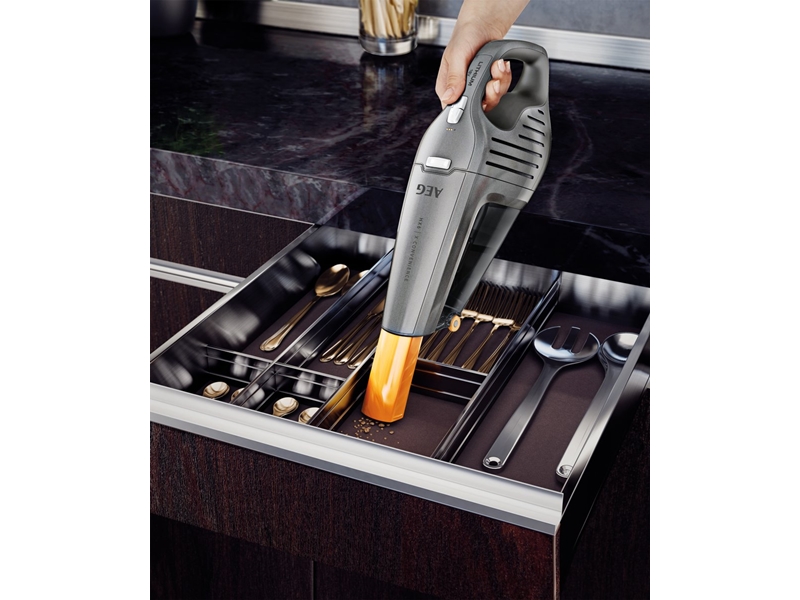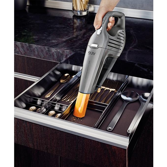 Productbeschrijving: Met de AEG HX6-35TM maak je per schoonmaakbeurt wel 35 minuten schoon, hierdoor is deze kruimelzuiger niet alleen geschikt voor de snelle schoonmaakklus maar pak je hem er ook bij voor het reinigen van grotere oppervlaktes. Met deze kruimelzuiger reinig je de plekken waar je met de brede zuigmond van de reguliere stofzuiger niet bij komt. De plinten maak je zo weer netjes stofvrij en ook tussen de kussens van de bank is geen chipskruimel meer te vinden nadat je met deze kruimelzuiger in de weer bent geweest. De zuigmond is uitschuifbaar, voor extra bereik en om krappe plekken grondig te reinigen. Aan de onderkant heeft de kruimelzuiger 2 wieltjes, dit voorkomt een vermoeid arm tijdens het schoonmaken.
