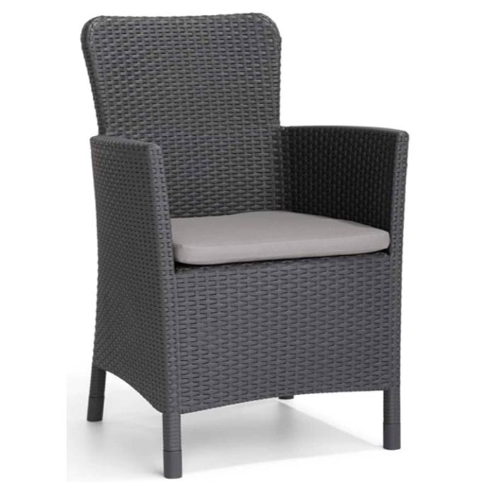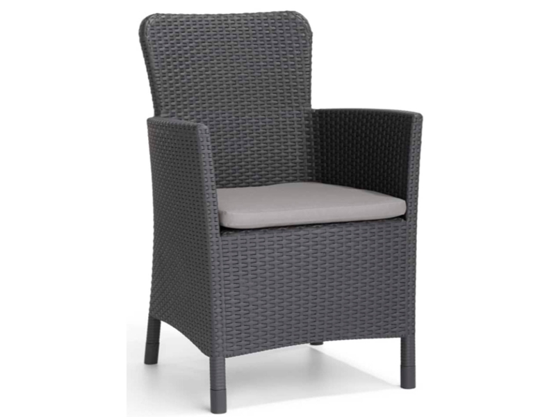 Productbeschrijving: De Wicker dining chair van Allibert kan gemakkelijk gecombineerd worden met verschillende tuintafels dankzij zijn moderne, plat rieten ontwerp. De gebogen rug- en armleuningen maken van deze stoel je favoriete plek op het terras!