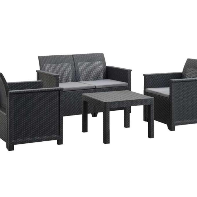 Productbeschrijving: Deze loungeset heeft een stoere en robuuste uitstraling. Het wicker is grijs en dit geeft de set een stijlvolle en trendy uitstraling. De set is weerbestendig en kan dus tijdens een buitje gewoon buiten blijven staan. Bovendien is de set onderhoudsarm.