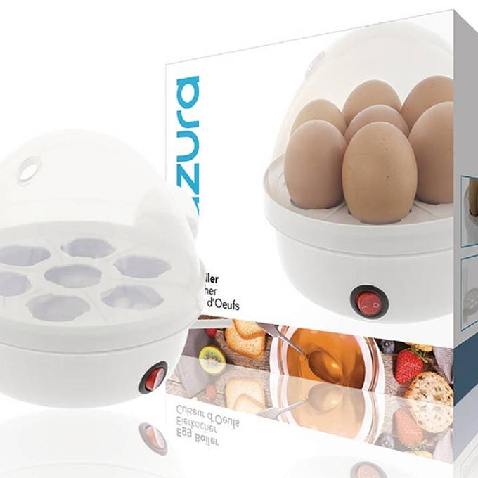 Productbeschrijving: Of je nou van hardgekookt, halfzacht of zacht houdt, de Azura eierkoker garandeert het perfecte resultaat. Er kunnen 7 eieren in tegelijk worden bereid. De eierkoker is voorzien van een eierprikker en een signaal dat aangeeft wanneer de eieren klaar zijn. Eigenschappen: • Kookt 7 eieren tegelijkertijd • Verlichte aan/uit-knop • Uitneembaar eierrek om de eieren met één hand te serveren • Eierprikker om een gebarsten schaal te voorkomen • Signaal dat aangeeft dat de eieren klaar zijn • Maatbeker voor de juiste hoeveelheid water Inhoud verpakking: 1x Eierkoker, 1x Maatbeker, Handleiding