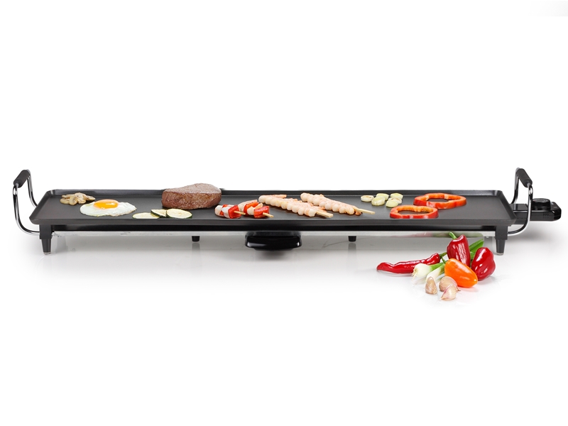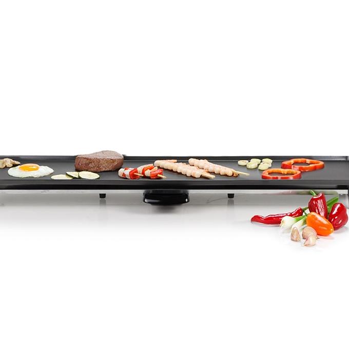 Productbeschrijving: De Tristar BP-2984 Bakplaat is een extra lange bakplaat waardoor je deze met acht tot tien personen tegelijk kunt gebruiken. De thermostaat is voorzien van vijf warmtestanden waardoor je de temperatuur eenvoudig naar eigen voorkeur kunt instellen. Extra grote bakplaat De Tristar bakplaat heeft een slim ontwerp waardoor hij heel handig in gebruik is. Dankzij het extra lange formaat van de bakplaat kan iedereen gemakkelijk bij de plaat. Met een bakoppervlakte van 90 x 23 cm heb je meer dan genoeg ruimte om de bakplaat met wel acht tot tien personen te gebruiken. Hij is voorzien van een afneembaar snoer met een lengte van maar liefst 2 meter en thermostaat, waarmee je zelf de gewenste temperatuur kunt instellen voor de gerechten die je wilt klaarmaken. Gezonder bakken De Tristar bakplaat is voorzien van een geïntegreerd vetafdruipsysteem waardoor overtollig vet automatisch in het opvangbakje terecht komt. Hierdoor heb je dus een extra gezond bakresultaat en een extra knapperig bakresultaat. Daarnaast is de bakplaat voorzien van cool touch handvatten waardoor je de bakplaat altijd veilig en eenvoudig kunt verplaatsen. Eenvoudig te reinigen.