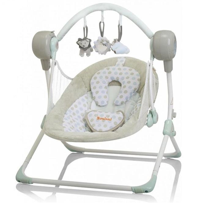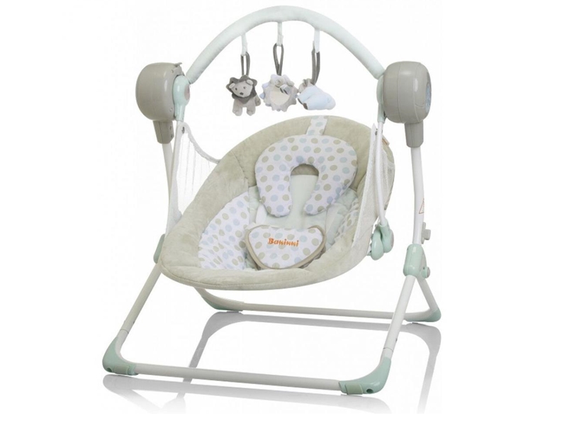 Productbeschrijving: In deze Baninni Stellino babyswing kan je kleintje lekker relaxen. De zachte bekleding zorgt voor extra comfort. De rugleuning van de babyschommel is in 2 posities verstelbaar. De babyswing wordt geleverd met hoofdverkleiner, speelboog met 3 speeltjes en een adapter.