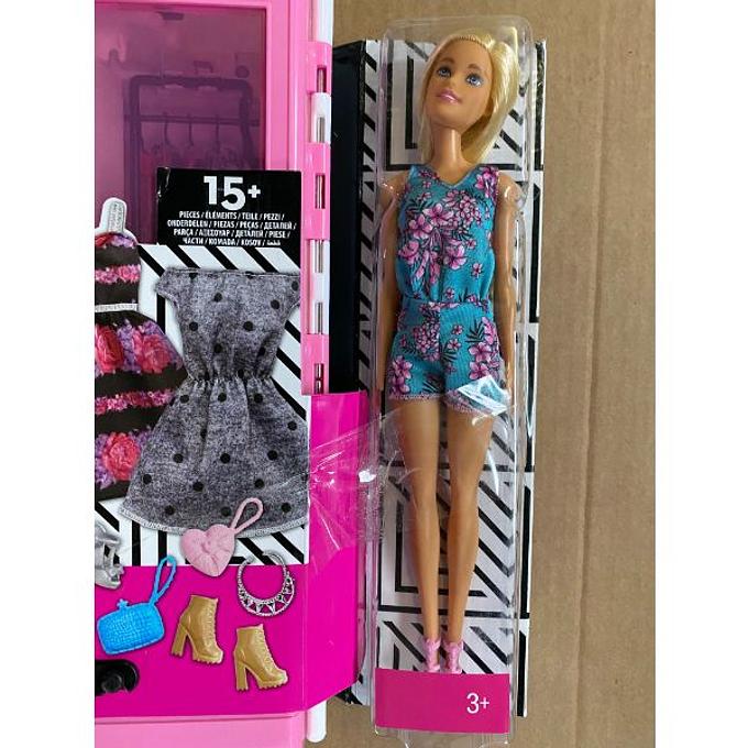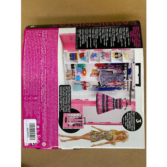 Productbeschrijving: Berg de kleding van Barbie op voor eindeloos veel mogelijkheden! Deze Barbie kast met handvat is niet alleen gemakkelijk mee te nemen, maar wordt geleverd met kleding en accessoires voor eindeloos speelplezier, thuis en onderweg. Op de roze kast zie je de bekende Barbie decoraties en door de transparante deuren kun je gemakkelijk een kijkje nemen in de kast. Laat het modefeest maar beginnen! Barbie draagt een gebloemd pakje en schoenen en de kast bevat meer dan genoeg trendy outfits en accessoires om allerlei verschillende looks uit te proberen. In de twee trendy jurken, grafische prints en populaire kleuren ziet de pop er overdag én 's avonds prachtig uit.