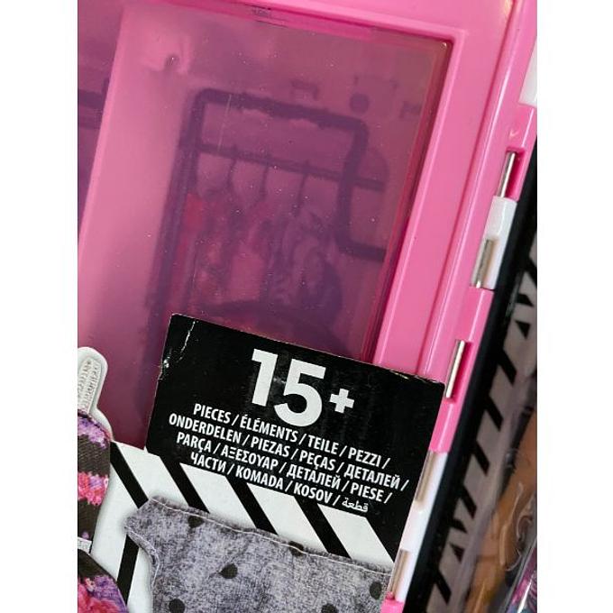 Productbeschrijving: Berg de kleding van Barbie op voor eindeloos veel mogelijkheden! Deze Barbie kast met handvat is niet alleen gemakkelijk mee te nemen, maar wordt geleverd met kleding en accessoires voor eindeloos speelplezier, thuis en onderweg. Op de roze kast zie je de bekende Barbie decoraties en door de transparante deuren kun je gemakkelijk een kijkje nemen in de kast. Laat het modefeest maar beginnen! Barbie draagt een gebloemd pakje en schoenen en de kast bevat meer dan genoeg trendy outfits en accessoires om allerlei verschillende looks uit te proberen. In de twee trendy jurken, grafische prints en populaire kleuren ziet de pop er overdag én 's avonds prachtig uit.