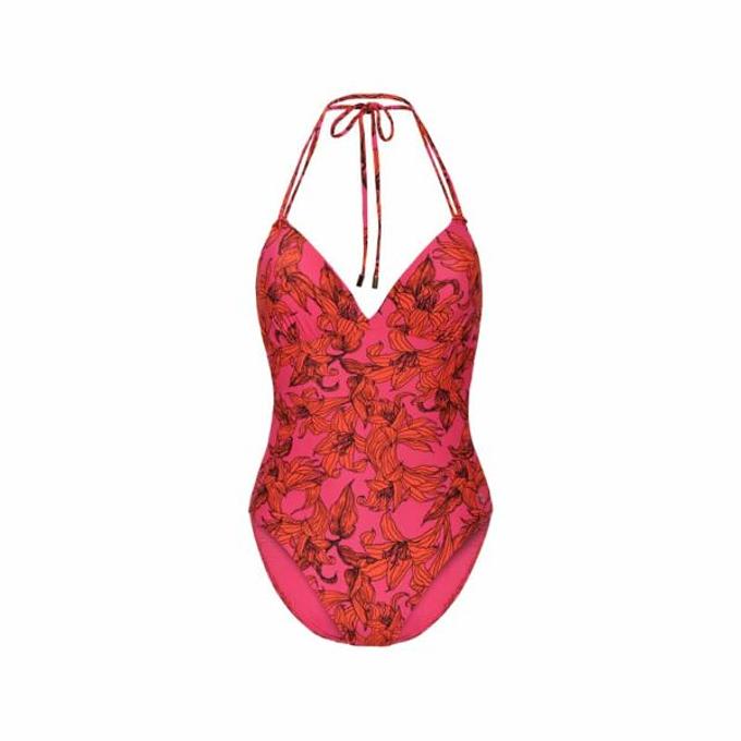 Productbeschrijving: Beachlife badpak Pink Lilies in maat 36C is gemaakt van polyamide & elasthaan. Het badpak is voorgevormd met cups, heeft beugels, strikbare schouderbandjes en clipsluiting op de rug.