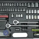 Inhoud: ratelsleutel 3/8'', ratelsleutel 1/2'', Verloopdop van 3/8" naar 1/4", 1/4" zeskantdoppen inch maten 5/32, 3/16, 1/4, 7/32, 9/32, 5/16, 11/32, 3/8, 13/32, 7/16, 15/32, 1/2, 17/32 en 9/16 inch, 1/4'' zeskantdoppen metrisch maten 4.0, 4.5, 5.0, 5.5, 6.0, 6.5, 7.0, 8.0, 9.0, 10.0, 11.0, 12.0, 13.0, 14.0 mm, 1/4'' veeltanddoppen Inch maten 1/4, 5/16, 3/8 inch, 1/2'' zeskantdoppen inch maten 11/16, 3/4, 25/32, 7/8 inch, 3/8" zeskantdoppen inch maten 7/16, 15/32, 1/2, 9/16, 5/8, 11/16 inch, 3/8'' zeskantdoppen metrisch maten 11.0, 12.0, 13.0, 14.0, 16.0, 17.0 mm, 1/4" bithouder, verloopstuk 3/8", bougiedoppen 3/8" 16mm, Dopschroevendraaier 1/4", 10 losse bits, imbus, PH, Platkop, Imbussutelset 6, 5.5, 5, 4, 3, 2.5, 2, 1.5