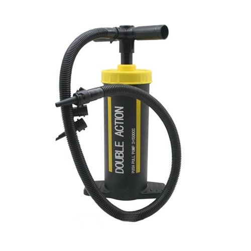 Productbeschrijving: Deze 2,5 liter dubbelwerkende Luchtpomp blaast alles op of laat het juist leeglopen. Geschikt voor zowel het kleine als het grote opblaas werk. Uitgerust met een groot handvat en voetplaat voor gemakkelijk gebruik. Zeer geschikt voor gebruik van luchtbedden, opblaasbare boten of springkussens Compleet met diverse mondstukken / connectors