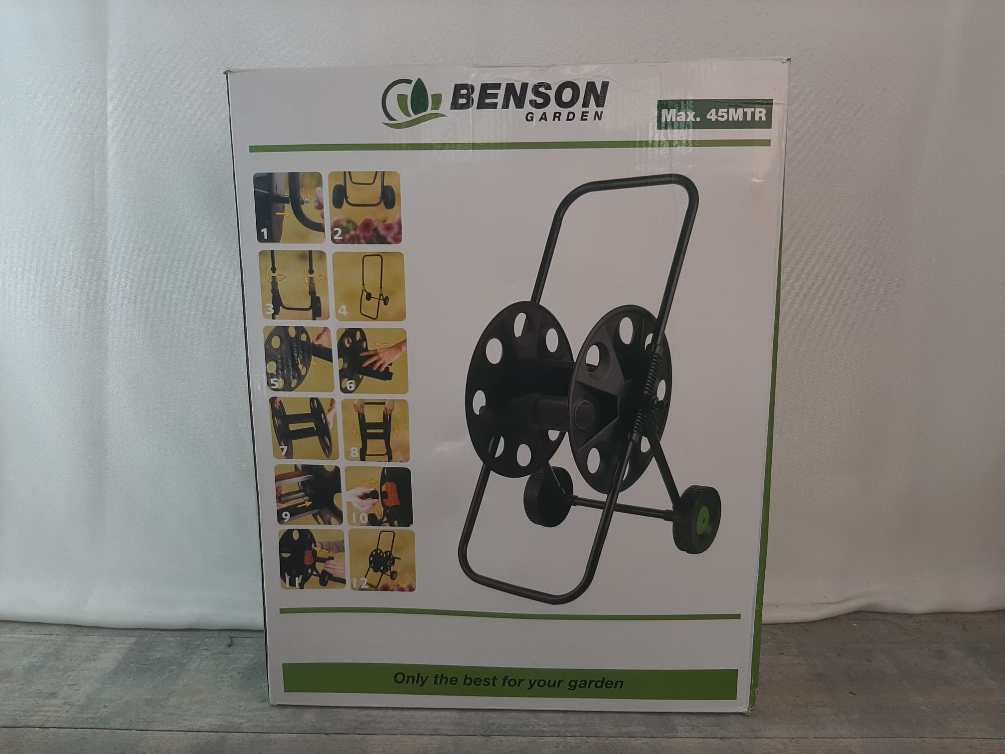 Voorzien van: Lichtgewicht Makkelijk verplaatsbaar Geschikt voor tuinslangen tot 45M Slangkoppeling Hendel voor oprollen Roest- en corrosiebestendig