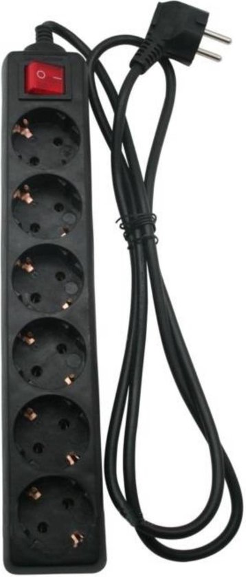 Benson - Stekkerdoos zwart 6-voudig randaarde met schakelaar - verlengsnoer 1,5 meter