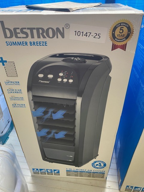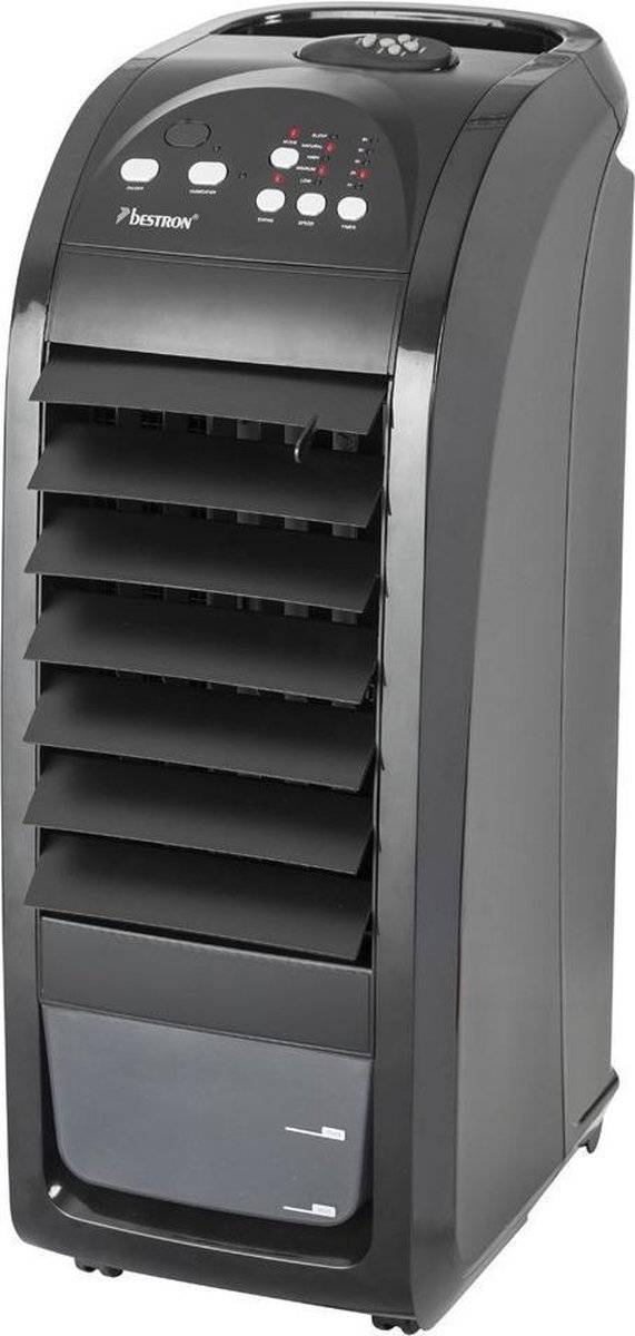 Productbeschrijving: Deze 3-in-1 Bestron AAC5000 mobile luchtkoeler is ideaal tijdens de warme dagen. Deze Bestron AAC5000 zorgt voor een goed binnenklimaat doormiddel van 3 functies: koelen, reinigen en bevochtigen. Dankzij de verdampingstechnologie zorgt dit apparaat voor een natuurlijke en gezonde luchtstroom in huis of op kantoor. De luchtkoeler beschikt over 3 snelheden en 3 standen (normaal, natural en sleep). Het 4.5 liter uitneembare waterreservoir zorgt voor 20 uur onafgebroken gebruik. Dankzij de zwenkfunctie heeft deze luchtkoeler een extra groot bereik, ook neem je hem gemakkelijk mee van kamer naar kamer dankzij zijn wielen.