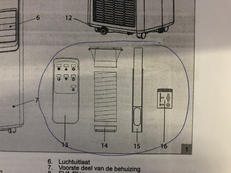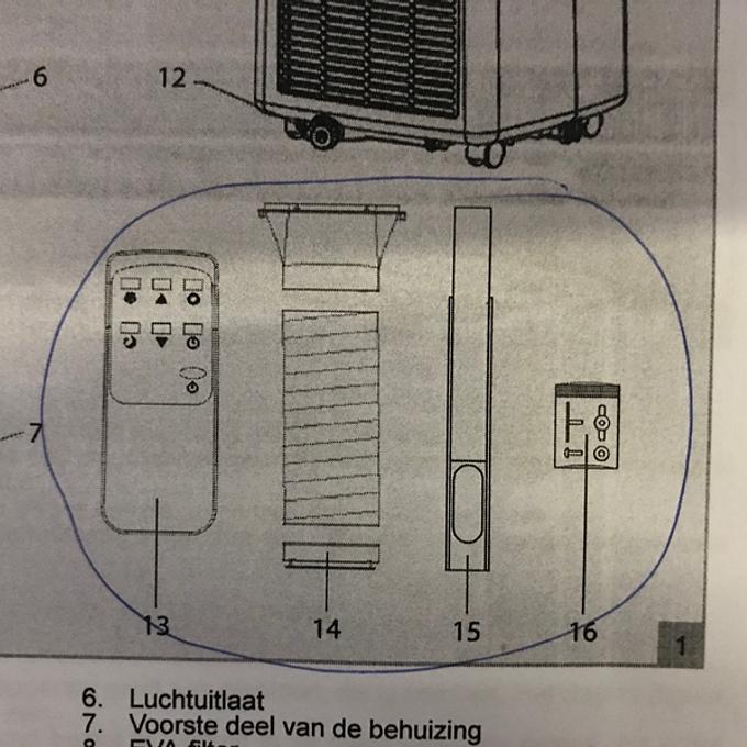 Voorzien van: luchtsverplaatsing van 300m3/h, maximale capaciteit van 120m3, koelvermogen van 12000 BTU en vermogen van 1435 Watt.
