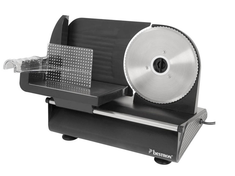 Productbeschrijving: De Bestron AFS9003 Allessnijder voor het snijden van vleeswaren, vlees, brood, kaas etc.