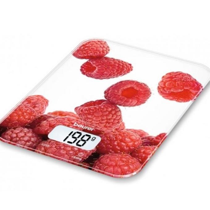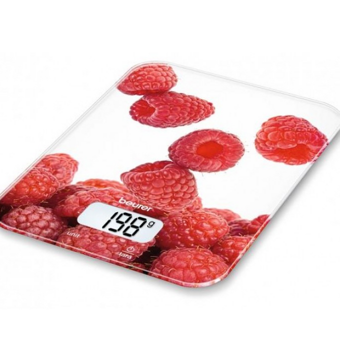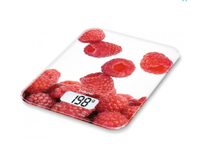 Productbeschrijving: De Beurer KS 19 Berry keukenweegschaal is een frisse toevoeging aan vrijwel iedere keuken. De weegschaal is ultradun en bedekt met een stijlvolle afbeelding van vuurrode frambozen. Door de felle kleur rood is dit een leuke eyecatcher voor in uw keuken. De weegschaal heeft een draagvermogen van 5 kilogram en weegt tot op 1 gram nauwkeurig. De weegschaal is voorzien van Tarra weegfunctie, hierdoor weegt u enkel het nettogewicht van producten.