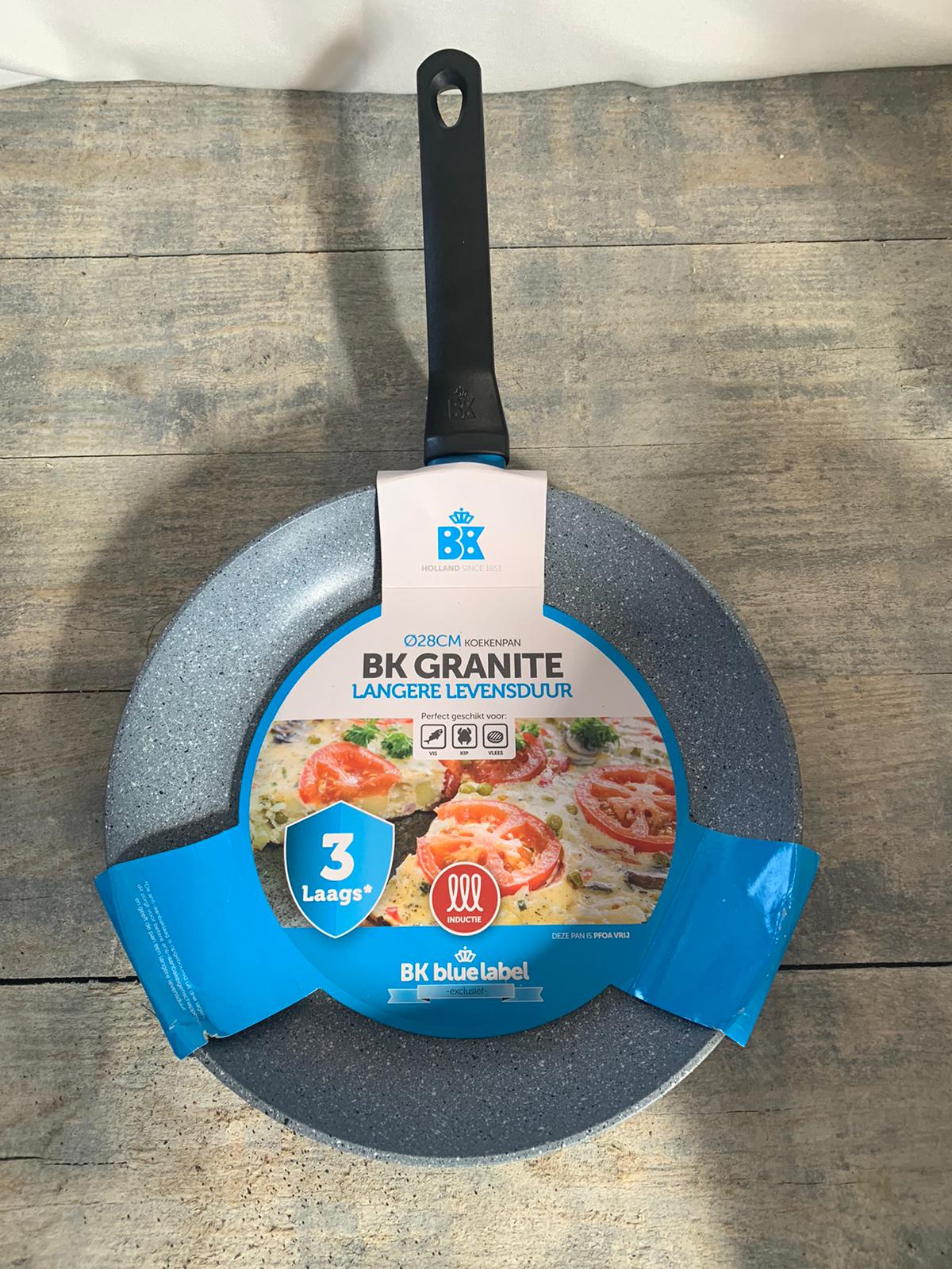 Productbeschrijving: De BK Blue label Induction Granite koekenpan Ø 28 cm heeft een eigentijds hoogwaardige granieten look met een non-stick coating. De pan is geschikt voor alle warmtebronnen. De stonelook coating en stevige kunststof greep maakt deze pannen een musthave in de keuken.