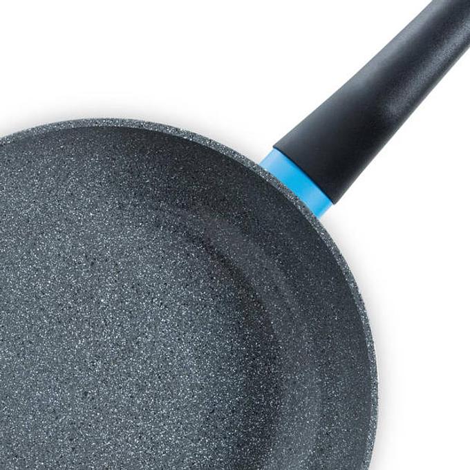 Productbeschrijving: BK Blue Label Stone pannen zijn de perfecte pannen voor mensen die gezonder en energiezuiniger willen bakken. Dankzij de keramische, milieuvriendelijk geproduceerde coating met goede anti-aanbak eigenschappen, vrij van PFAS, kun je korter en heter bakken (tot 400°C). De ingrediënten behouden hierbij hun vitaminen en structuur. Omdat de keramische laag de warmte beter geleidt, is je gerecht in zijn geheel sneller gaar. De stone look coating, opgebouwd uit vier krasvaste lagen en is oersterk. In de BK Blue Label Stone bak je gezond, je kunt bakken met minder vetten omdat de keramische pan niet aanbakt. Je kunt zelfs een ei bakken zonder olie of boter te gebruiken. De pannen zijn erg populair vanwege hun duurzaamheid, bovendien kunnen ze tegen een stootje. De pannen zijn voorzien van een stevige koudgreep welke veilig beet te pakken is tijdens het bakken. De pannen zijn geschikt voor alle warmtebronnen, inclusief inductie én in de oven (tot 160°C). Omdat er niets aanbakt in de pan is de keramische pan gemakkelijk schoon te maken. Met een sponsje en wat zeepsop is de pan in een handomdraai weer schoon.