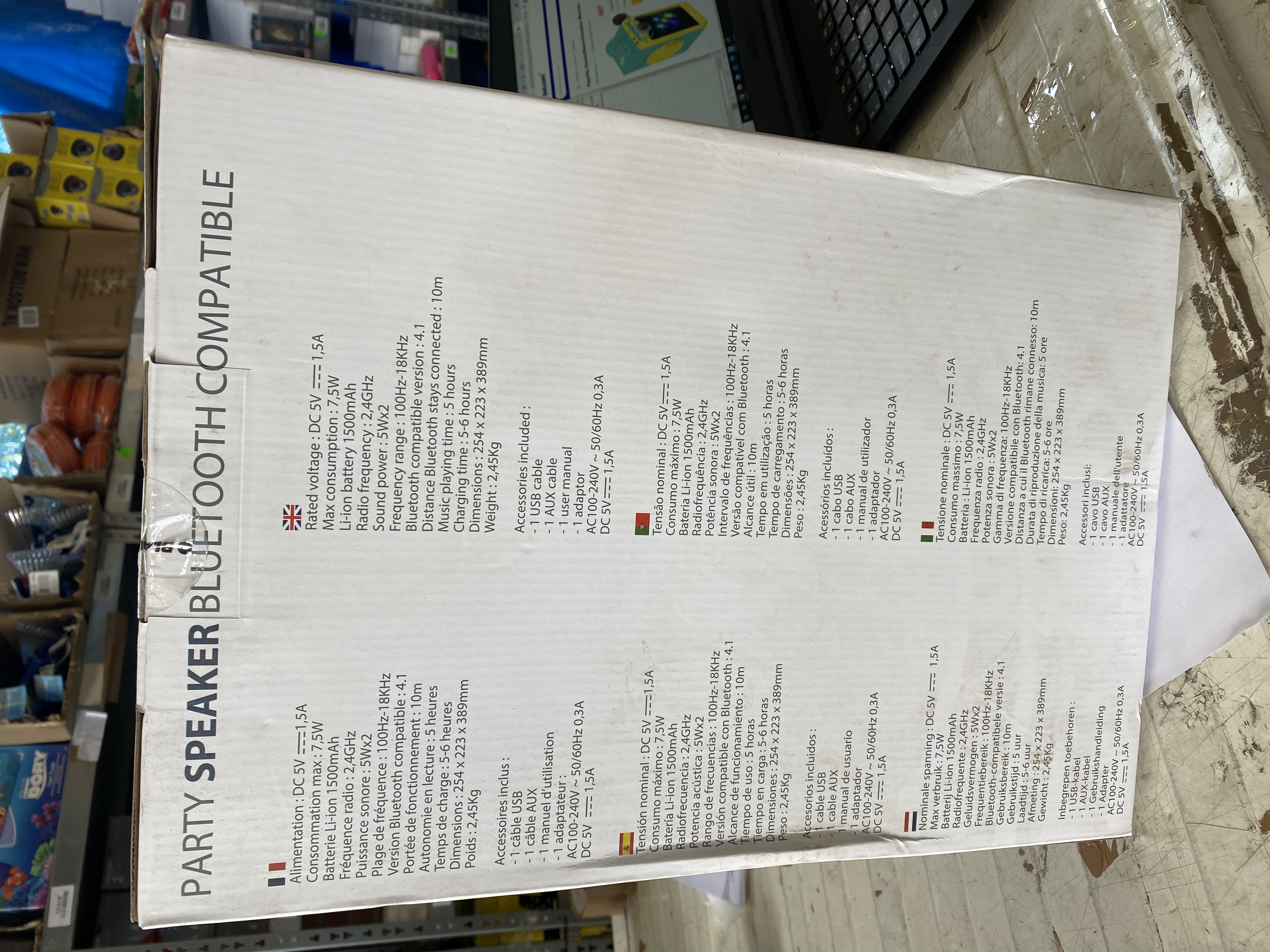 Productbeschrijving: Luidspreker compatibel met Bluetooth praktische en krachtige meerkleurige LED-geluidsversterker voor een feestelijke sfeer Bluetooth 4.2-poort Micro USB AUX-ingang KENMERKEN Luidspreker 10 W Luidspreker Veelkleurige LED.
