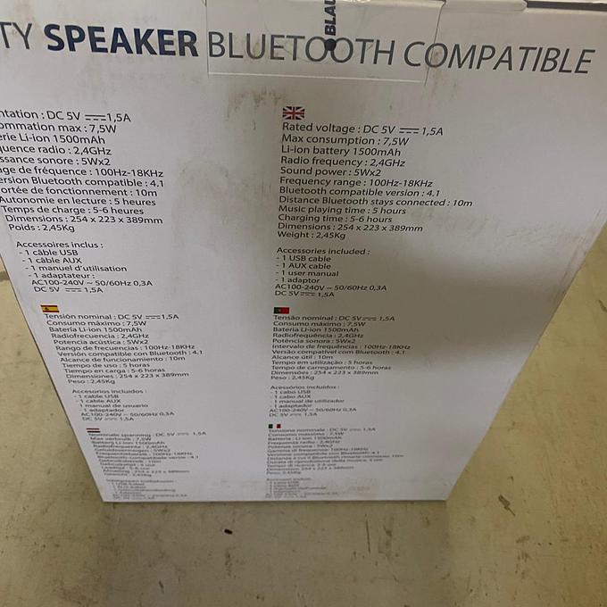 Productbeschrijving: Luidspreker compatibel met Bluetooth praktische en krachtige meerkleurige LED-geluidsversterker voor een feestelijke sfeer Bluetooth 4.2-poort Micro USB AUX-ingang KENMERKEN Luidspreker 10 W Luidspreker Veelkleurige LED.